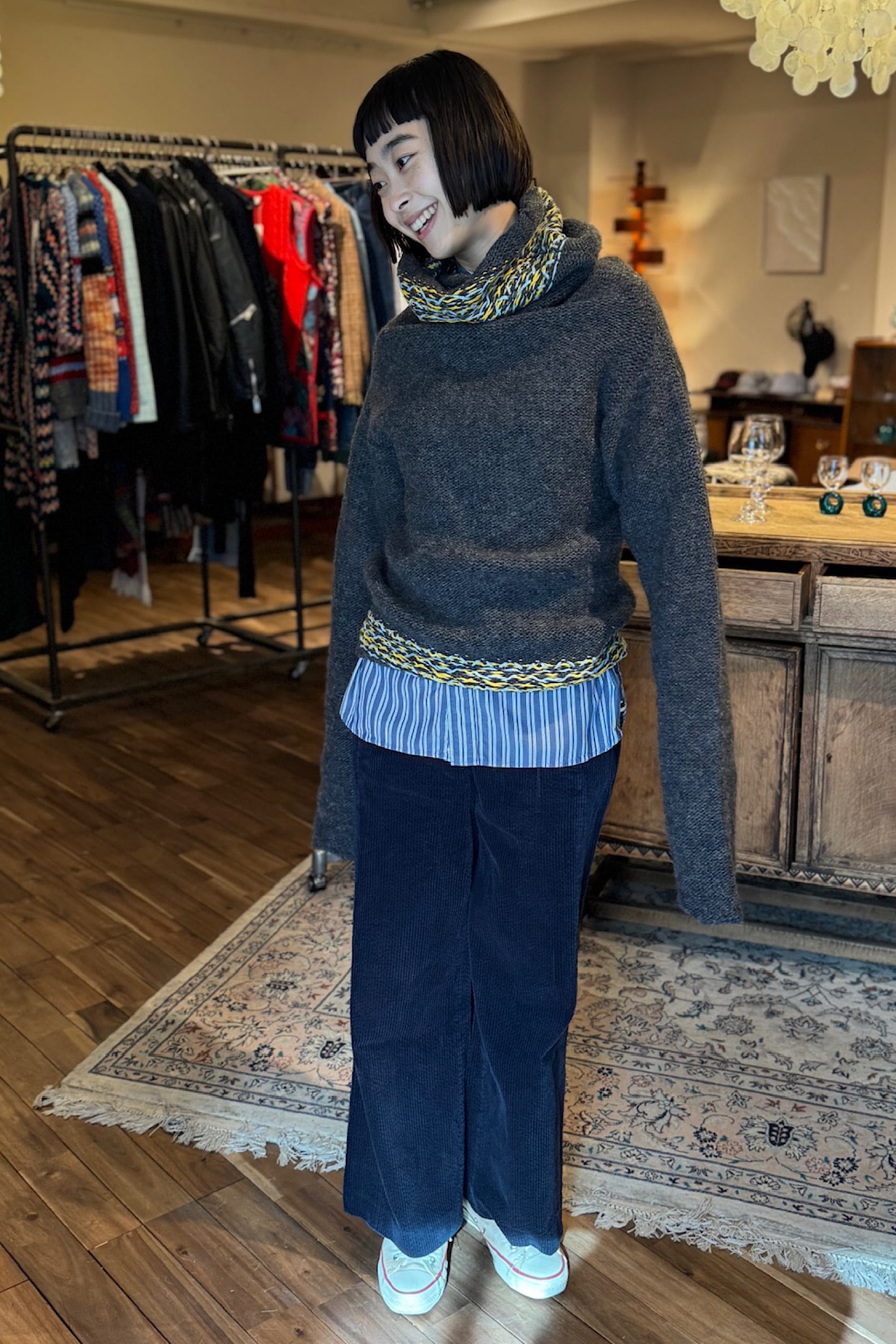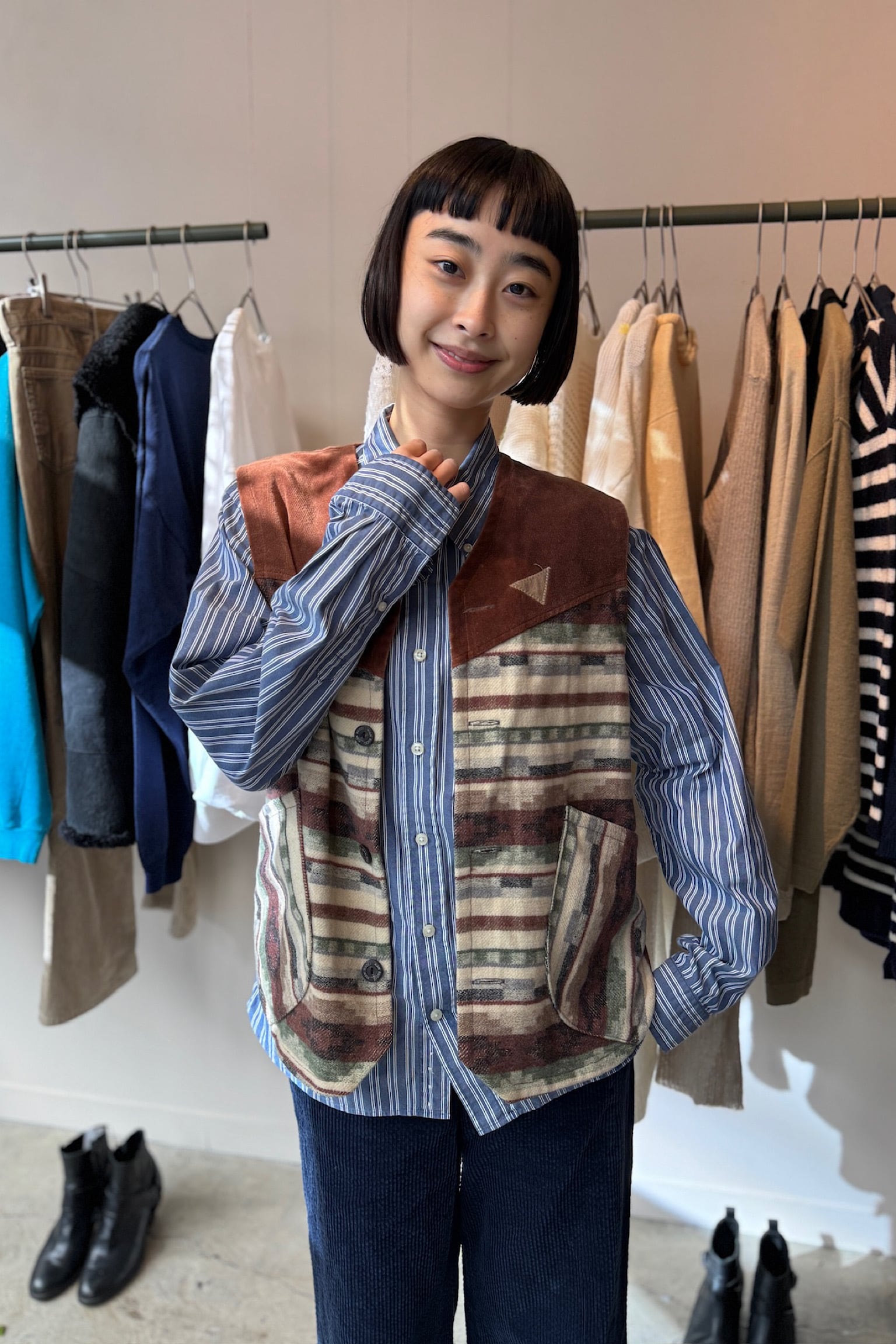 色味も合わせやすいので、シャツとしても羽織りとしてもおすすめ。