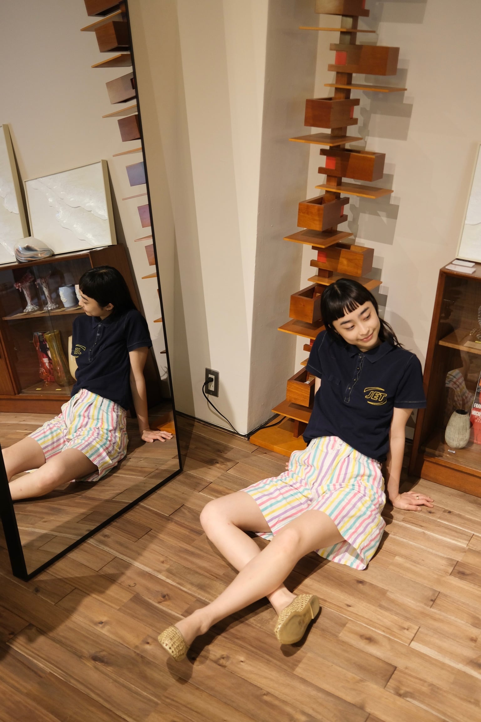 ストライプのカラーがとても夏っぽくて可愛いハーフパンツ。