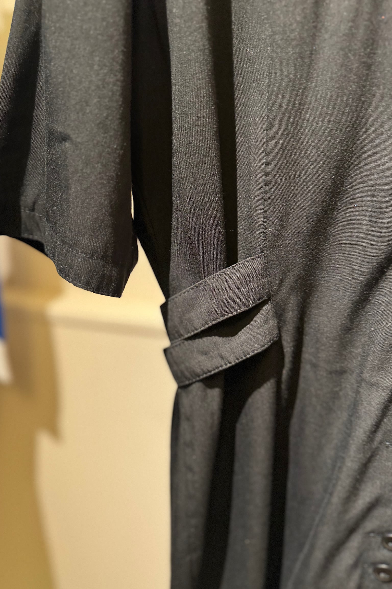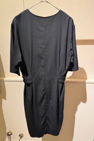 一見シンプルなブラックドレスですが、ウエストのデザインなど細かなデザインがとても珍しく1枚だけでとてもおしゃれ見えにしてくれます。