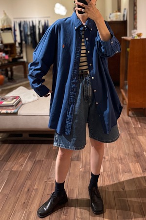 このRalph Laurenのネイビーボタンダウンシャツは、クラシックでシンプルなデザインが特徴です。カジュアルからビジネスシーンまで幅広く活躍する一枚。ネイビーカラーは落ち着いた雰囲気を演出し、上品さを引き立てます。ボタンダウンカラーは程よいカジュアル感をプラスし、着心地も抜群です。