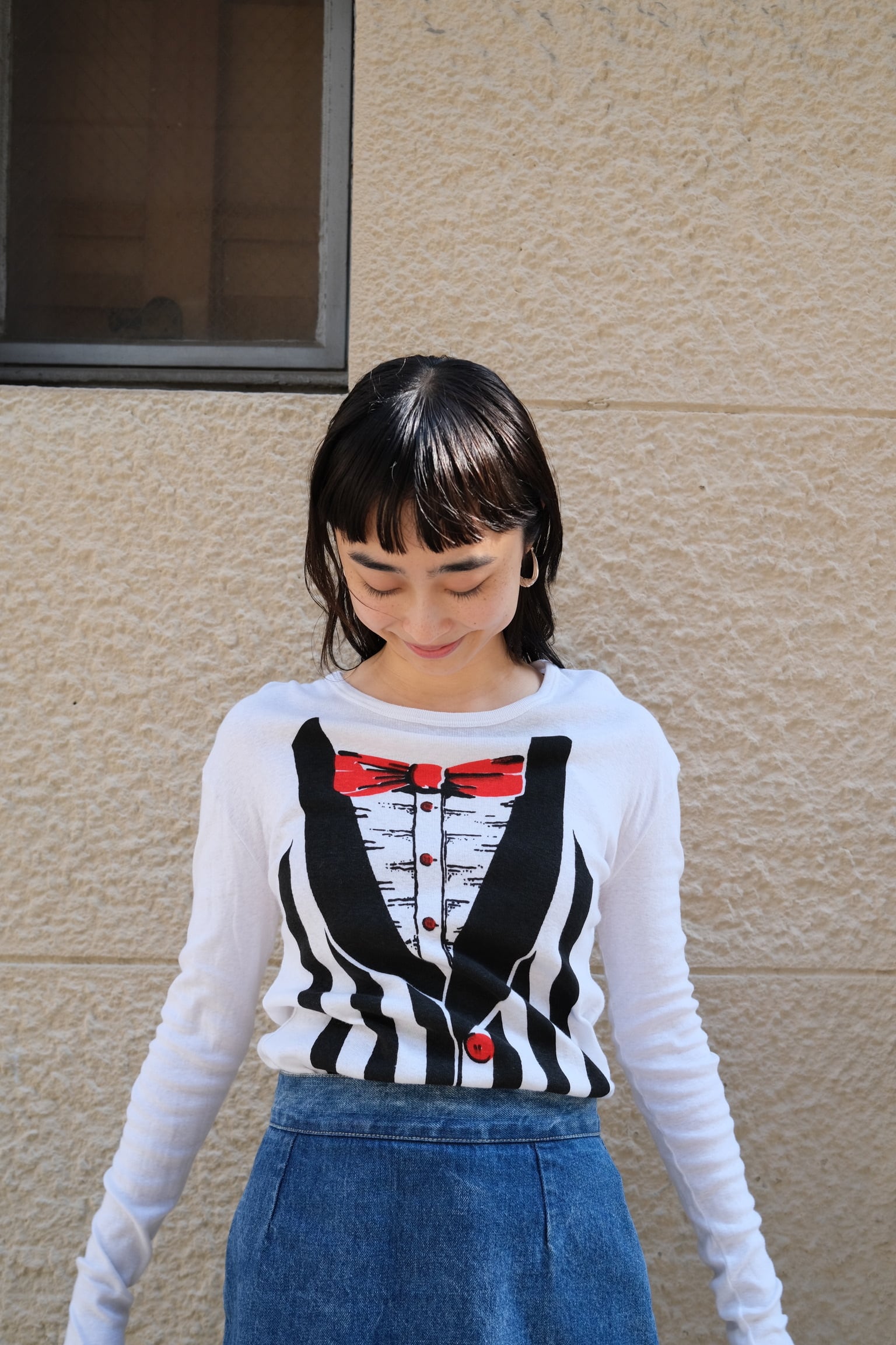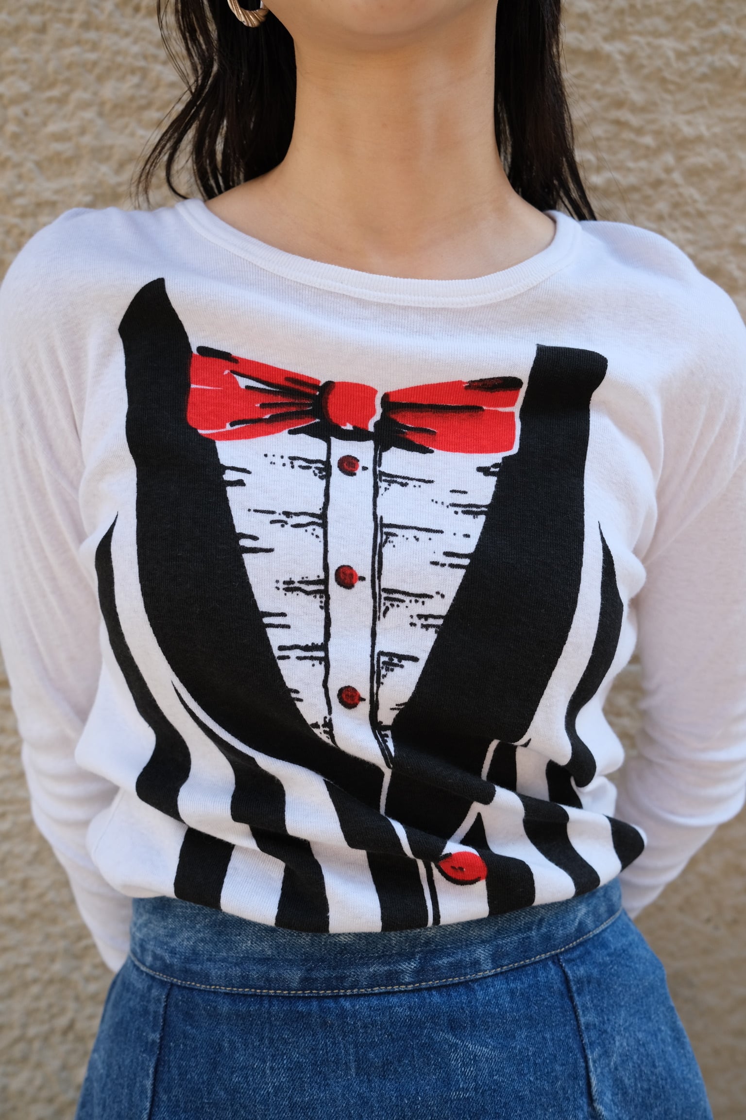このタキシードカットソーは、前面にプリントされた面白いTシャツです。