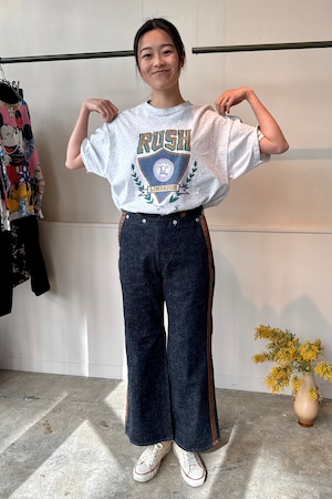 「RUSH」の大きな文字と、大学のカレッジロゴ風の紋章(クレスト)が特徴です。