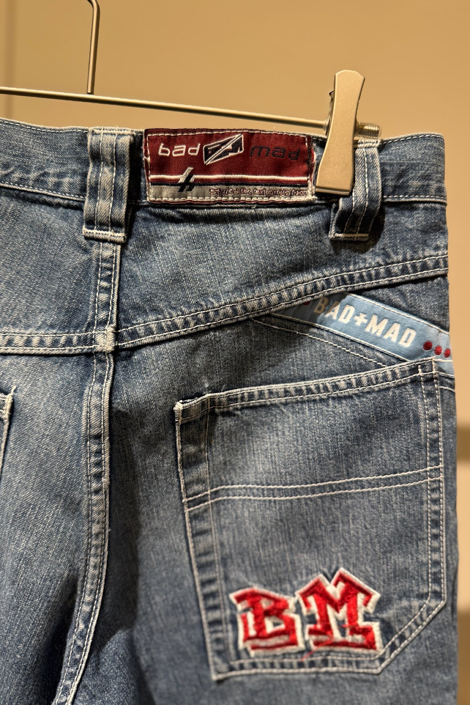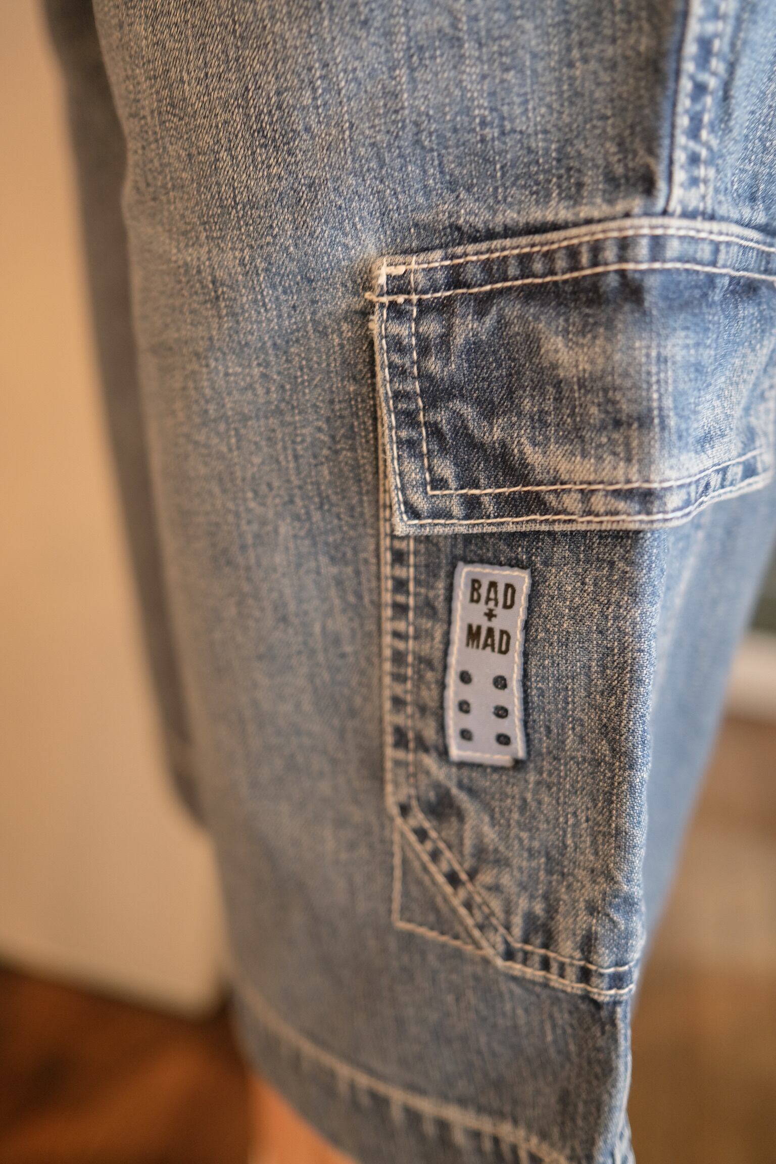 badmadのデニムハーフパンツは、カジュアルなスタイルをお求めの方におすすめです。しっかりとしたデニム生地で作られており、耐久性に優れています。デイリーコーディネートに取り入れやすく、様々なトップスと合わせやすいデザインです。ストリートファッションやアウトドアシーンにもぴったりのアイテムです。BADMADのロゴがさりげなく入った、オシャレな一着です。