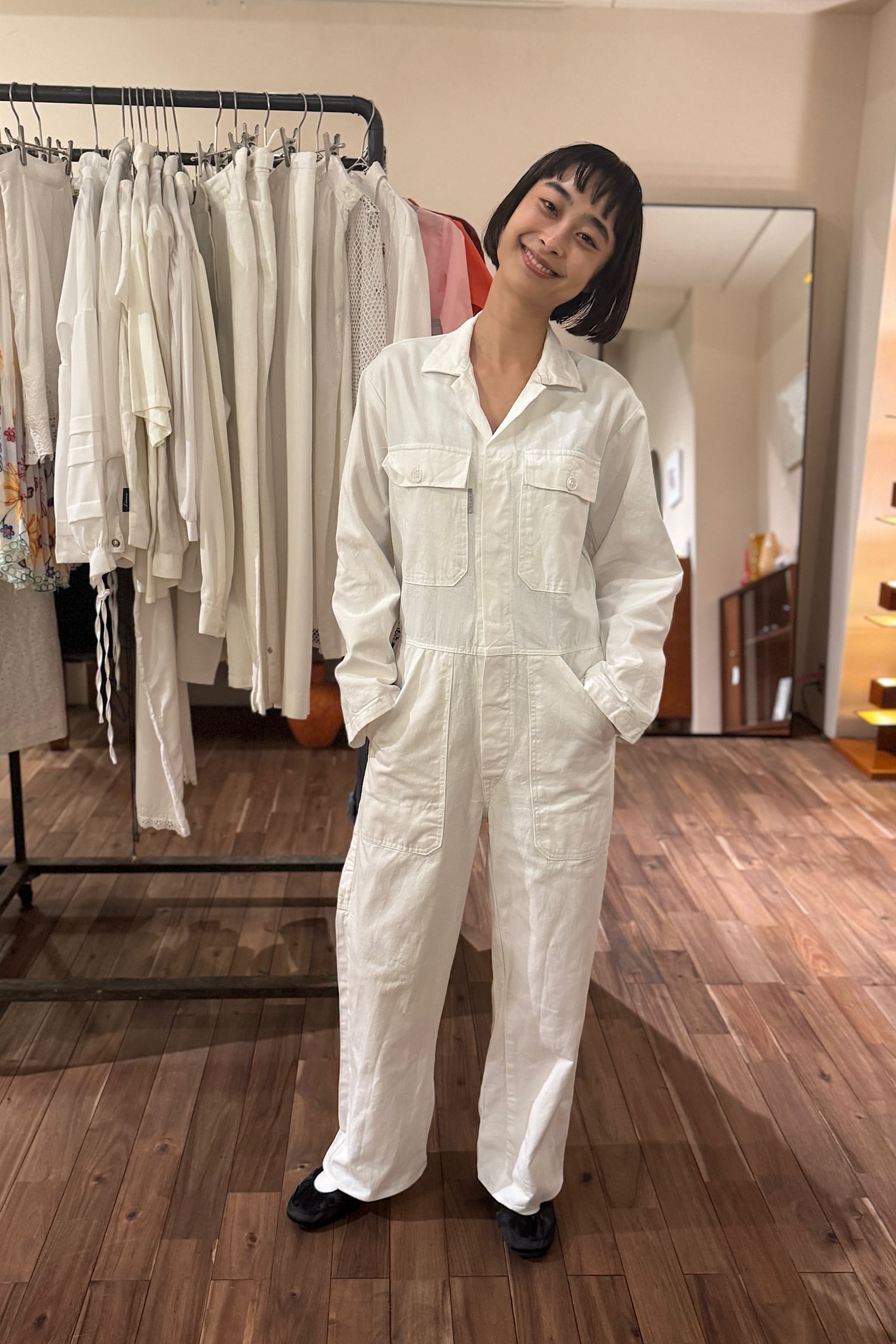 ジャンプスーツの中でもホワイトの物は珍しいかと思います。