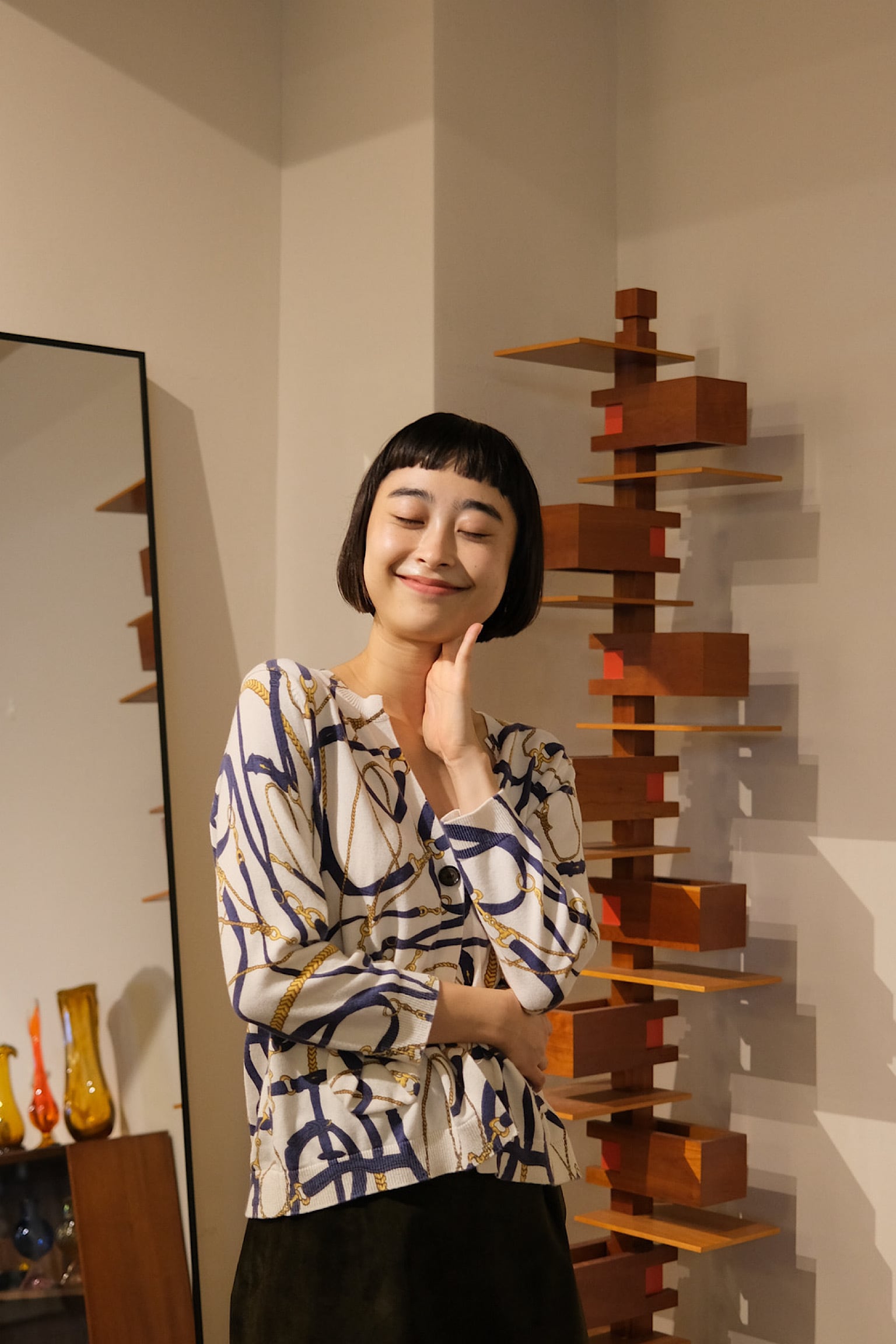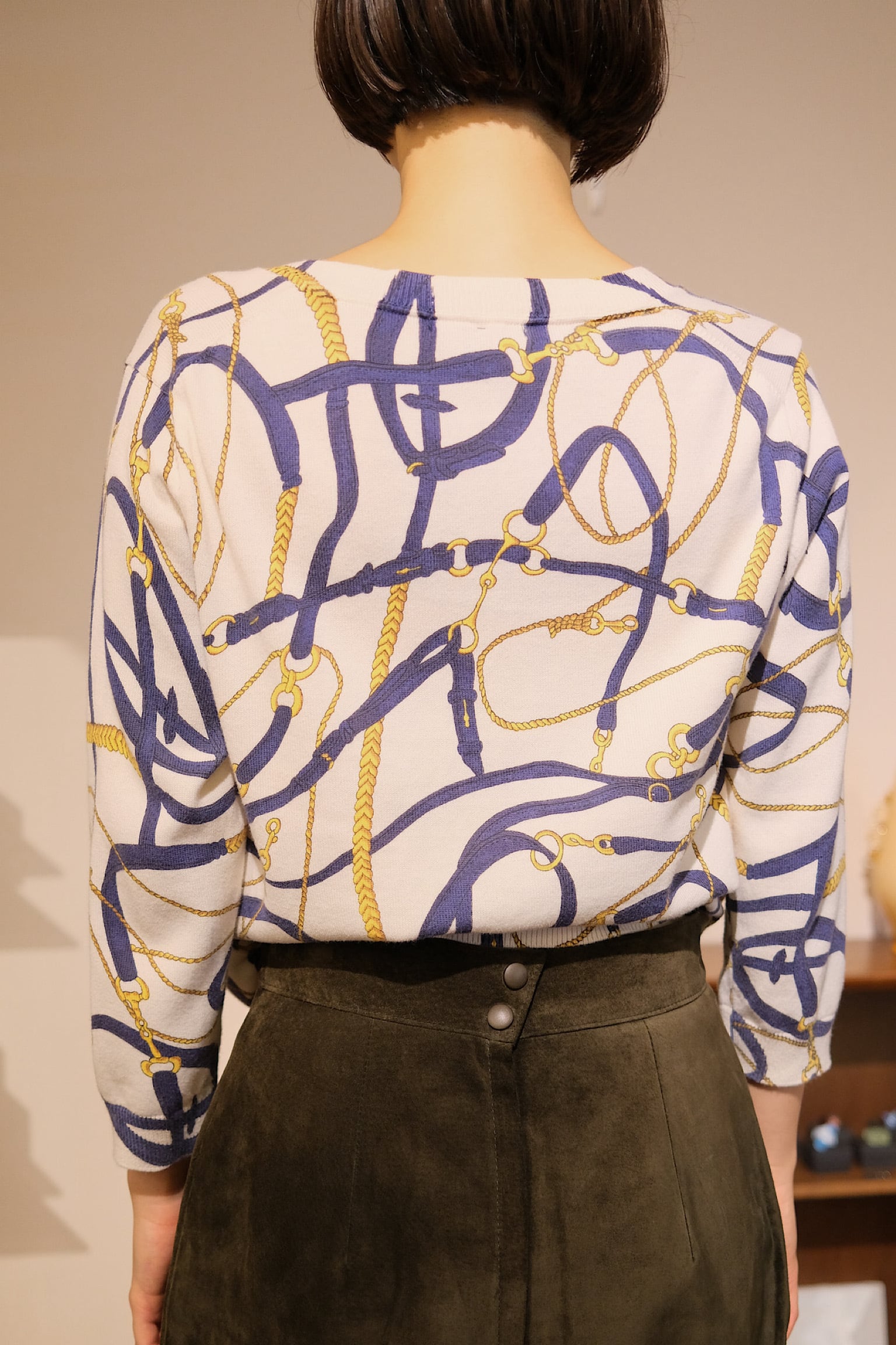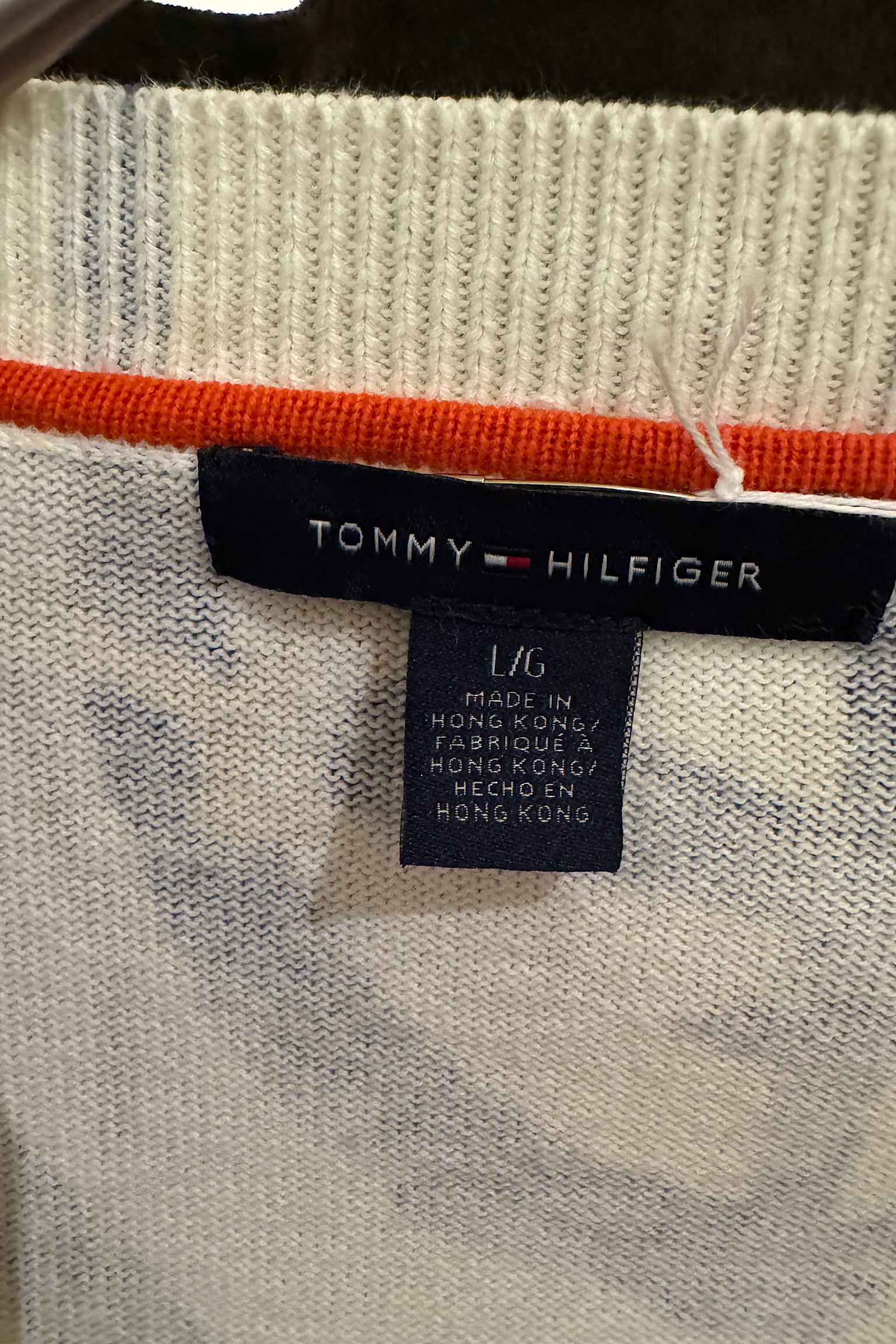 TOMMY HILFIGERのチェーン柄カーディガンは、存在感あるデザインが特徴的です。