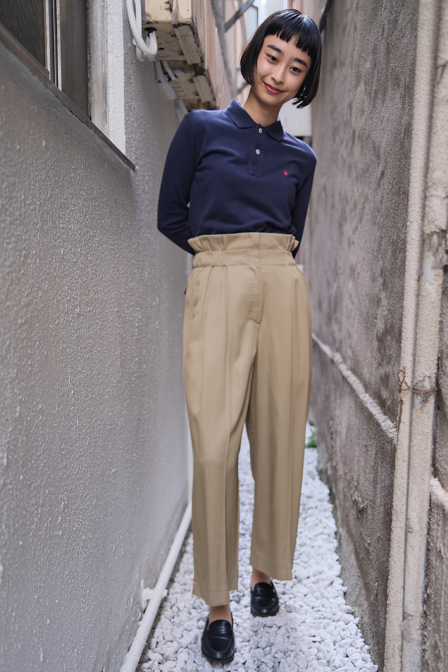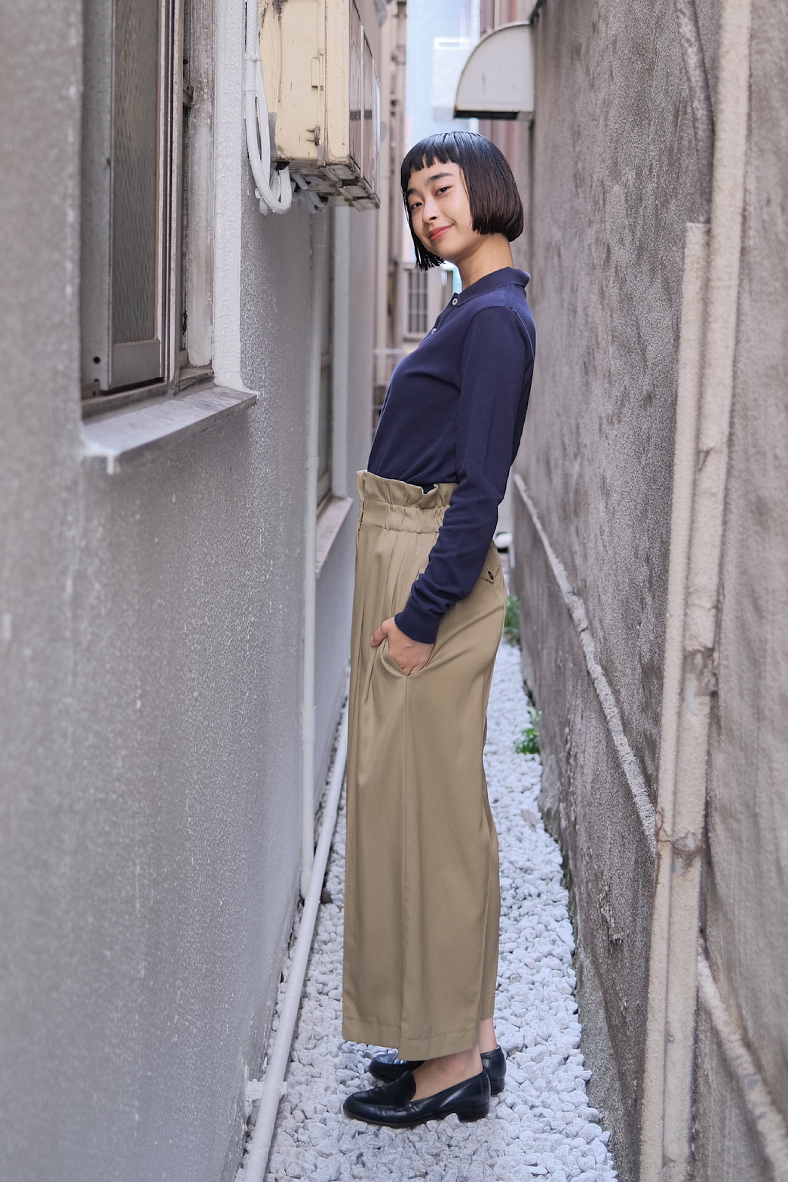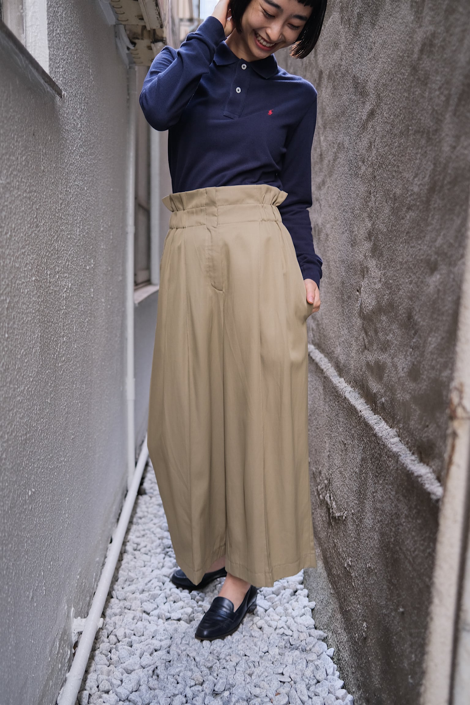 このパンツは、カジュアルからフォーマルなシーンまで幅広く活躍できるため、コーディネート次第で様々な表情を見せてくれます。