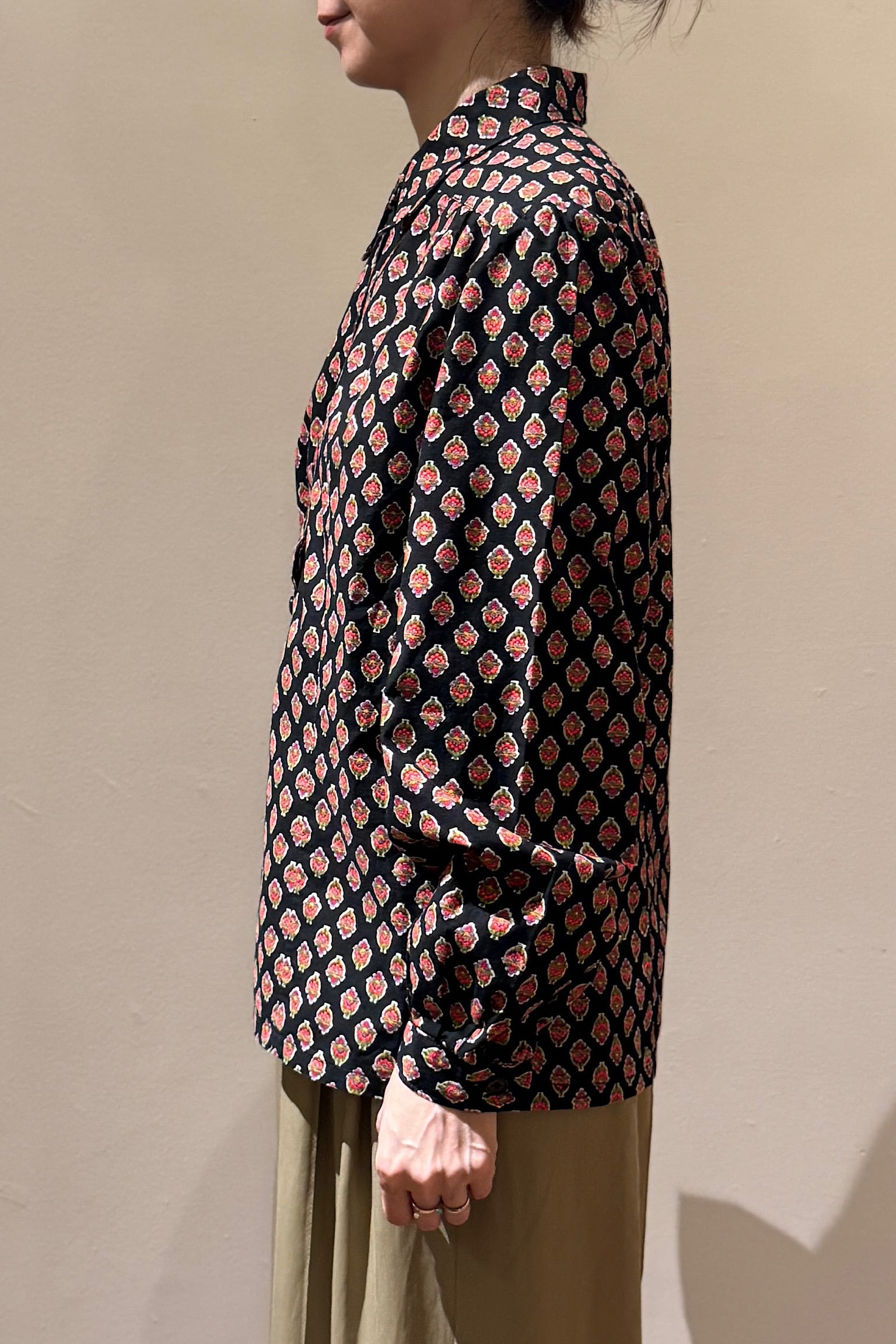 小紋柄ブラックブラウス