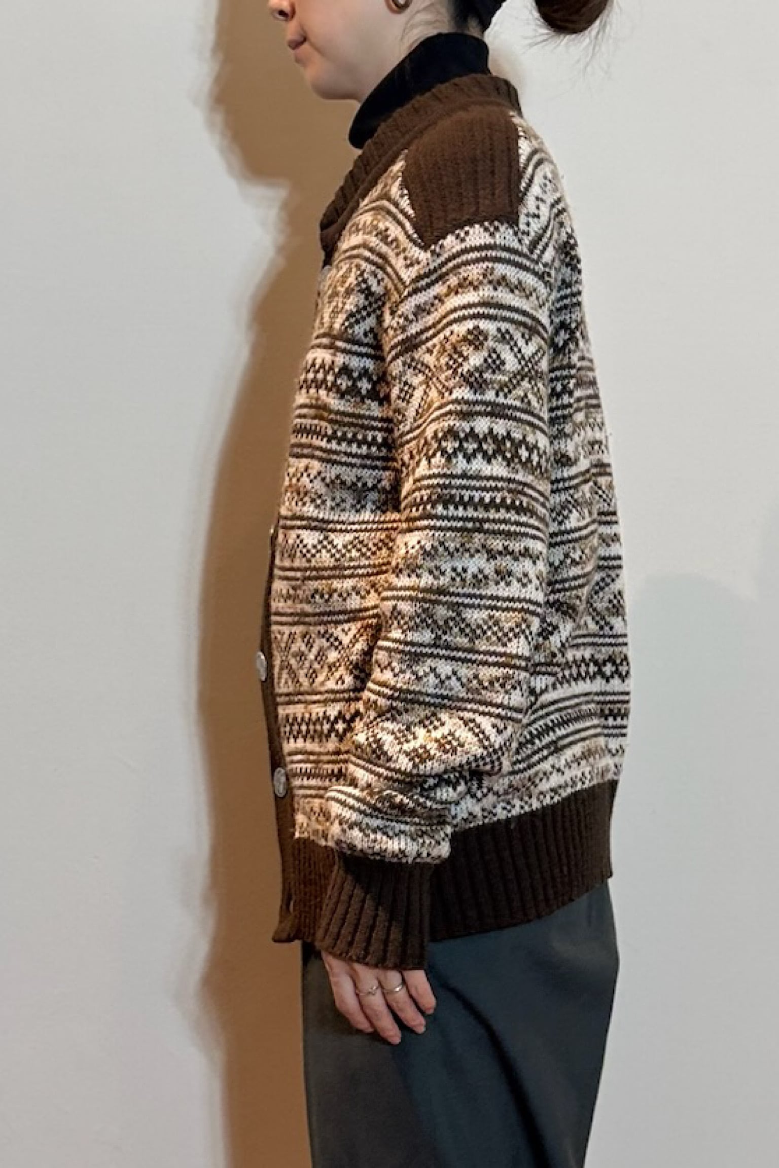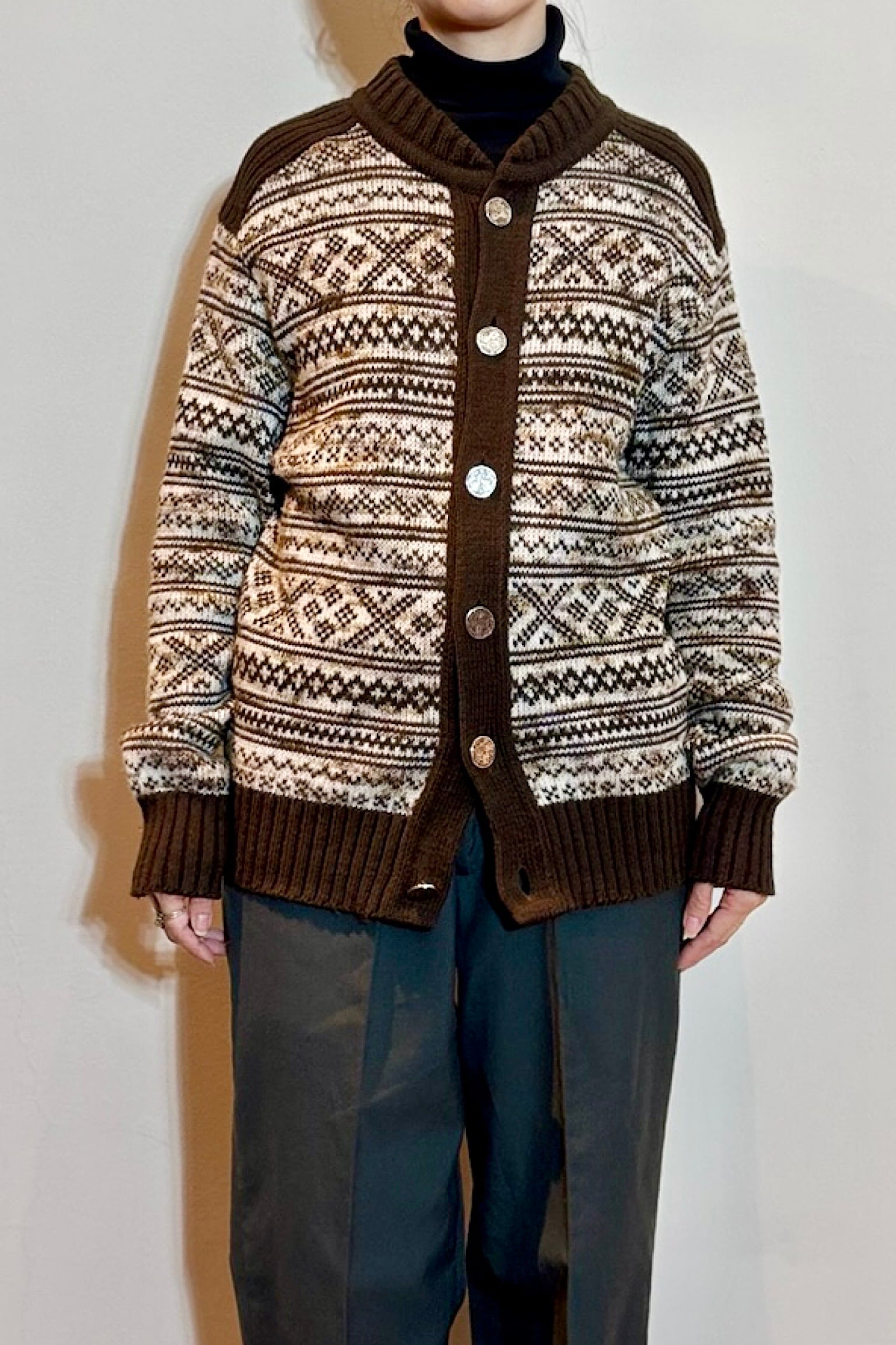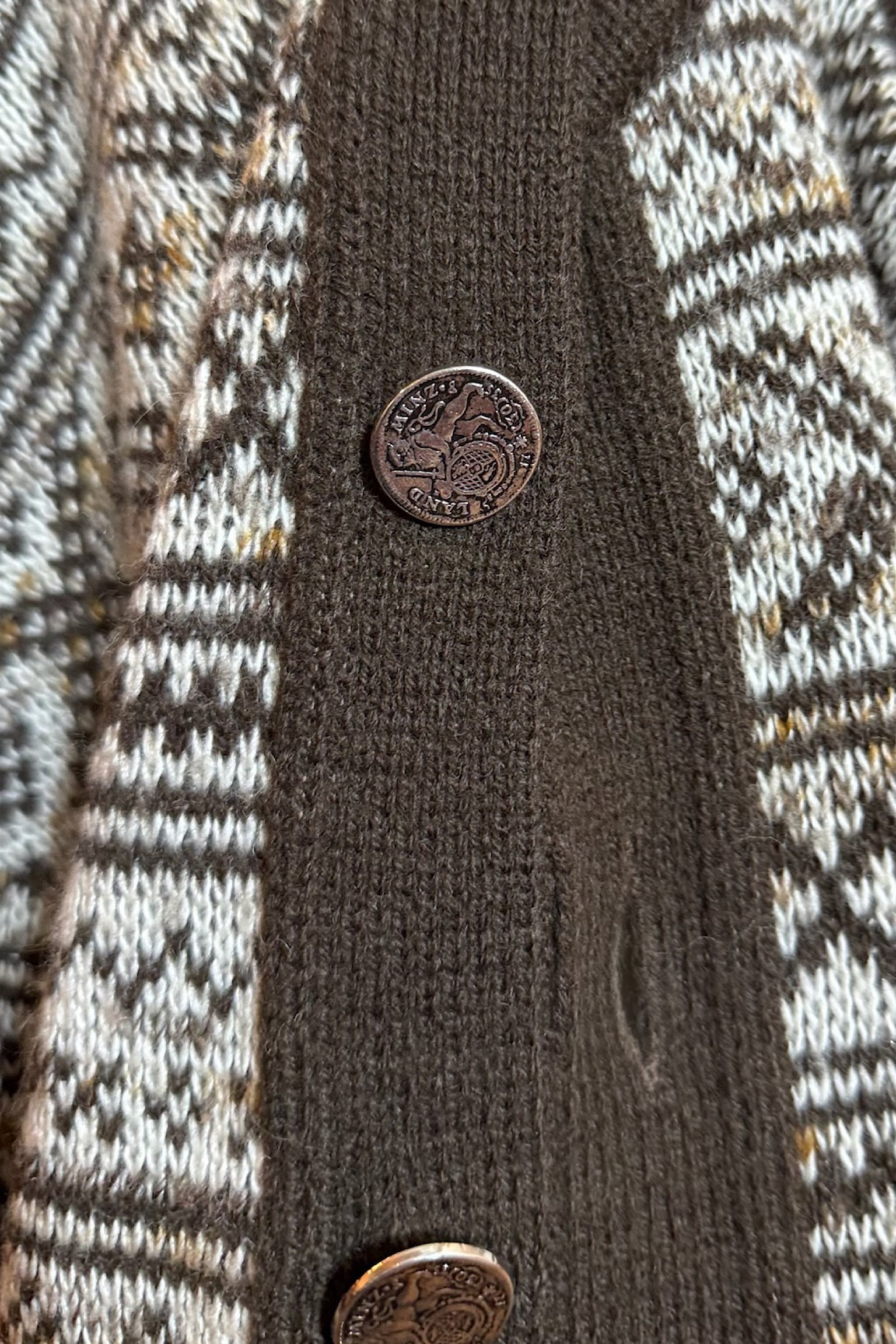 ドイツのコインボタンブラウンニットカーディガン。