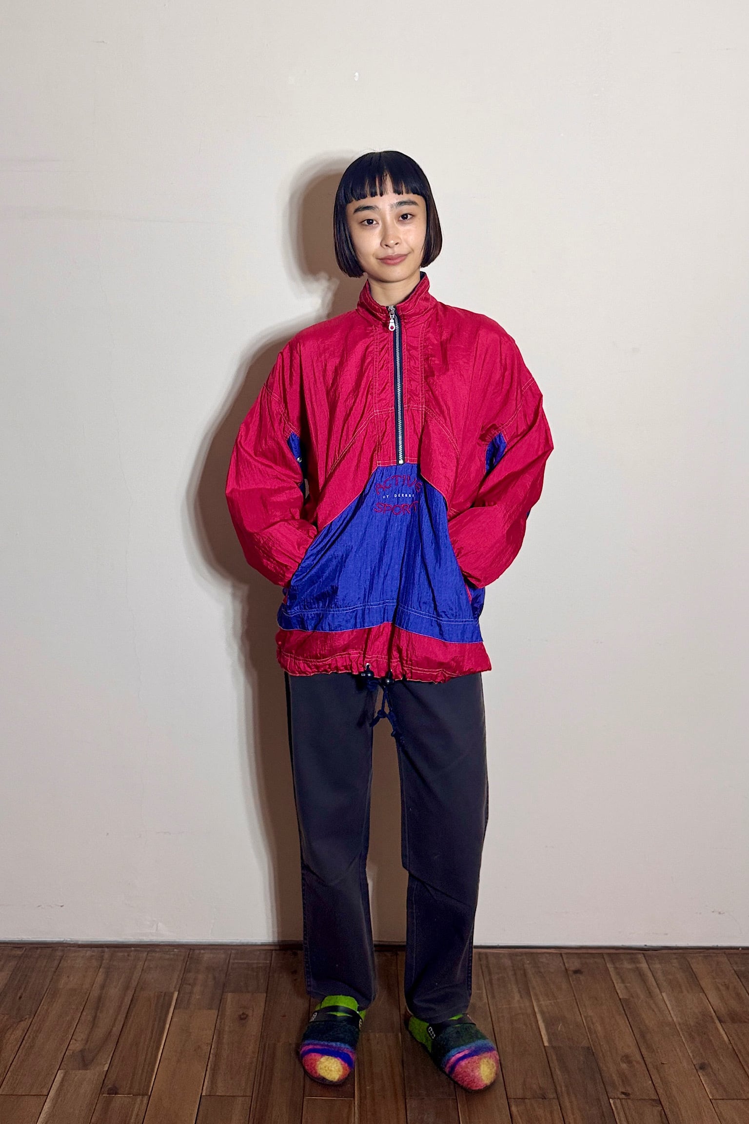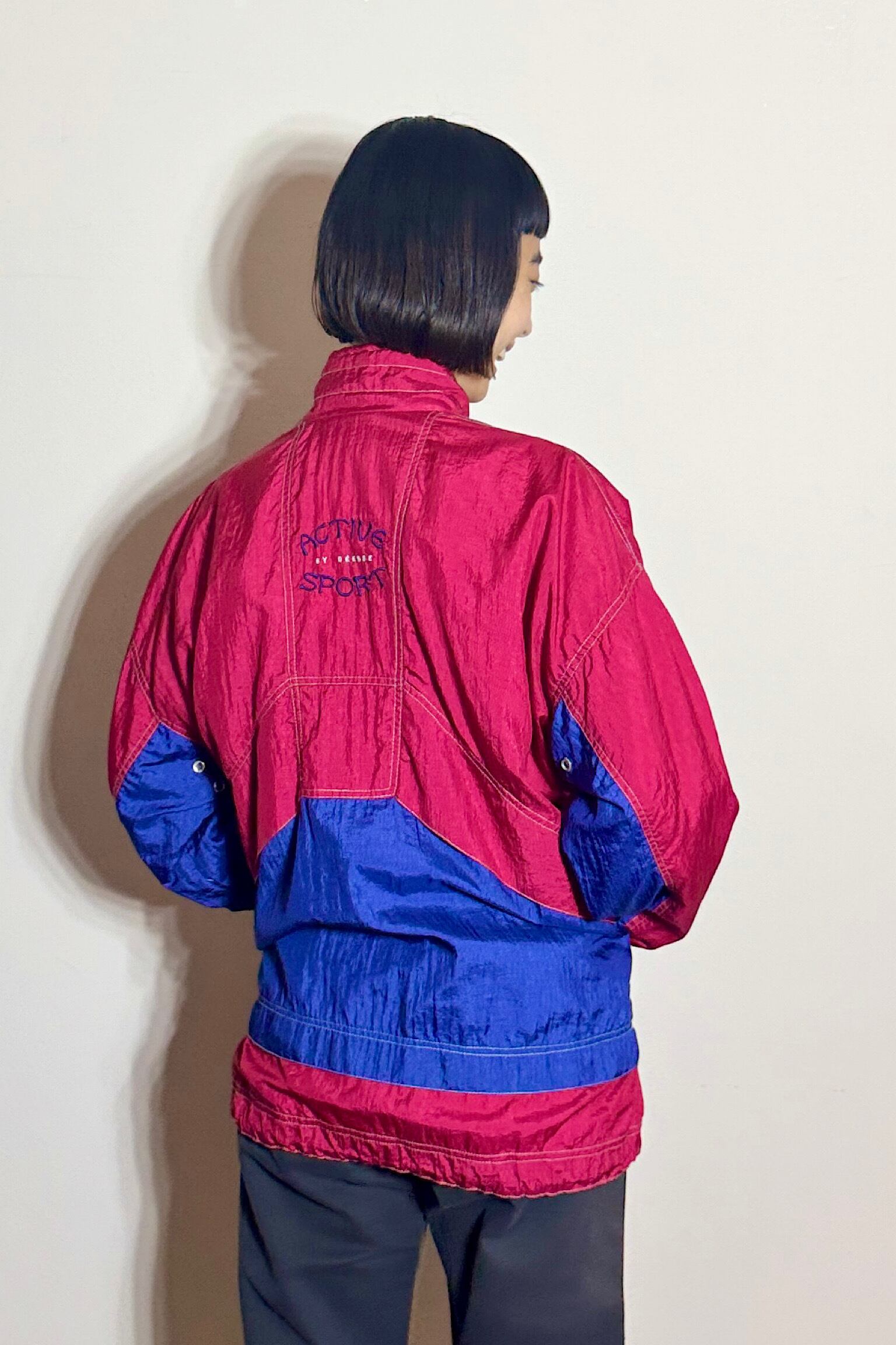 鮮やかなレッドパープルのPESSEナイロンアノラックは、90年代の雰囲気が漂う独特な一着です。