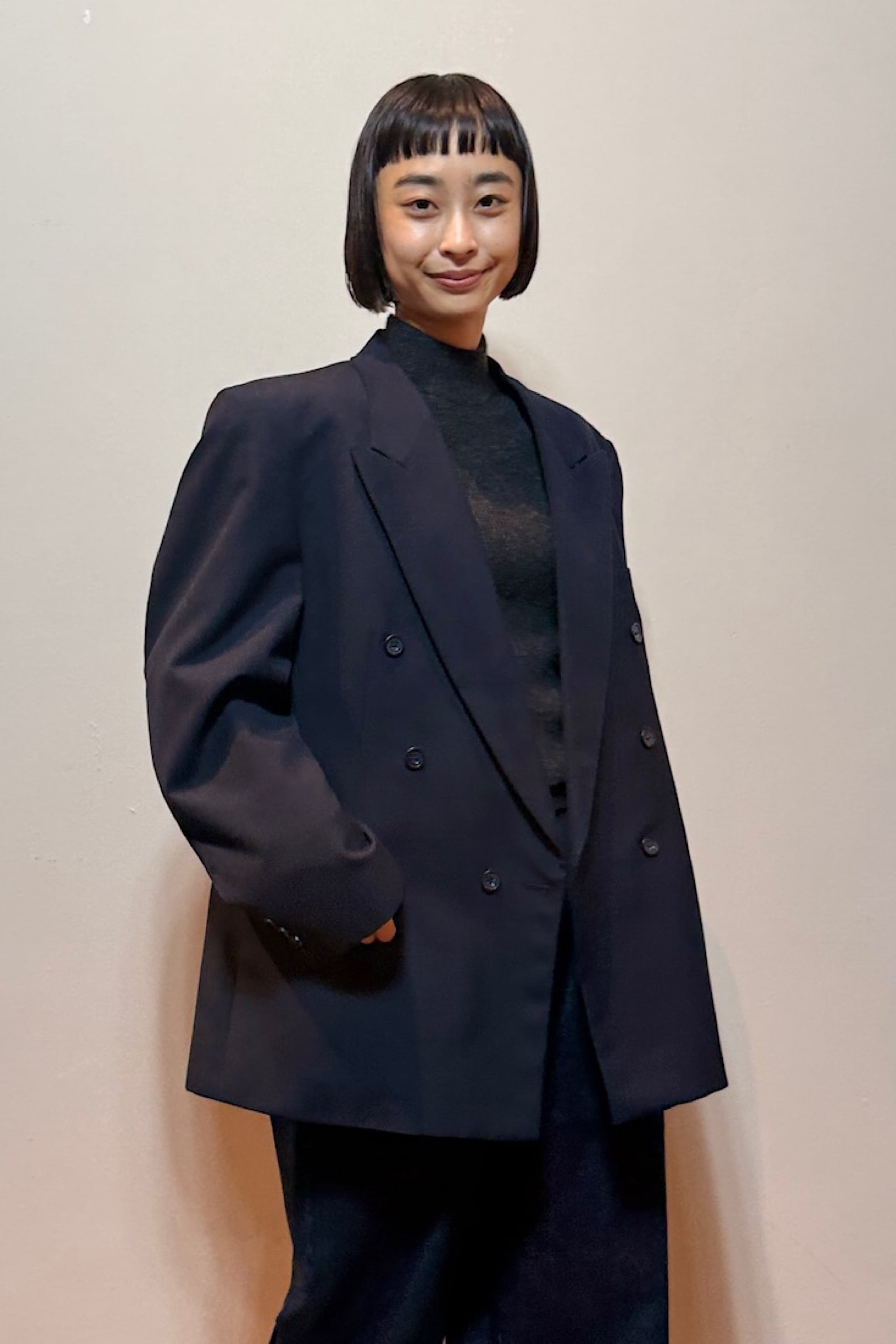 メンズのジャケットですが、女性がオーバーサイズで着ても素敵です。