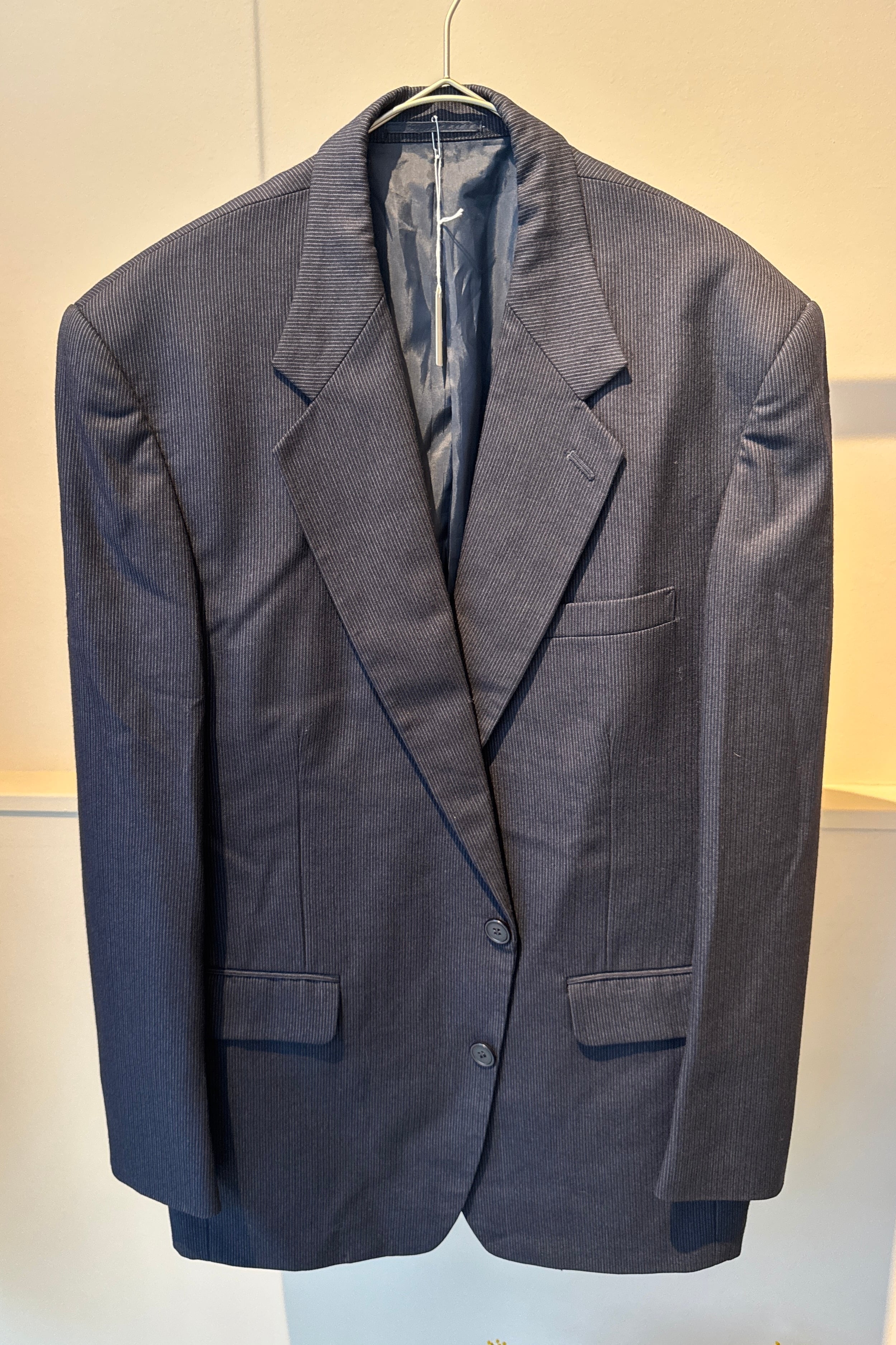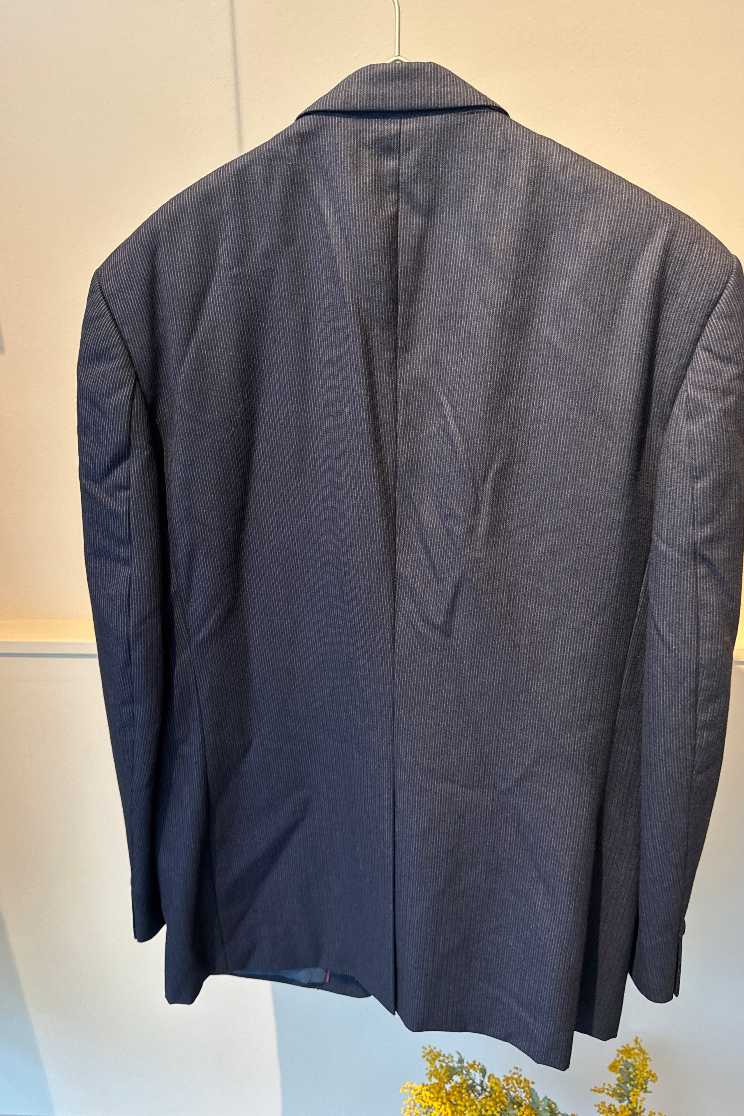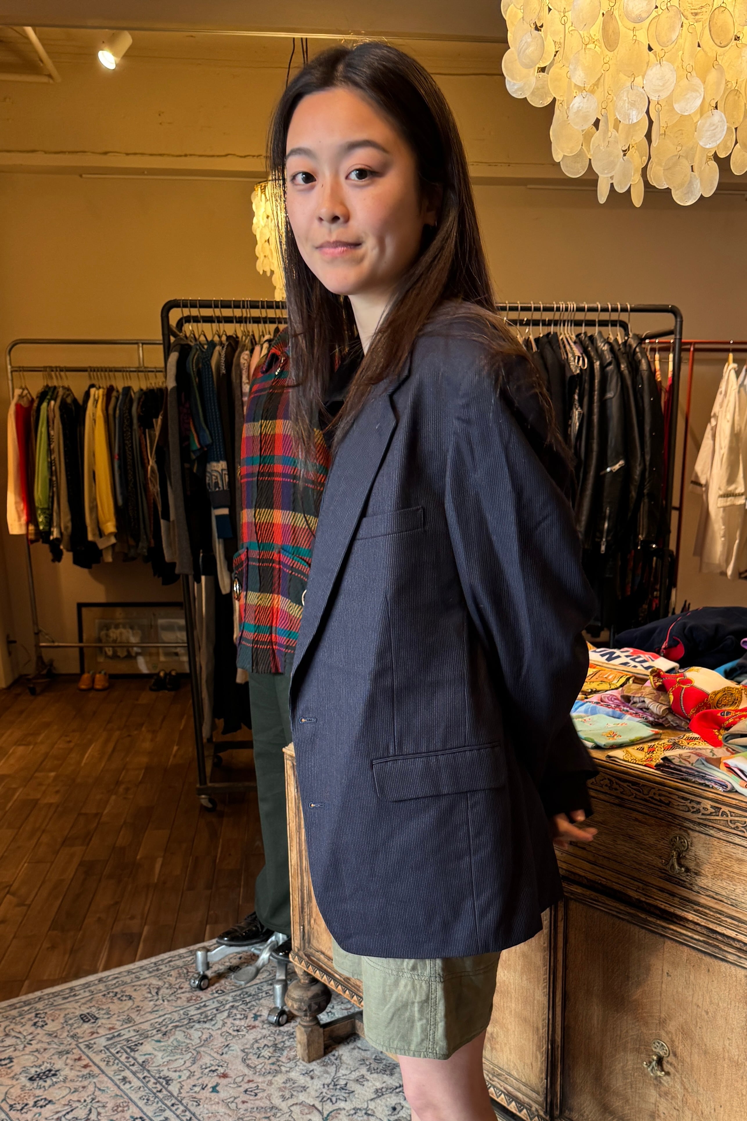 ピンストライプのネイビージャケット。