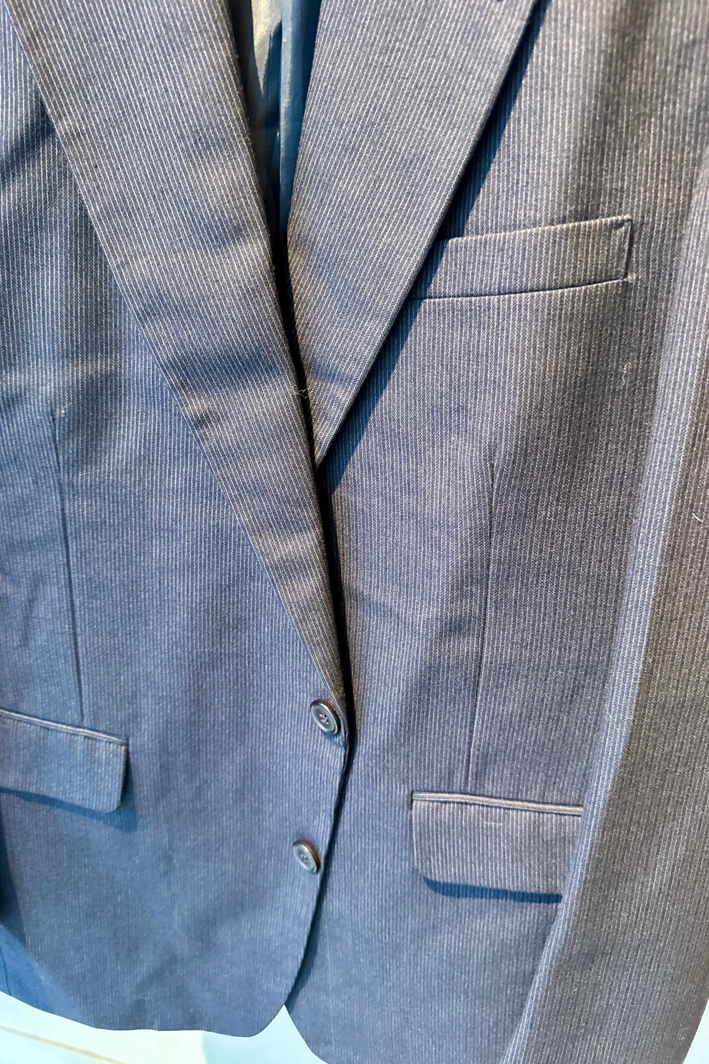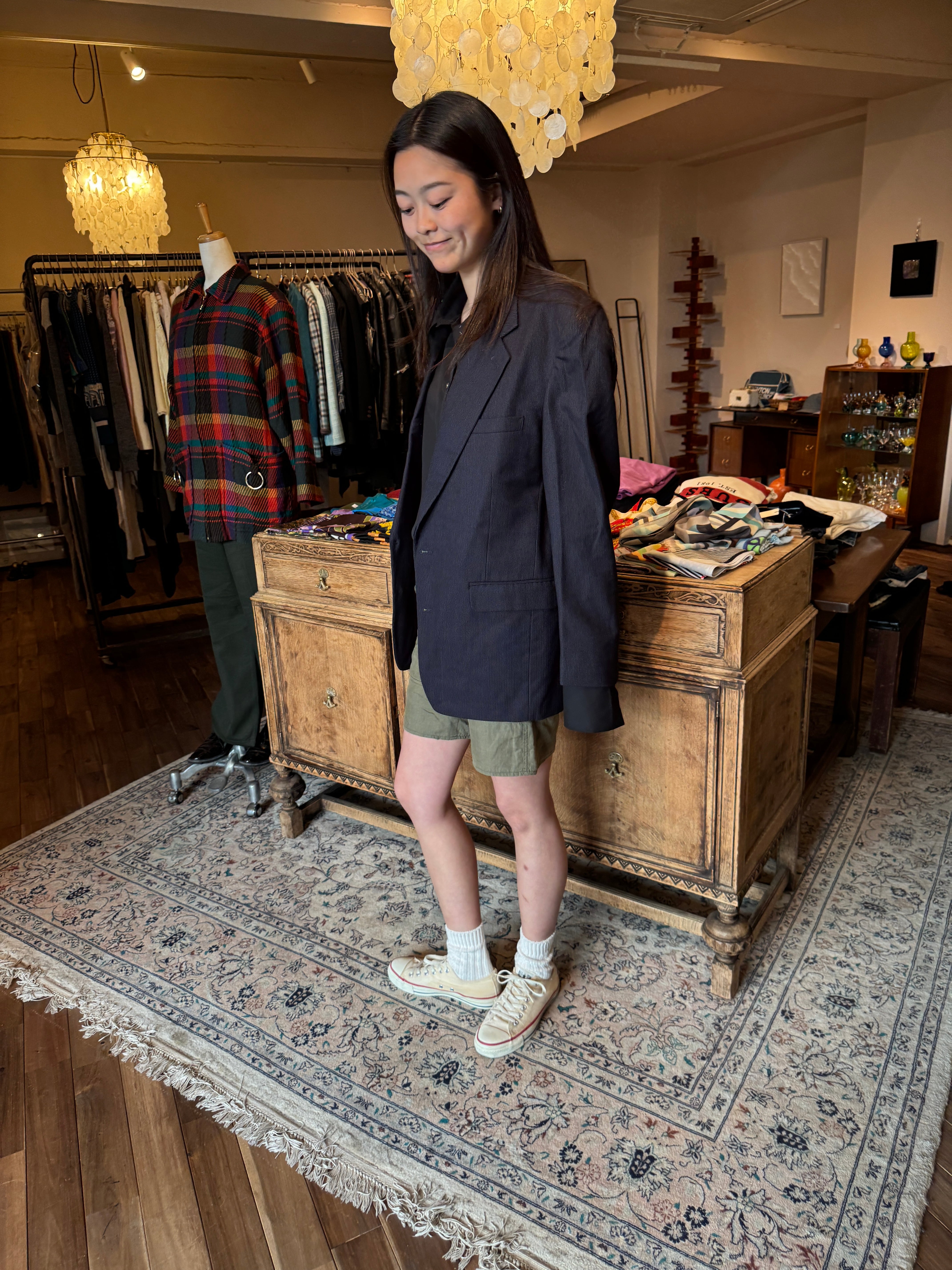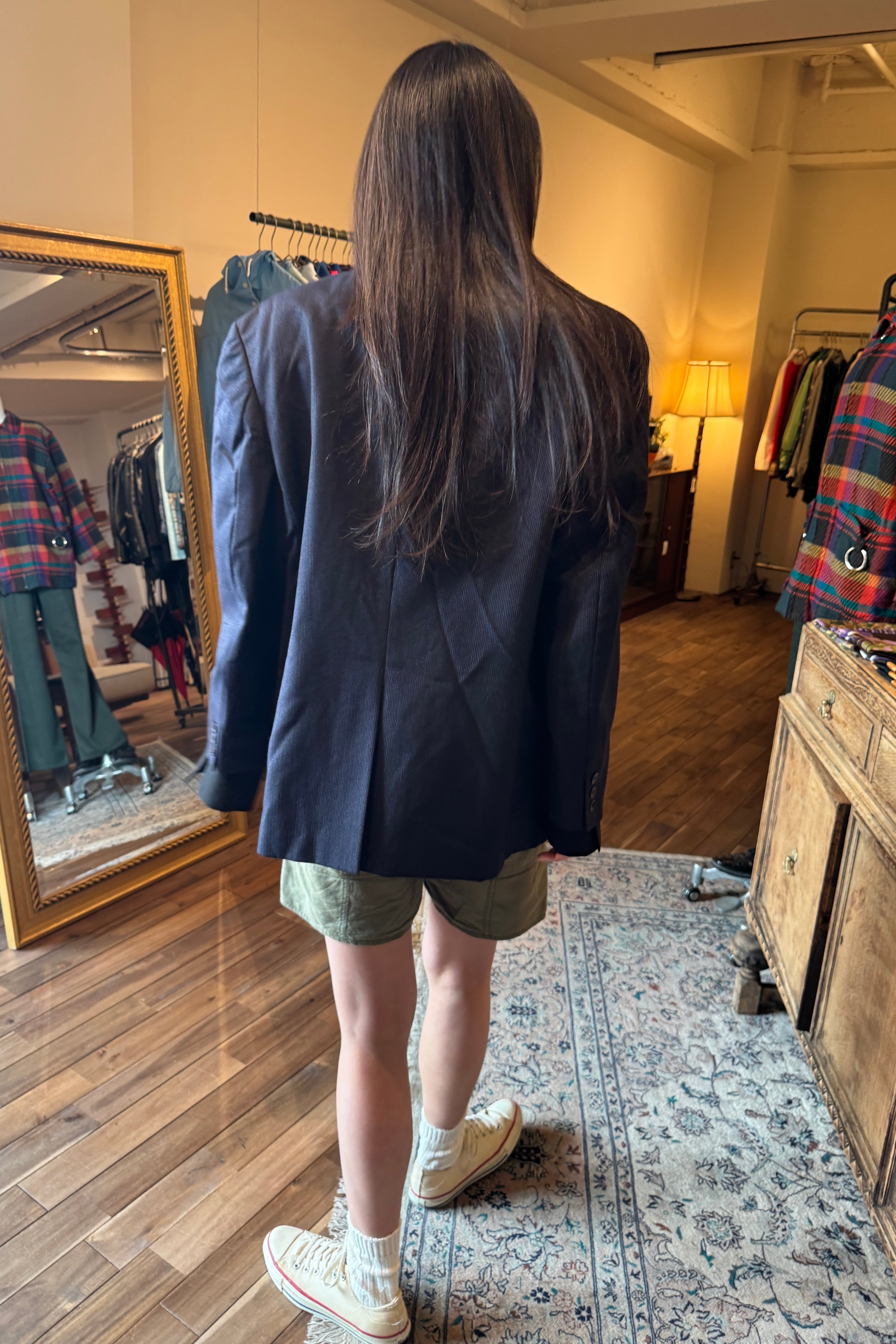 ピンストライプのネイビージャケット。