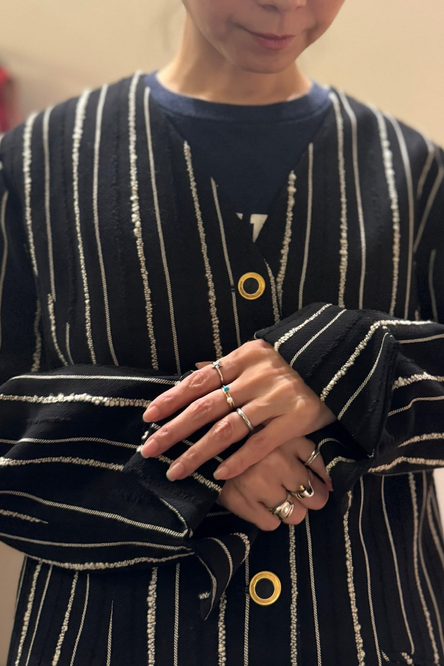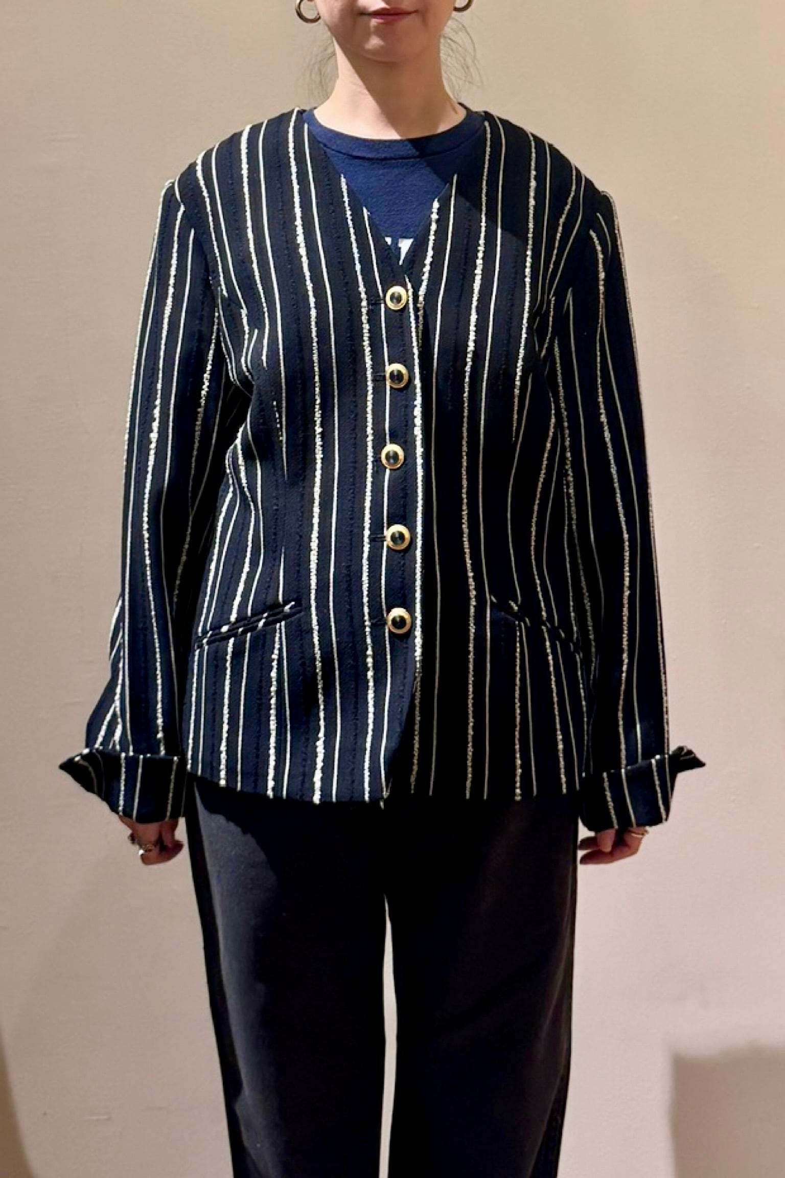 ゴールドのボタンも上品。