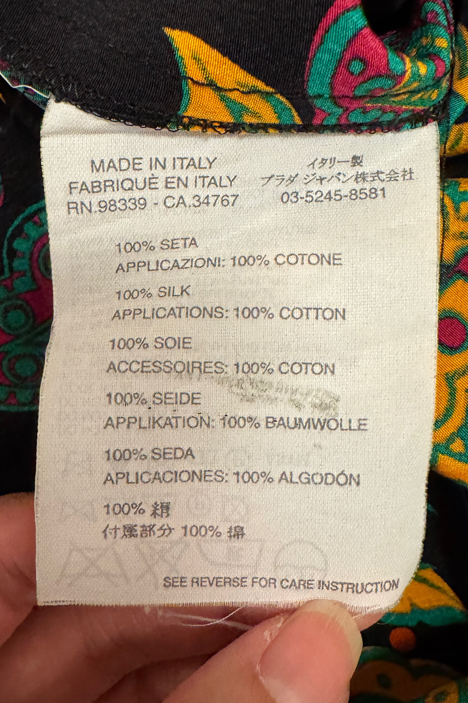 シルク素材に施された色鮮やかな花柄は、ヴィンテージ感を醸し出しつつも、どこか女性らしいエレガンスを感じさせます。