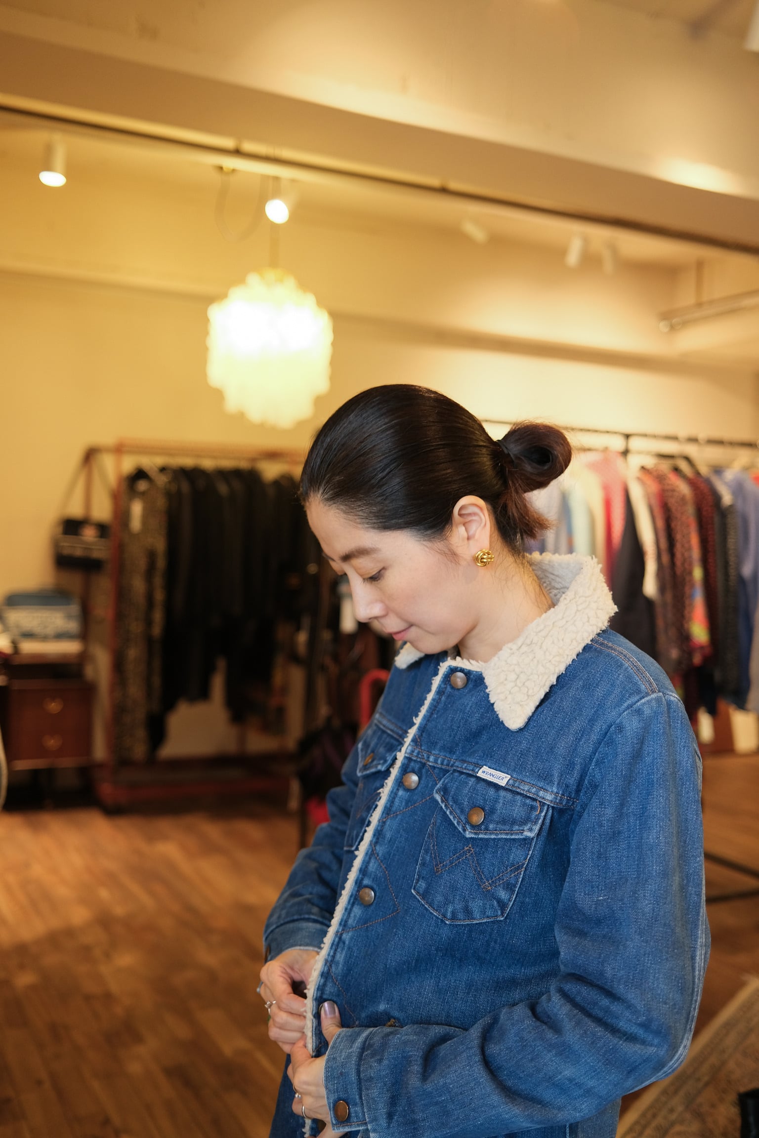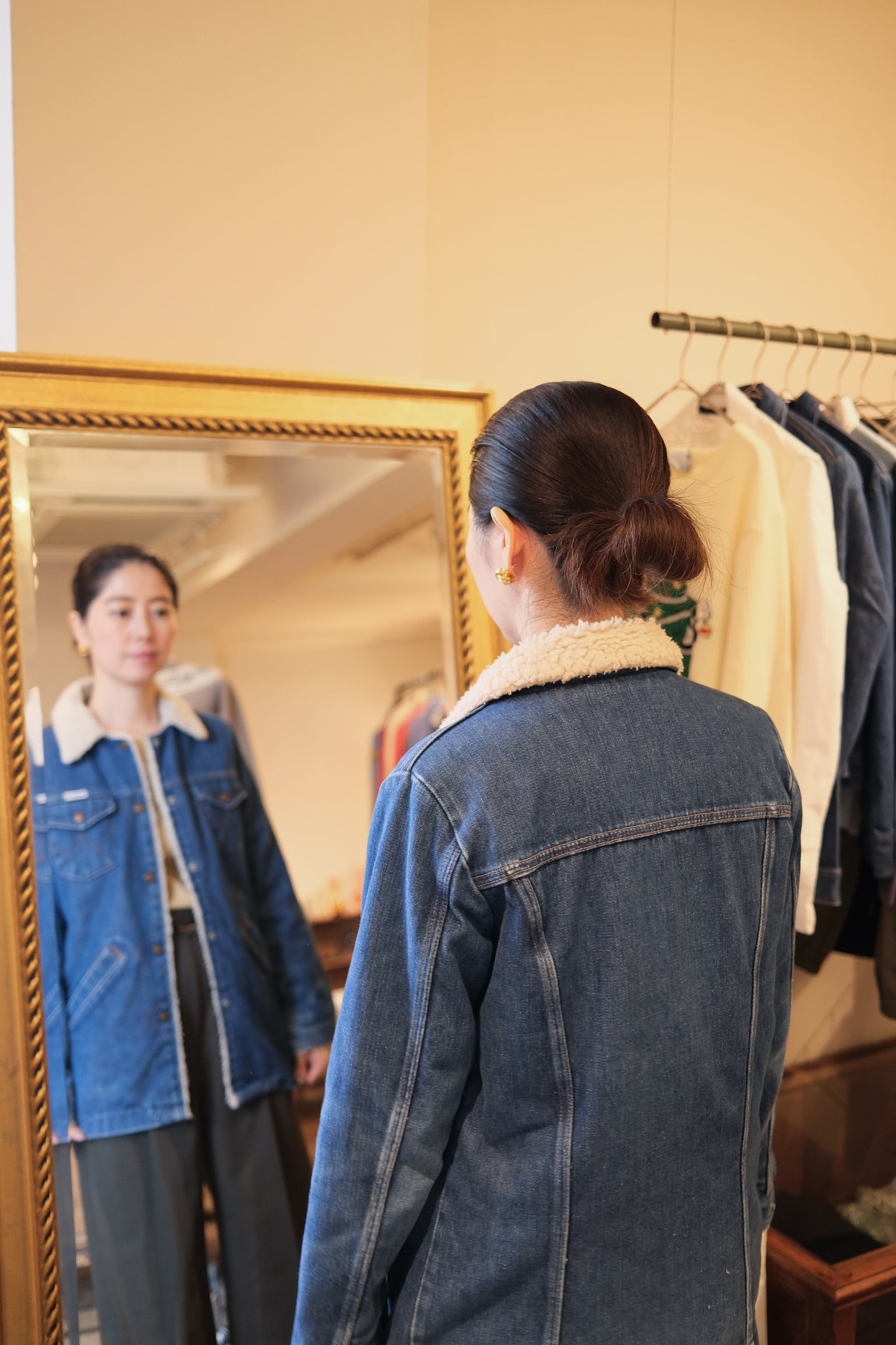 Wranglerのボアデニムジャケットは、ヴィンテージならではの風合いが魅力的なアイテムです。柔らかなボア素材を裏地に使用しており、暖かさとともに、着心地も抜群。表面のデニム生地は経年変化によって独特の色味を持ち、一着一着で個体差が楽しめます。このジャケットを羽織るだけで、シンプルなTシャツやスウェットとのコーディネートがグッと引き締まり、カジュアルながらも洗練された印象に。