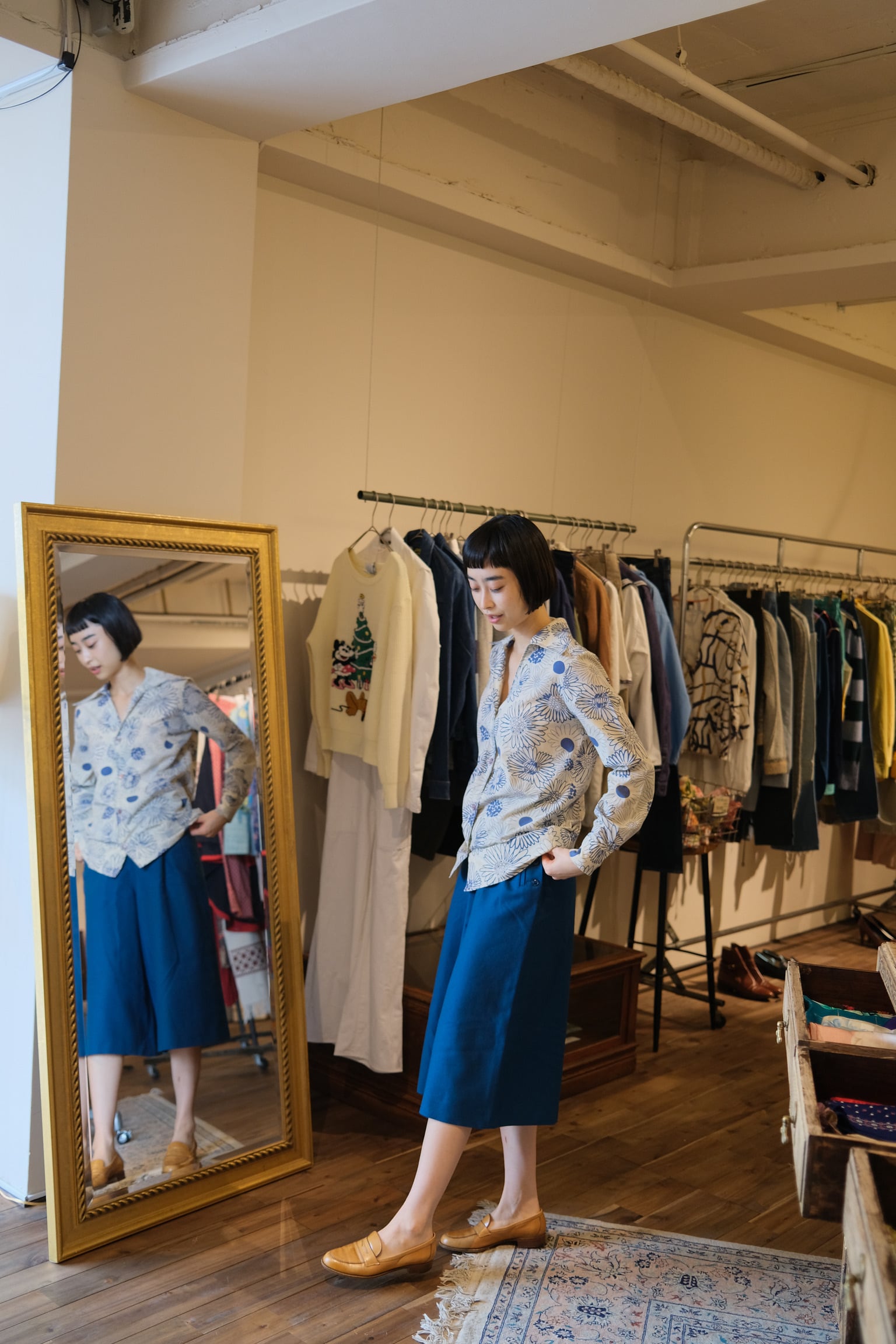 鮮やかなターコイズブルーの色味は、シンプルなトップスと合わせるだけで、一気にコーディネートを引き立てます。