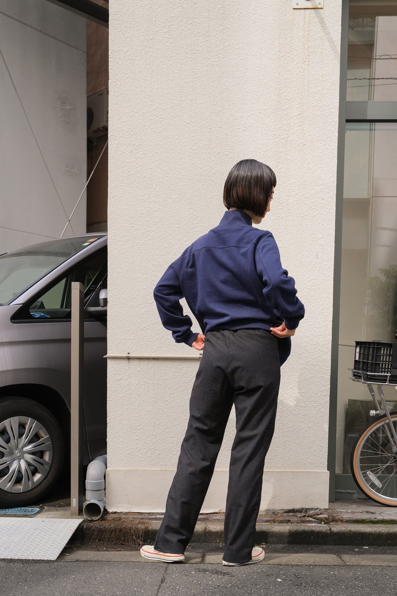 このパンツは高品質なウールを使用しており、その柔らかな素材感と絶妙なドレープが特徴。