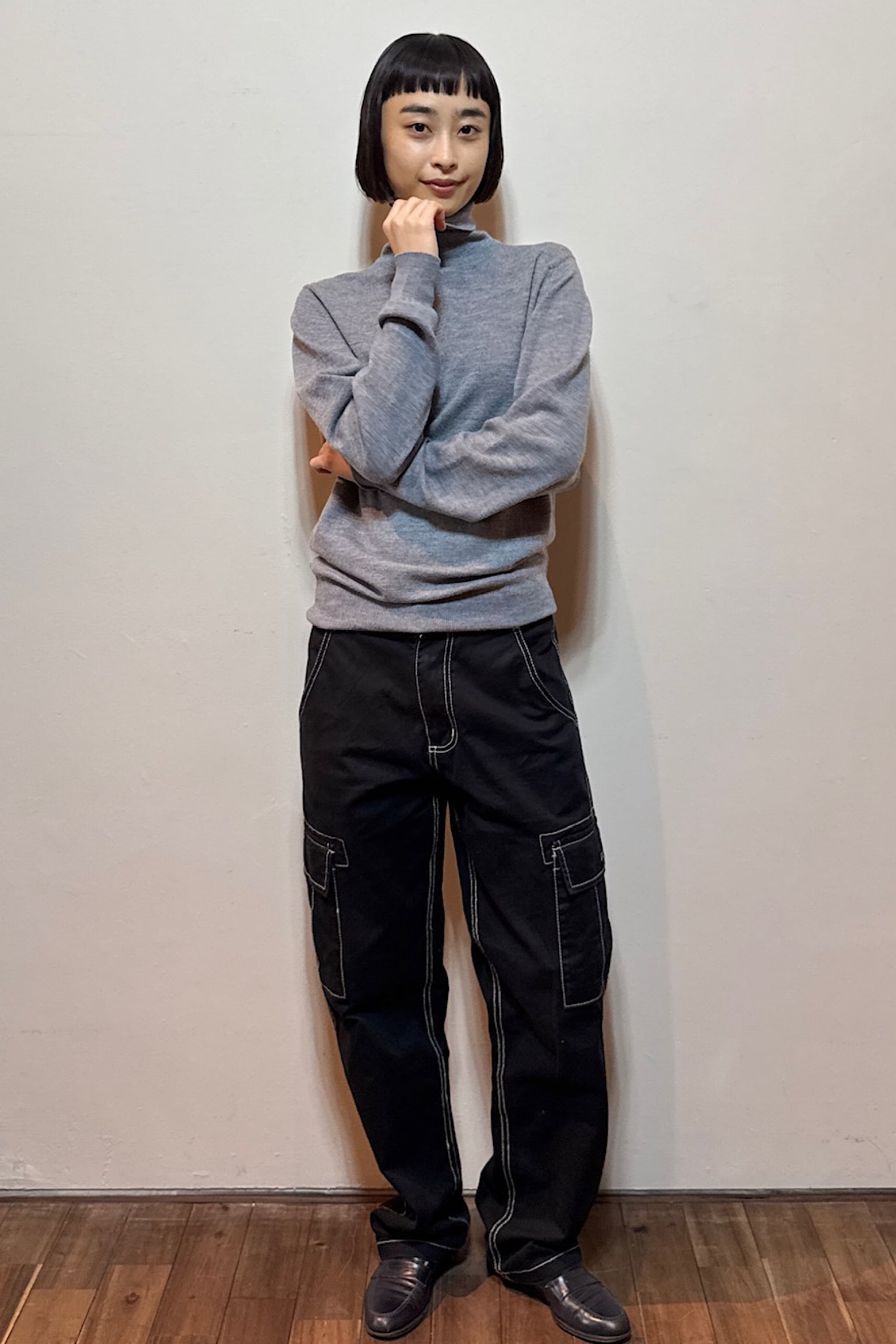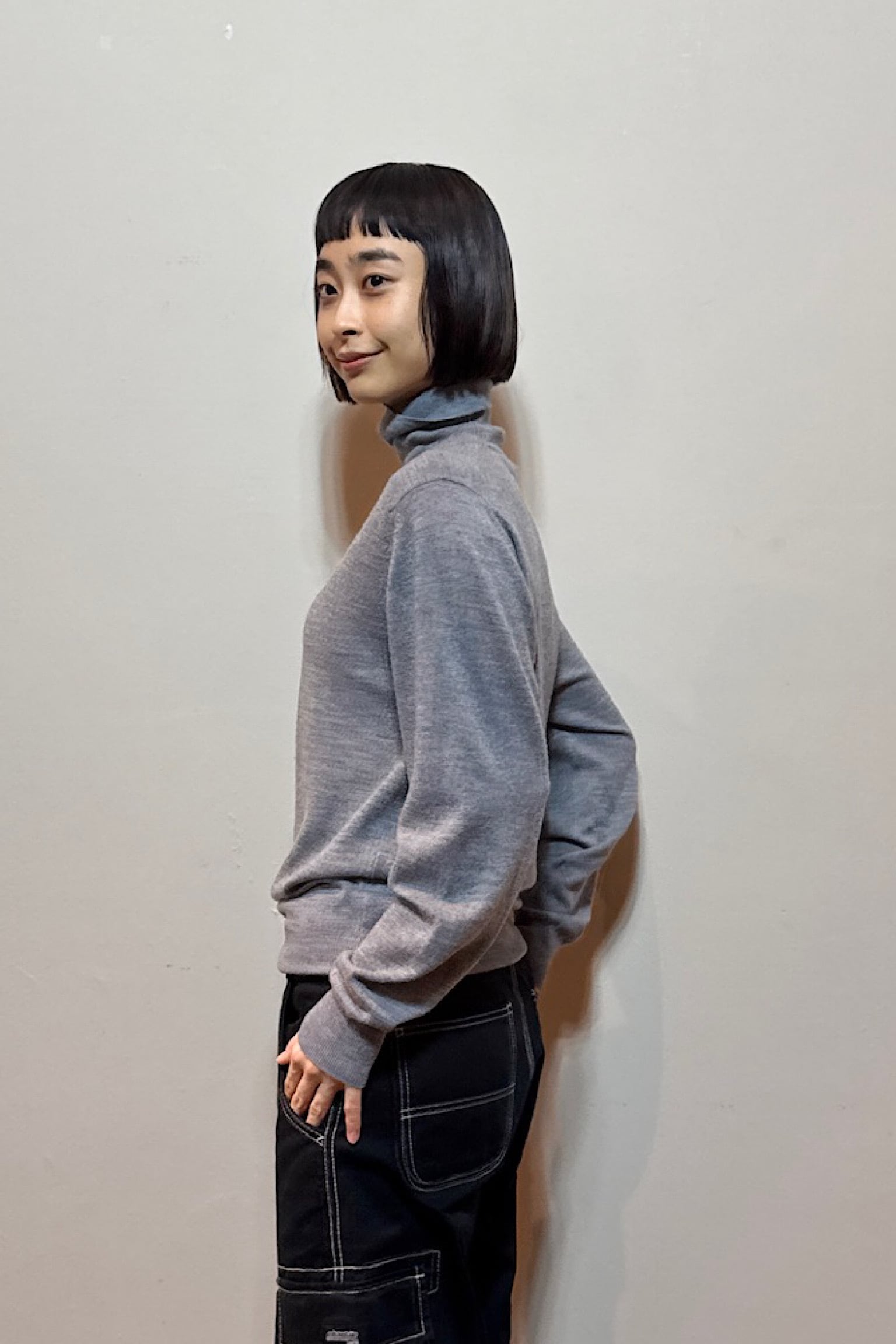 深みのあるグレーの色味は多彩なコーディネートを可能にし、カジュアルなデニムスタイルから、大人っぽいスカートとの合わせにもぴったり。