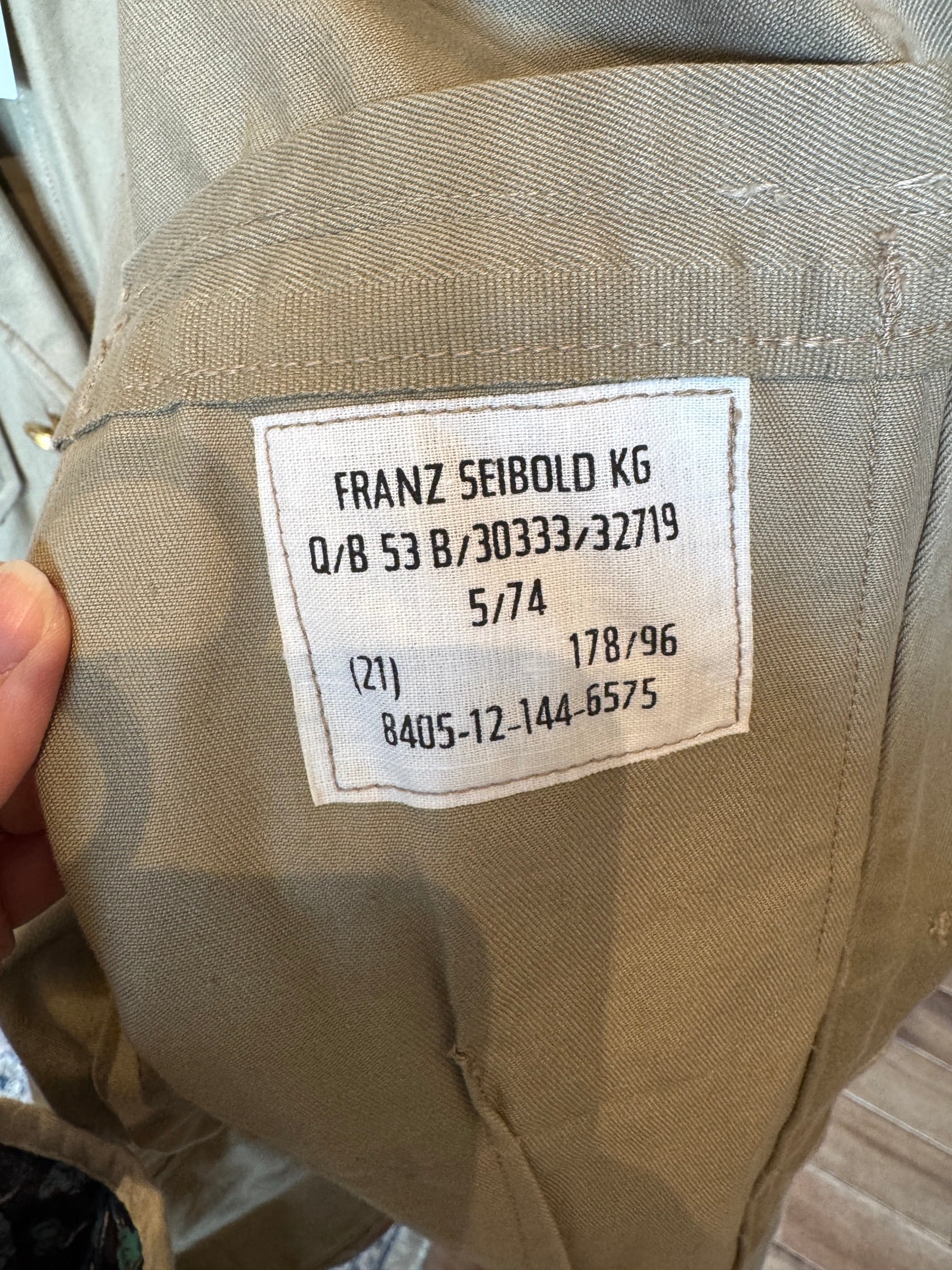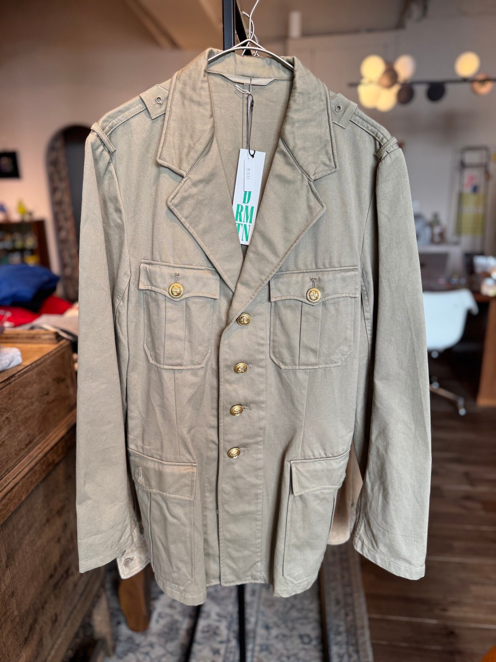 この年代のドイツ軍のアイテムは、ミリタリーウェアでありながらテーラードジャケットのような上品なシルエットが特徴です。サファリジャケットのような雰囲気もあり、現代のファッションとしても非常に取り入れやすいヴィンテージピースと言えます。