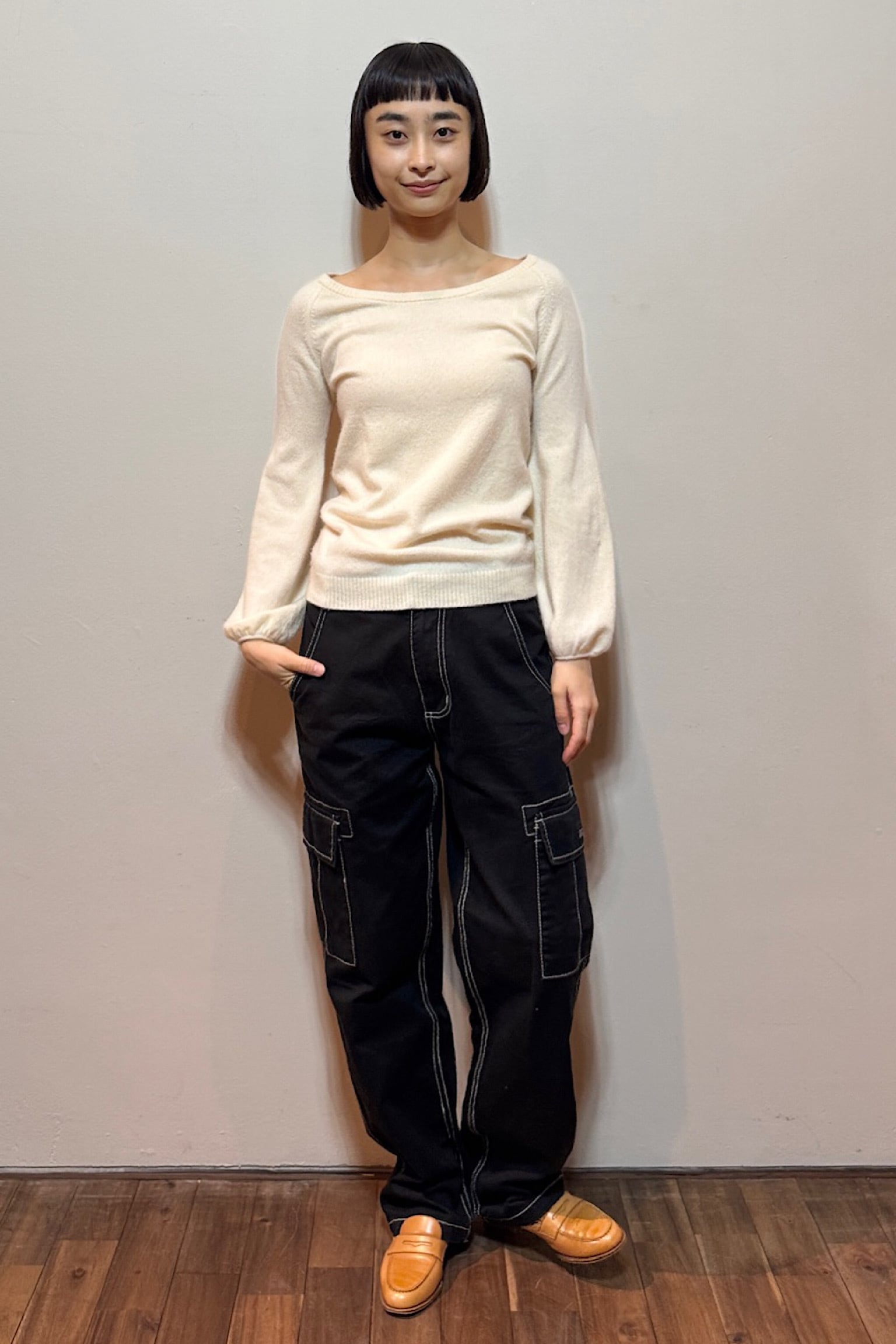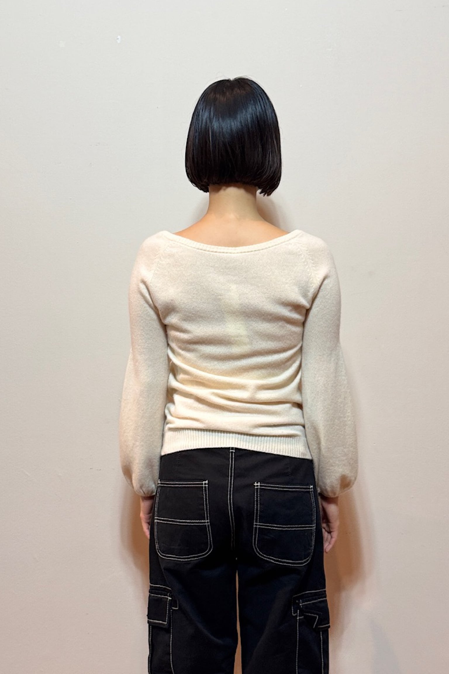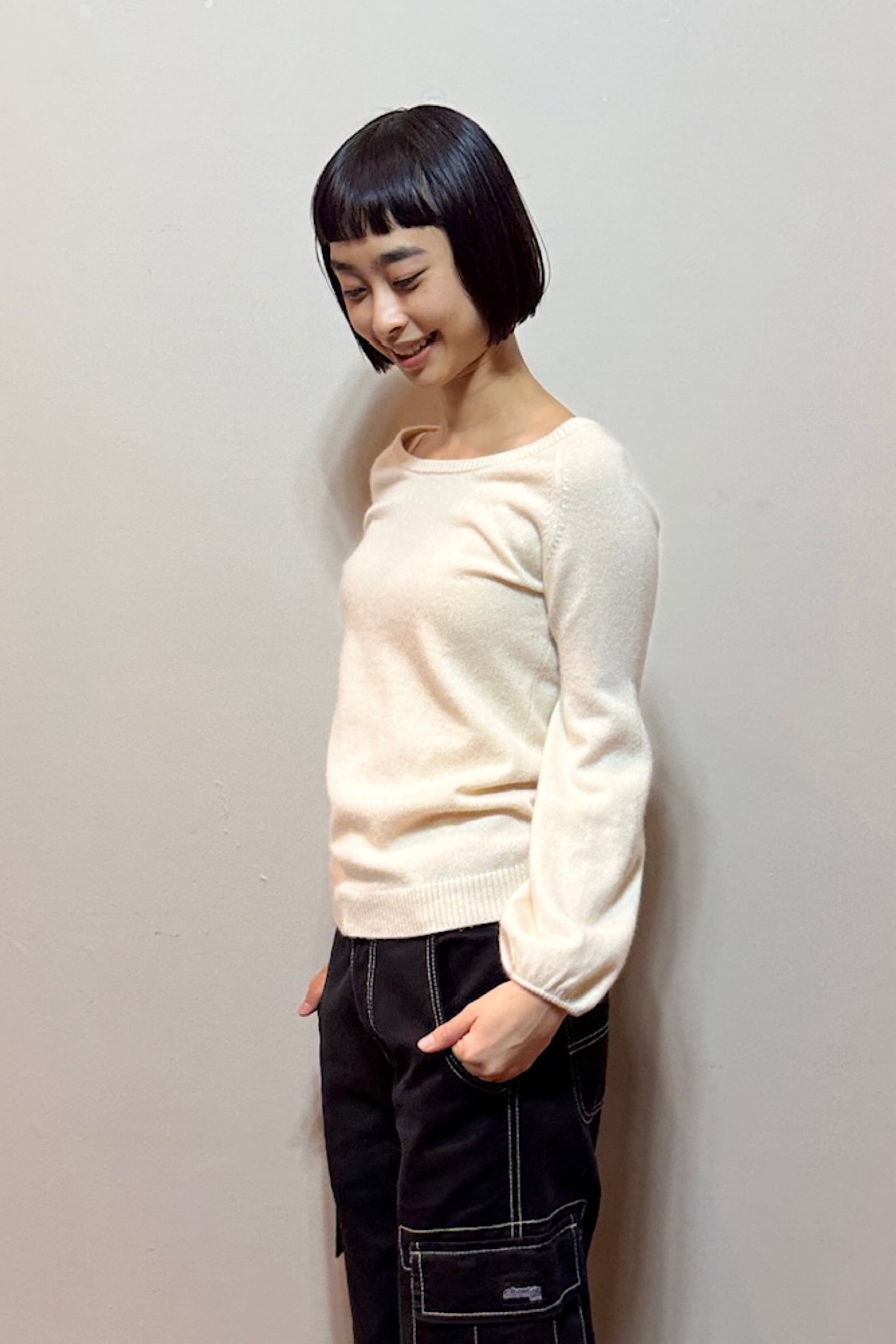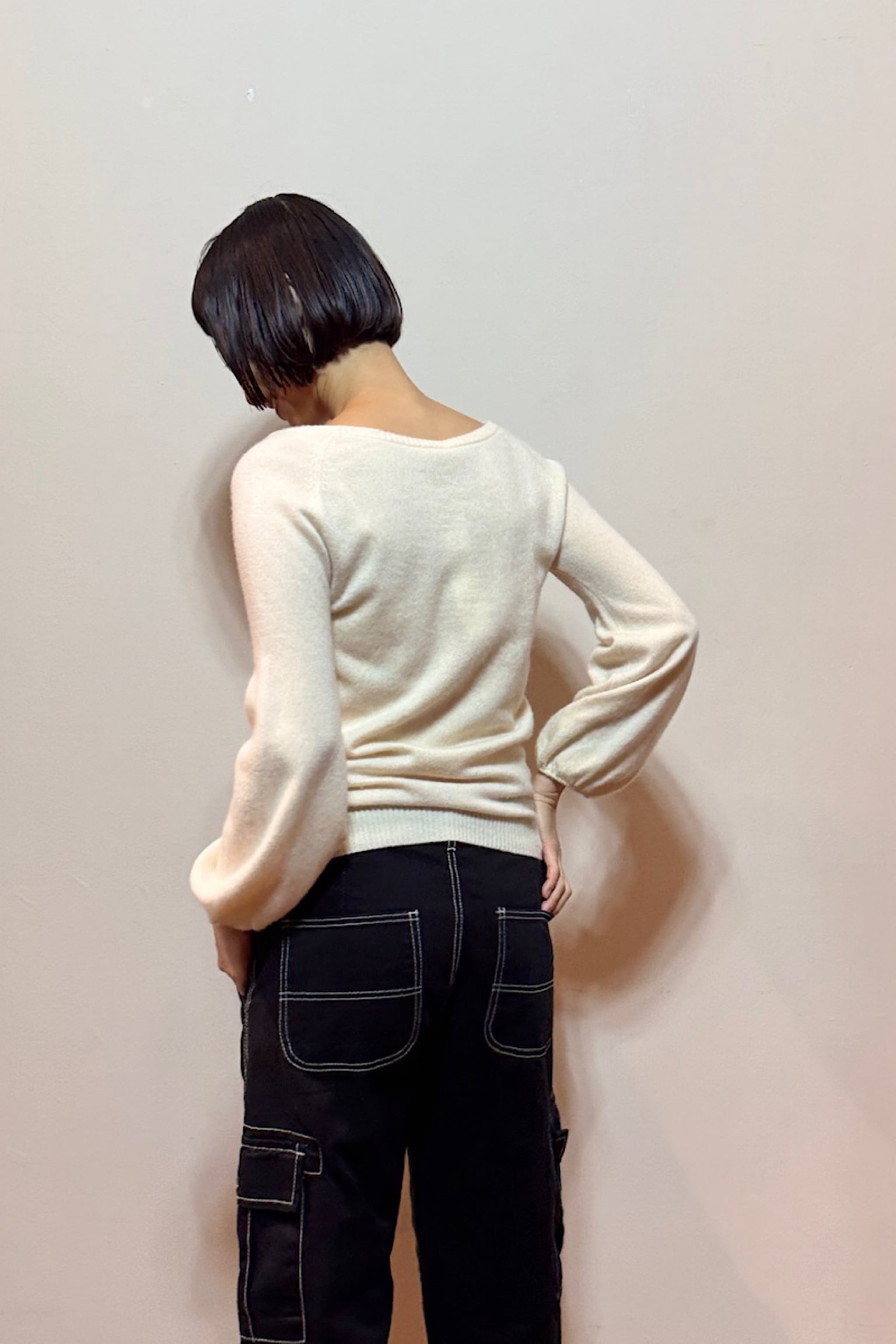 上質なホワイトカシミアで仕立てられたパフスリーブニット。