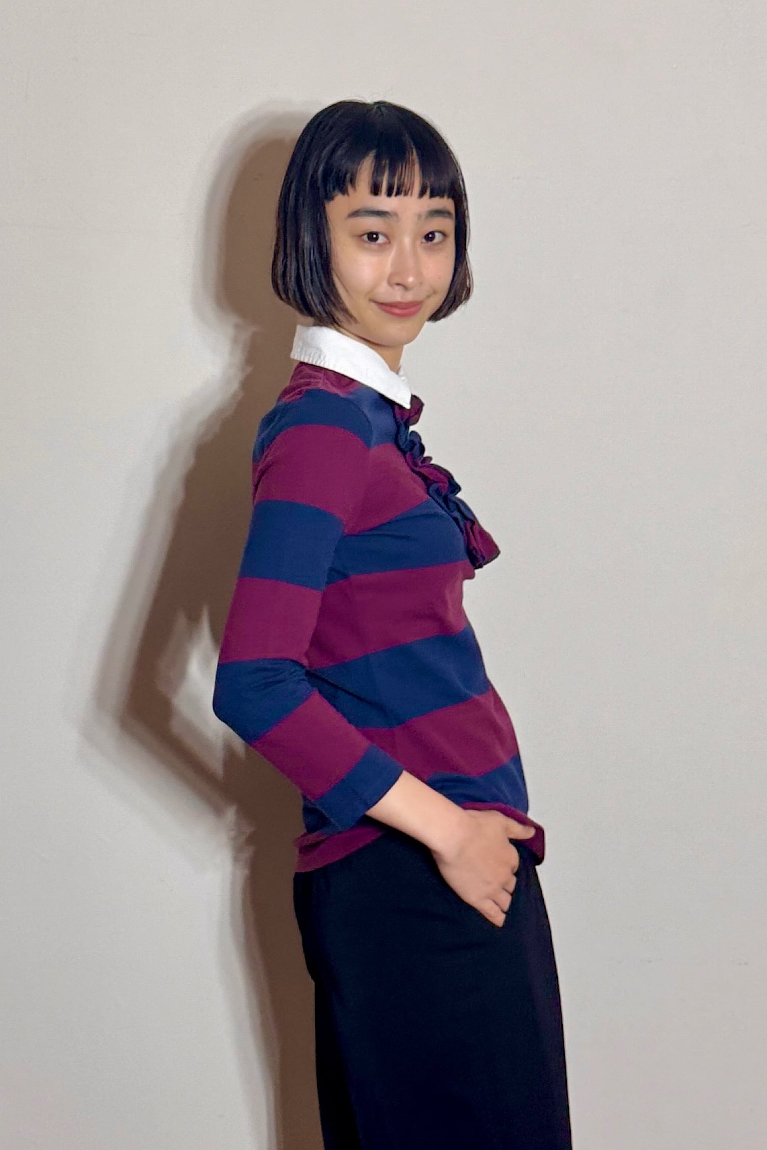 メンズらしくになりがちなラガーシャツもこちらなら女性らしく着こなせそうです。
