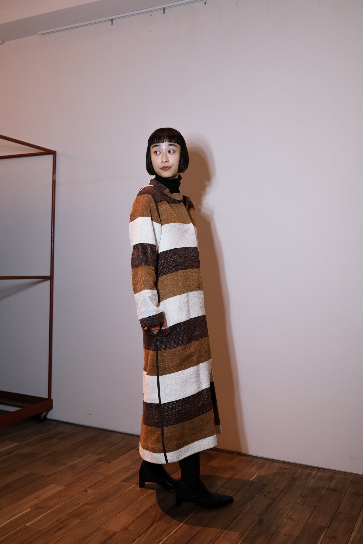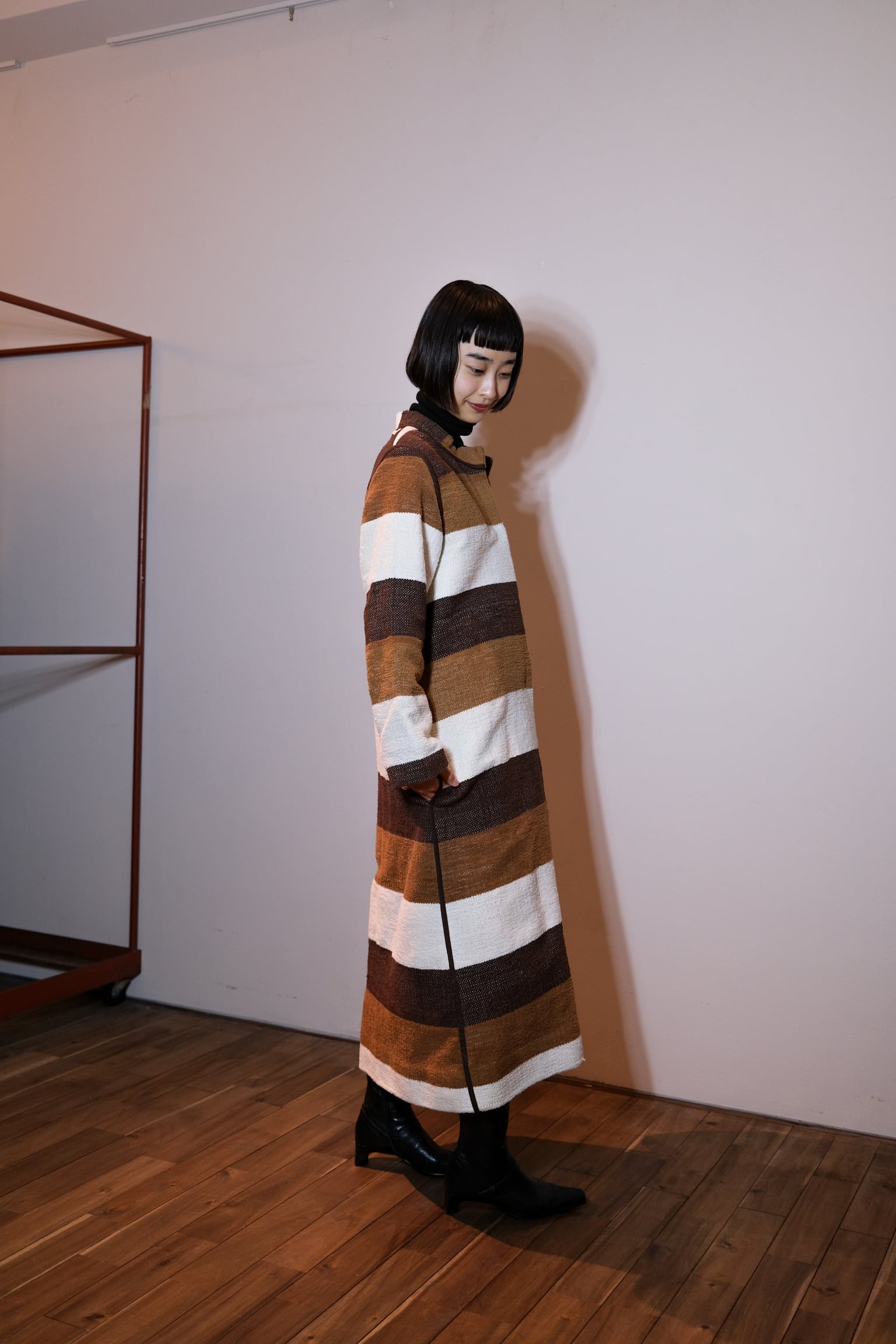 ボーダーウーブンロングコート