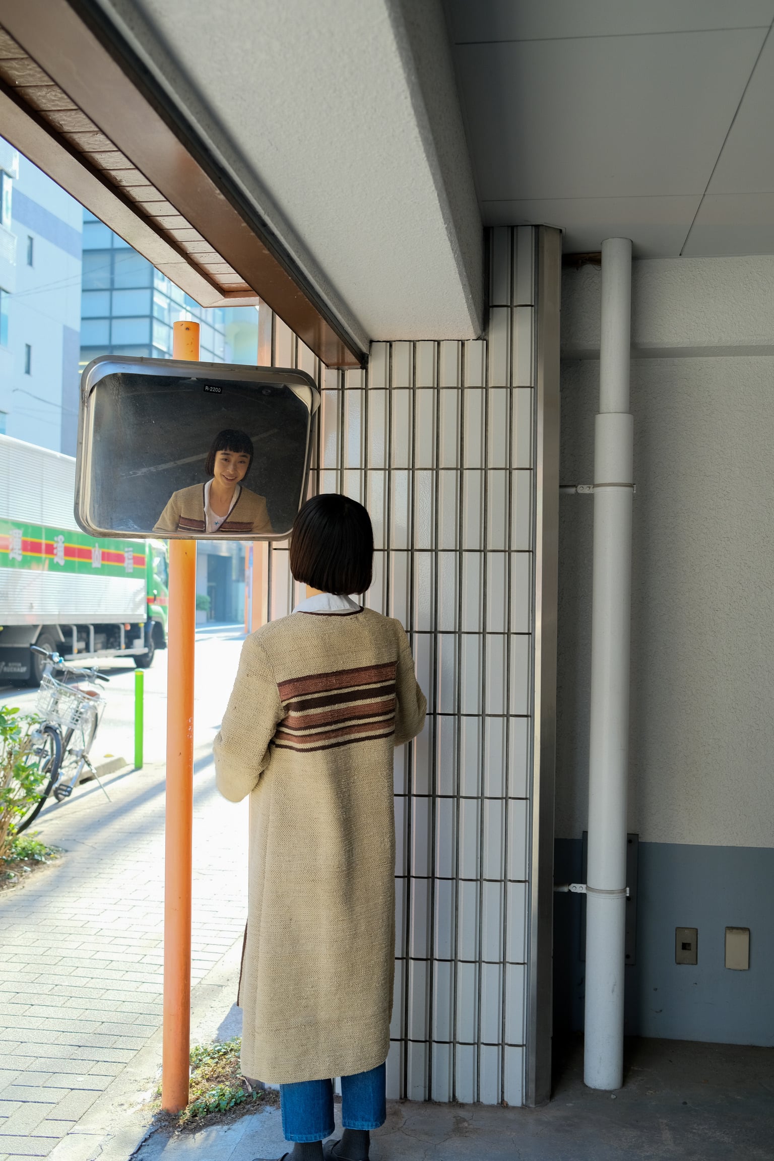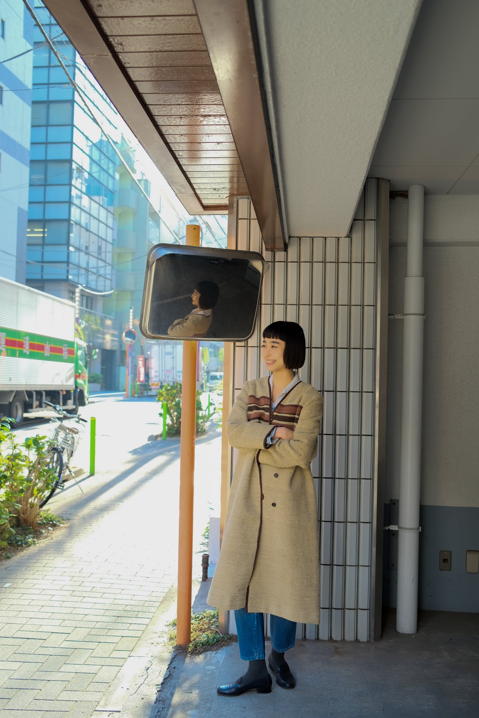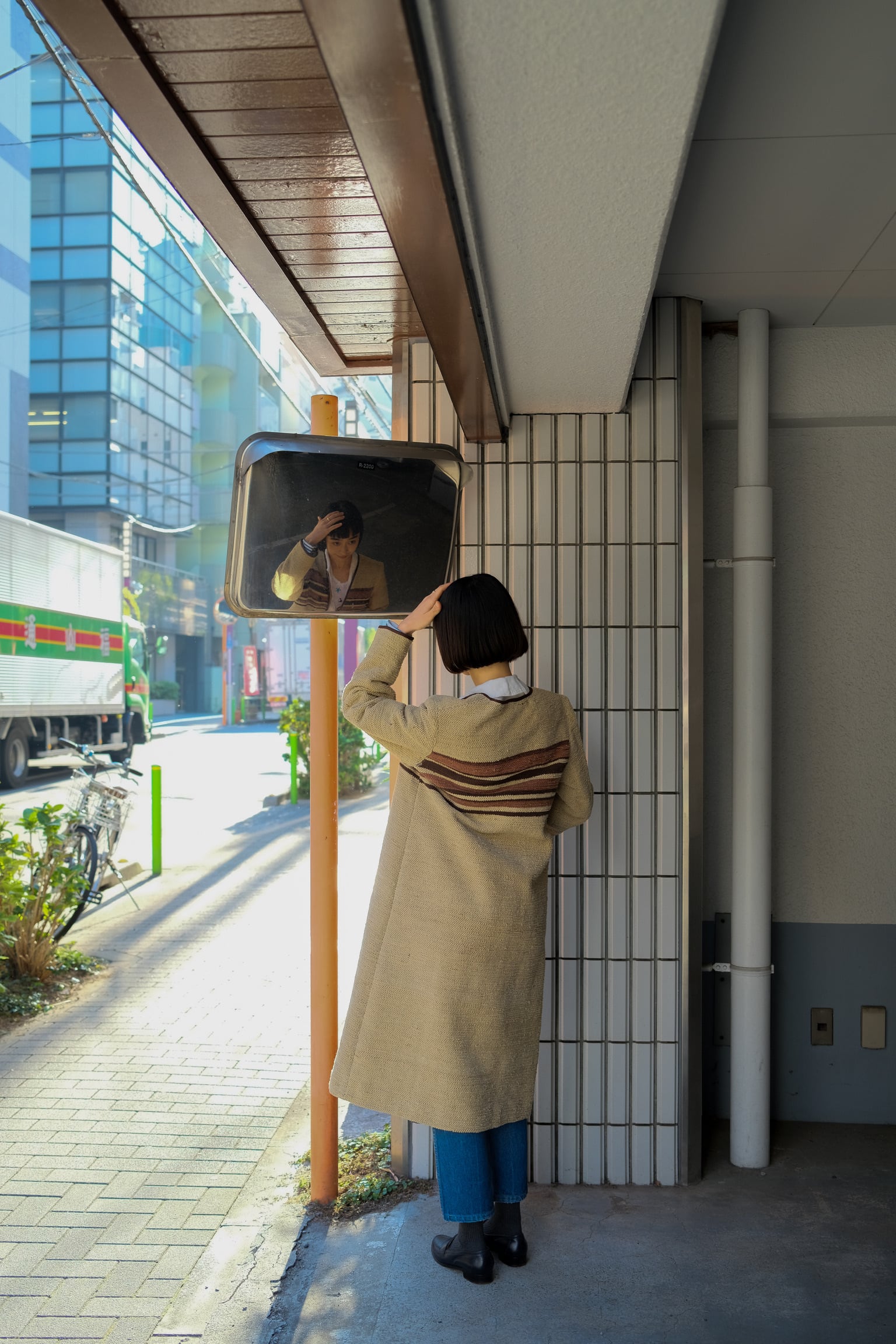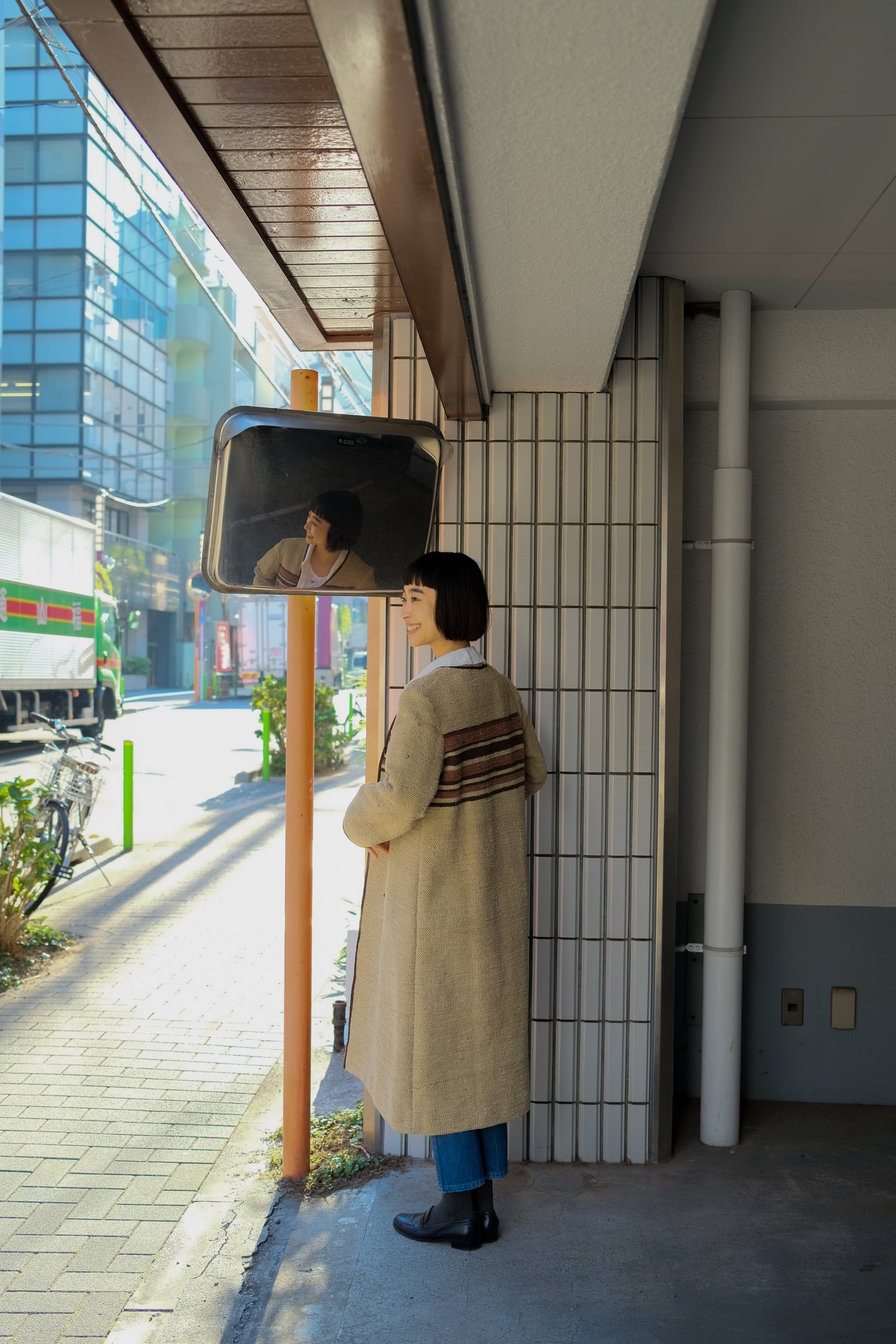 ブラウンウーブンロングコート