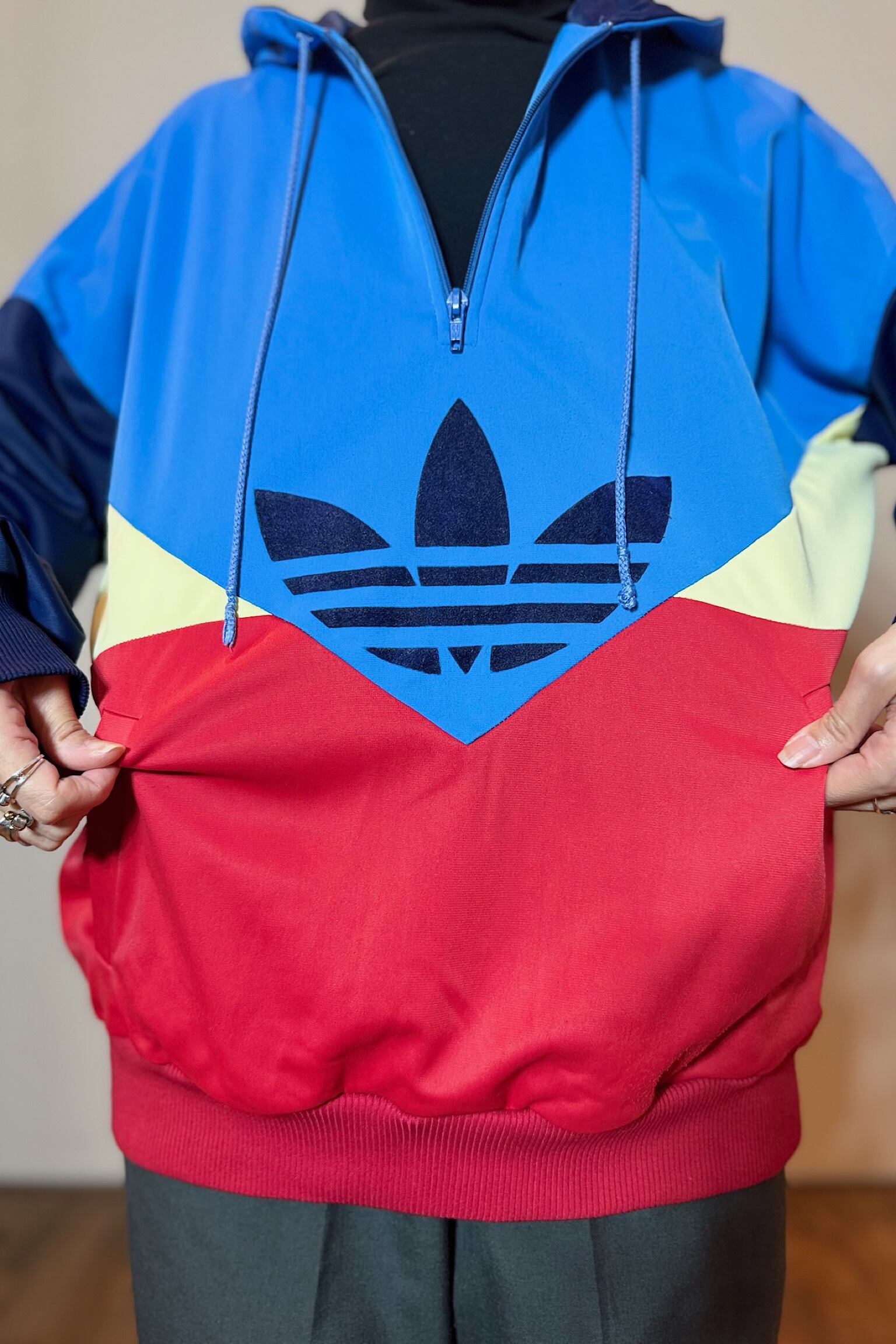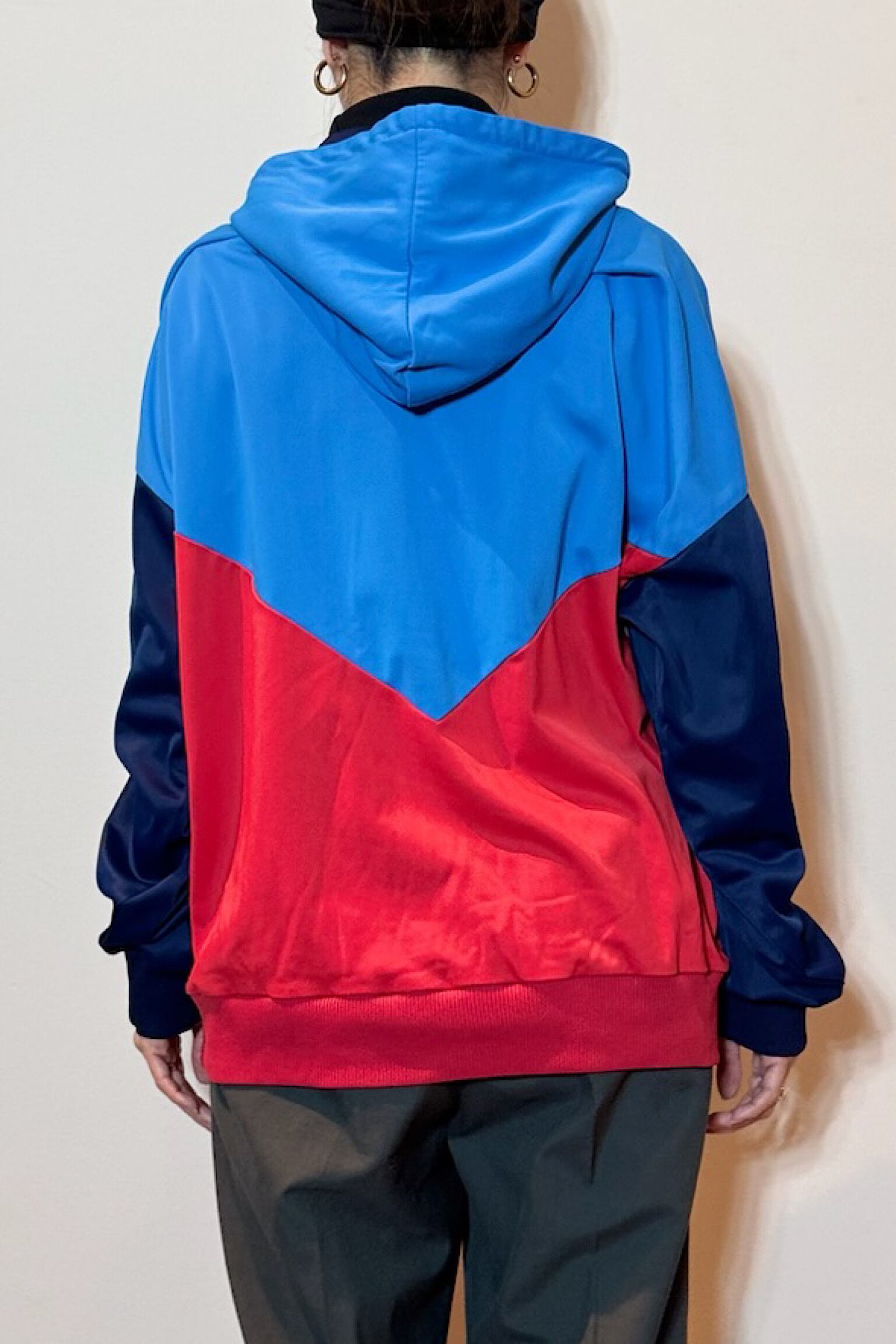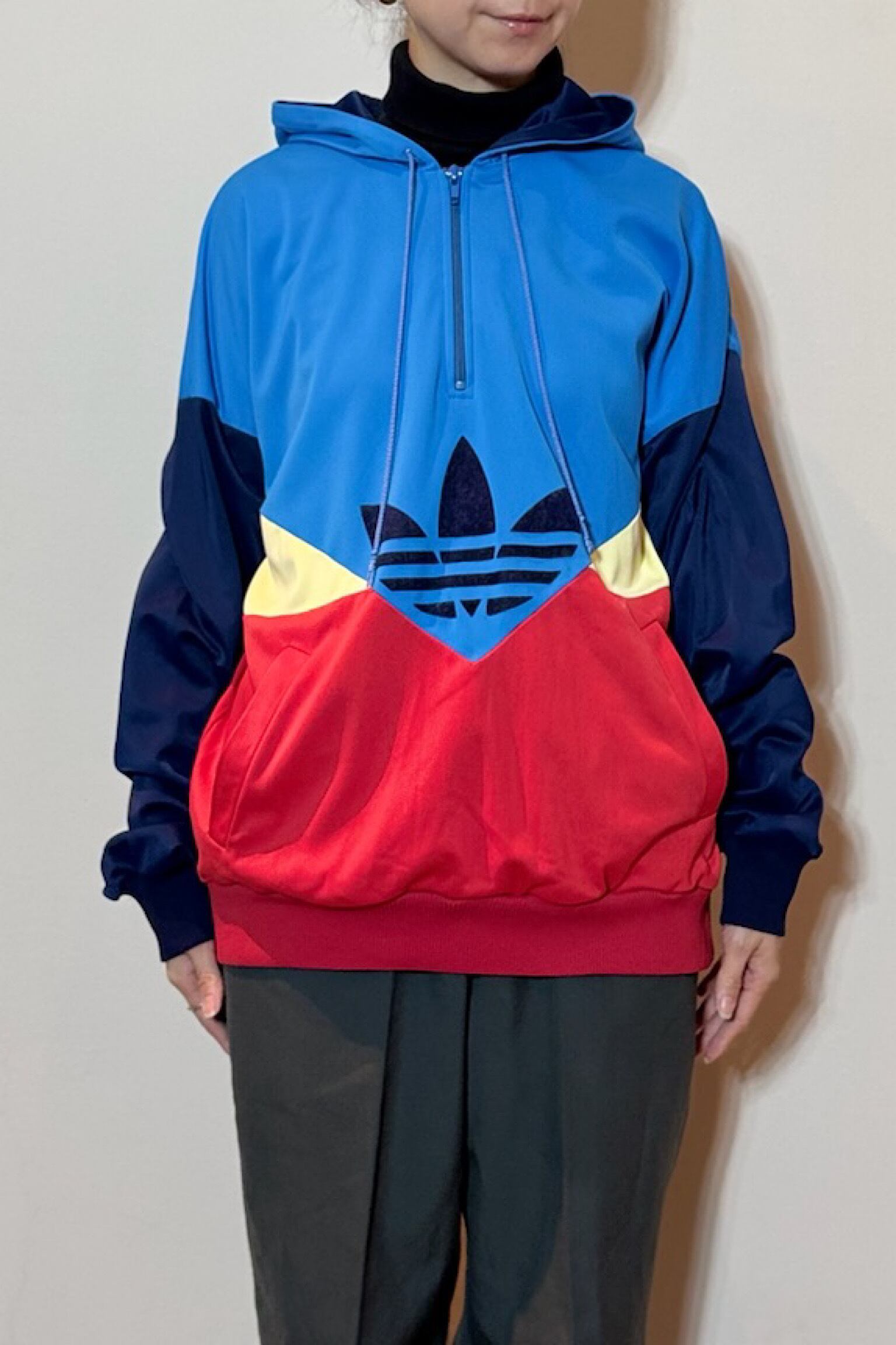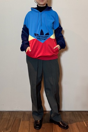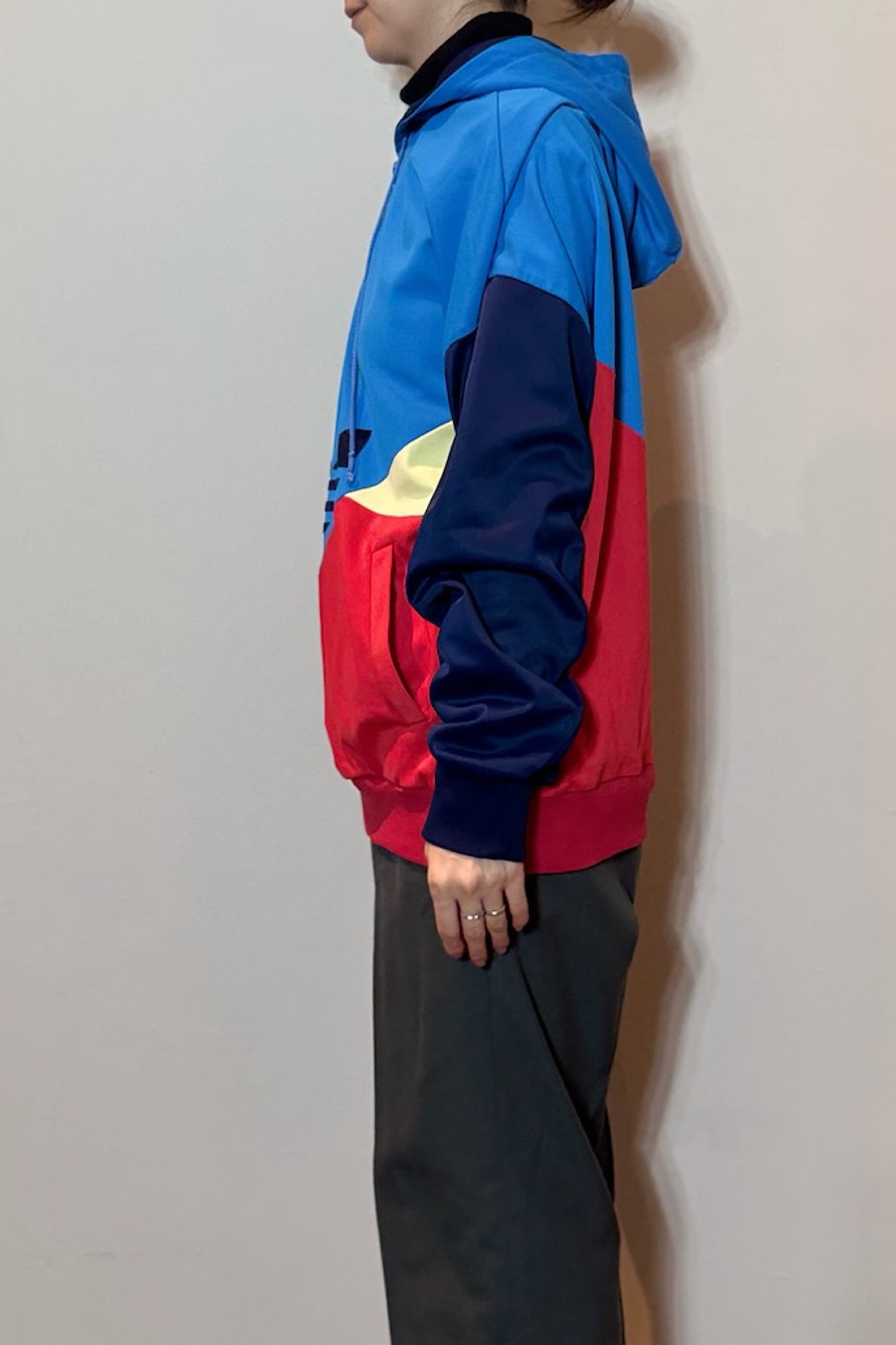 フロントのジップアップスタイルは使い勝手も良く、軽やかなスウェット素材なので秋口や春先の重ね着にもぴったりです。