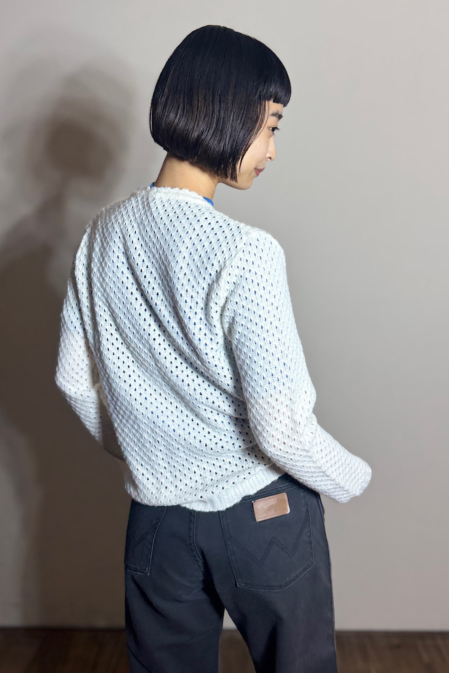 ヨーロッパより届いたオフホワイトカットワークカーディガンは、デザイン性と機能性を兼ね備えた一着です。