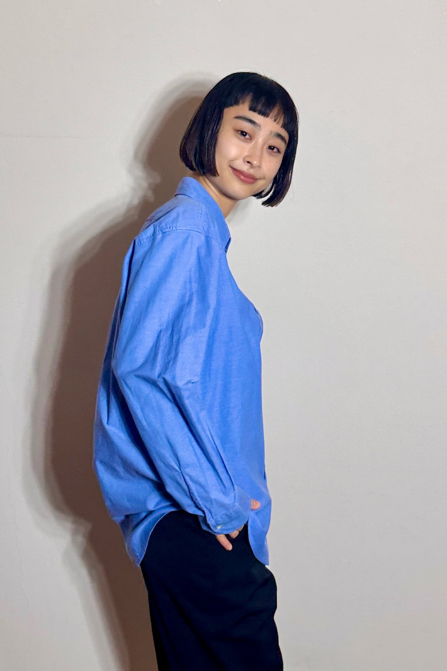 元々メンズのシャツですが、女性がオーバーサイズで着用しても素敵です。