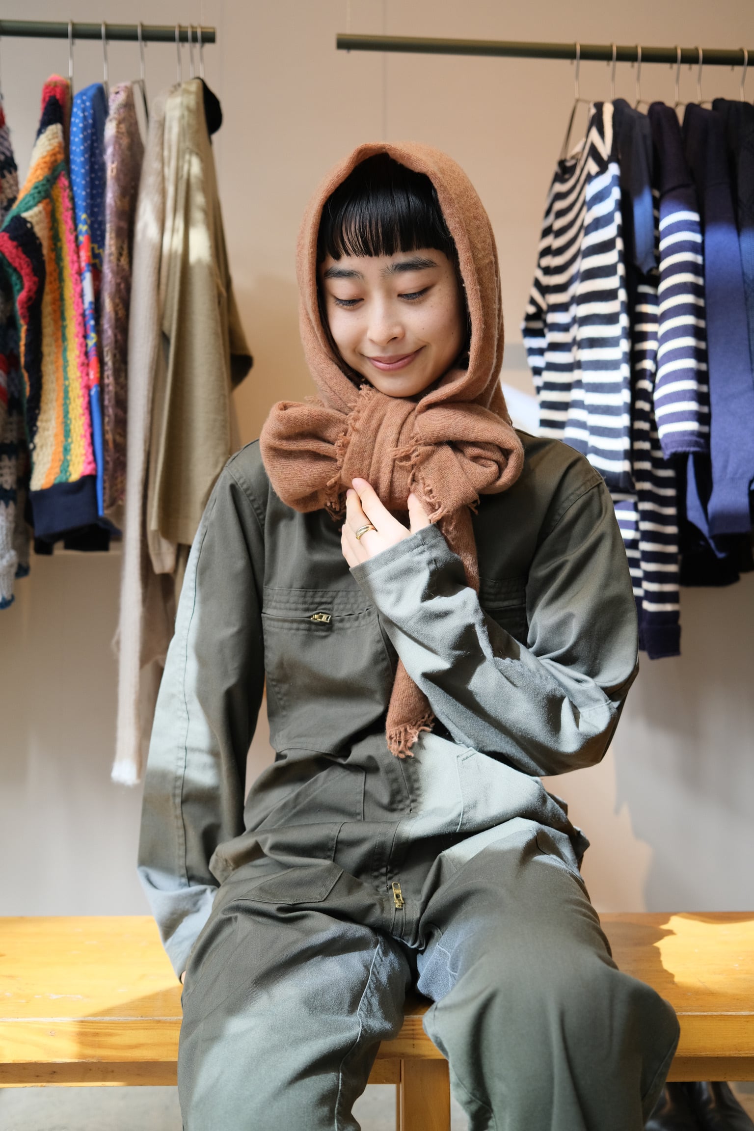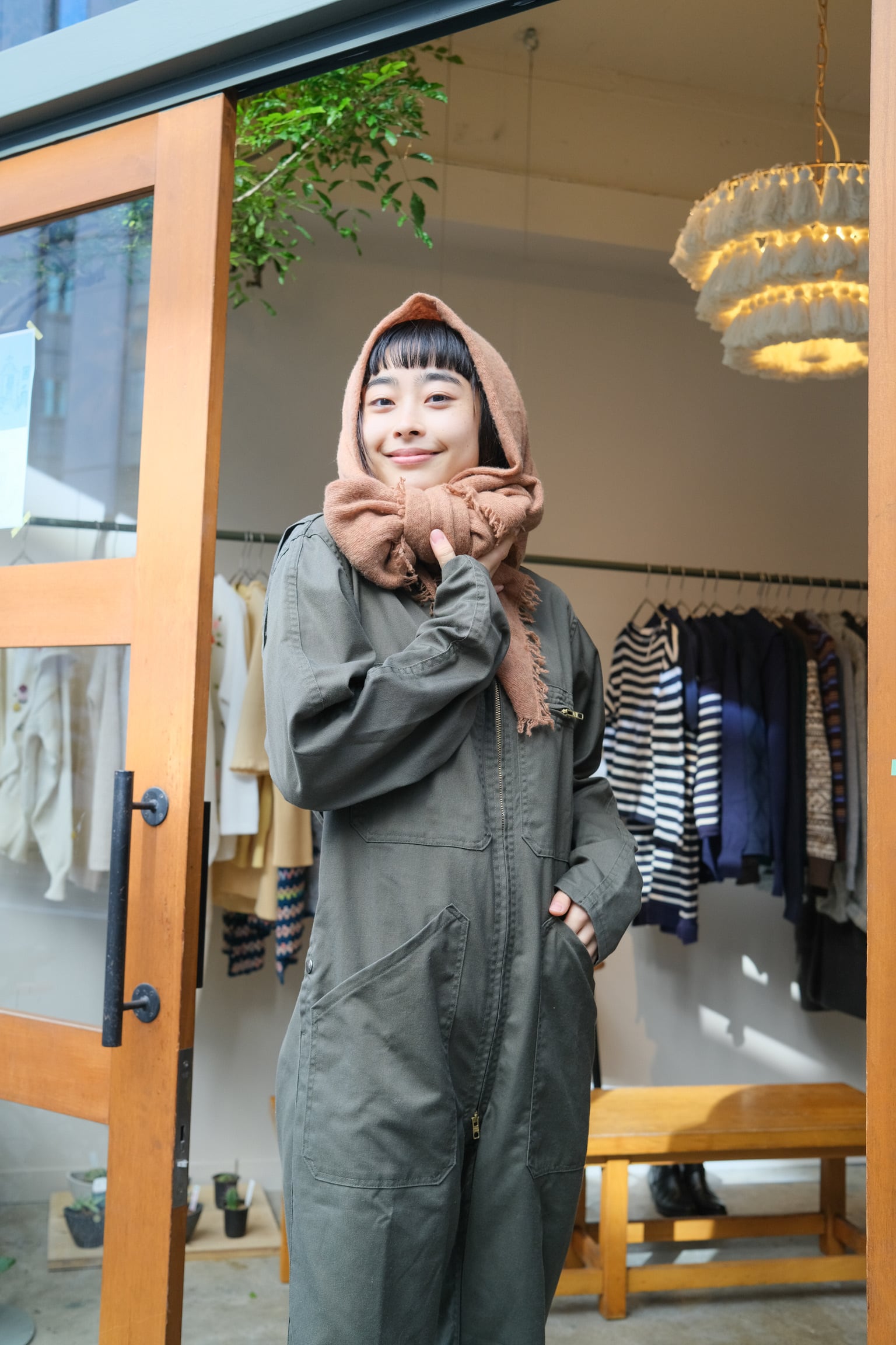 独自の風合いや個体差も魅力で、他にはない特別感をもたらしています。肩にかけたり、ウエストを絞ってシルエットを変えるなど、自分流にアレンジする楽しさもあります。このジャンプスーツとともに、あなたの日々に70年代のヴィンテージエッセンスを取り入れてみてはいかがでしょうか。