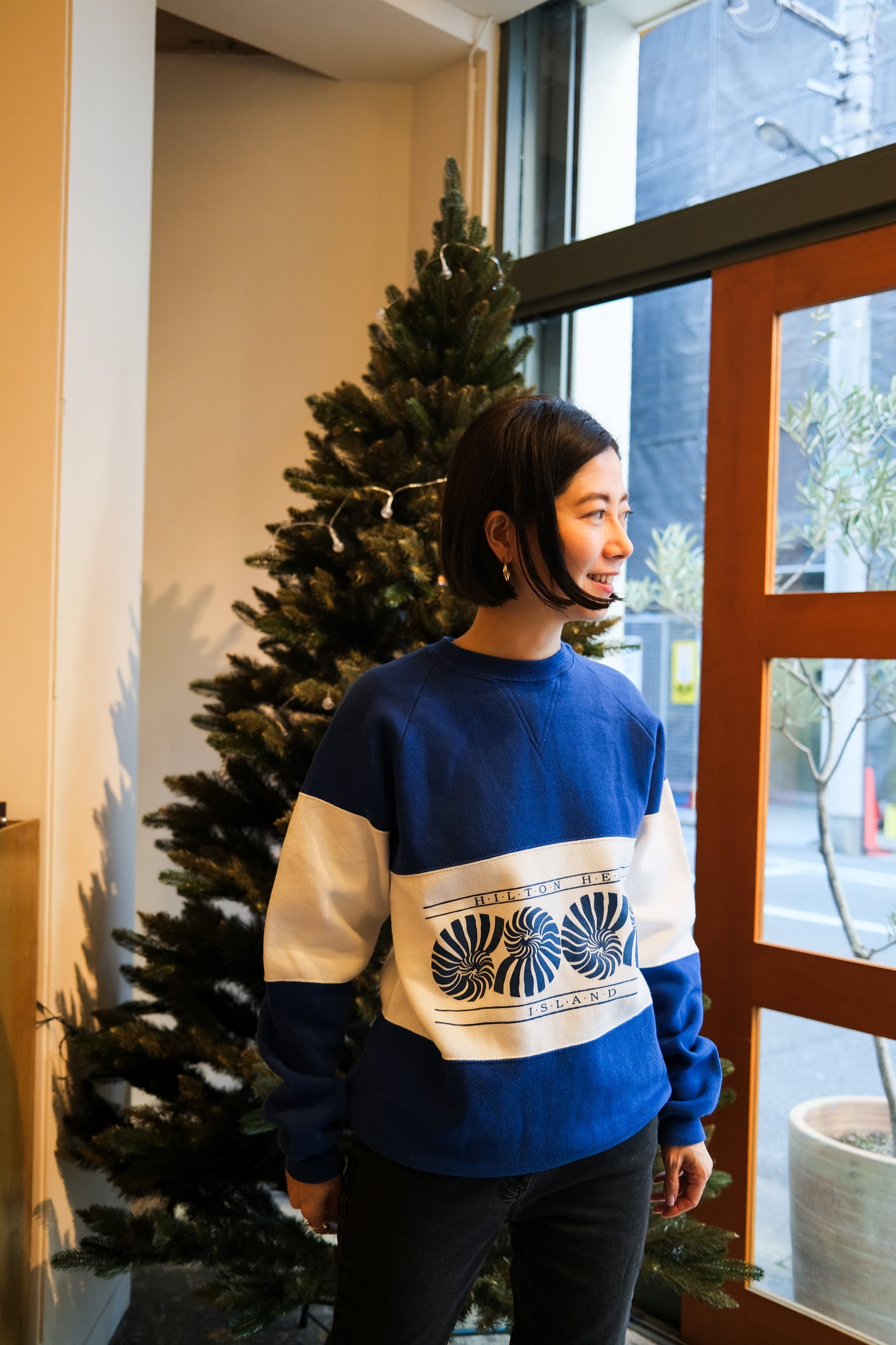 HILTON HEAD ISLANDのブルーホワイトスウェット。
