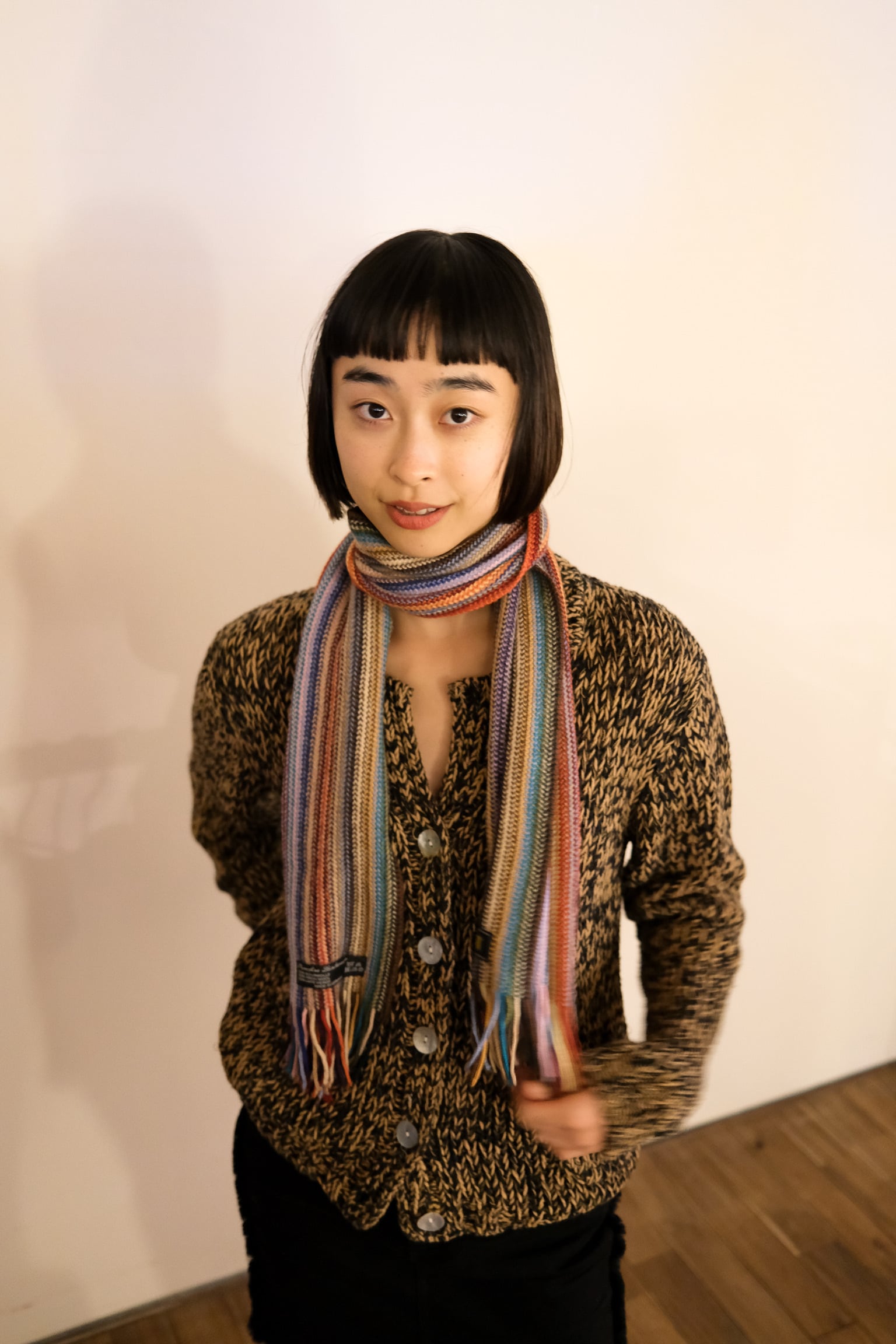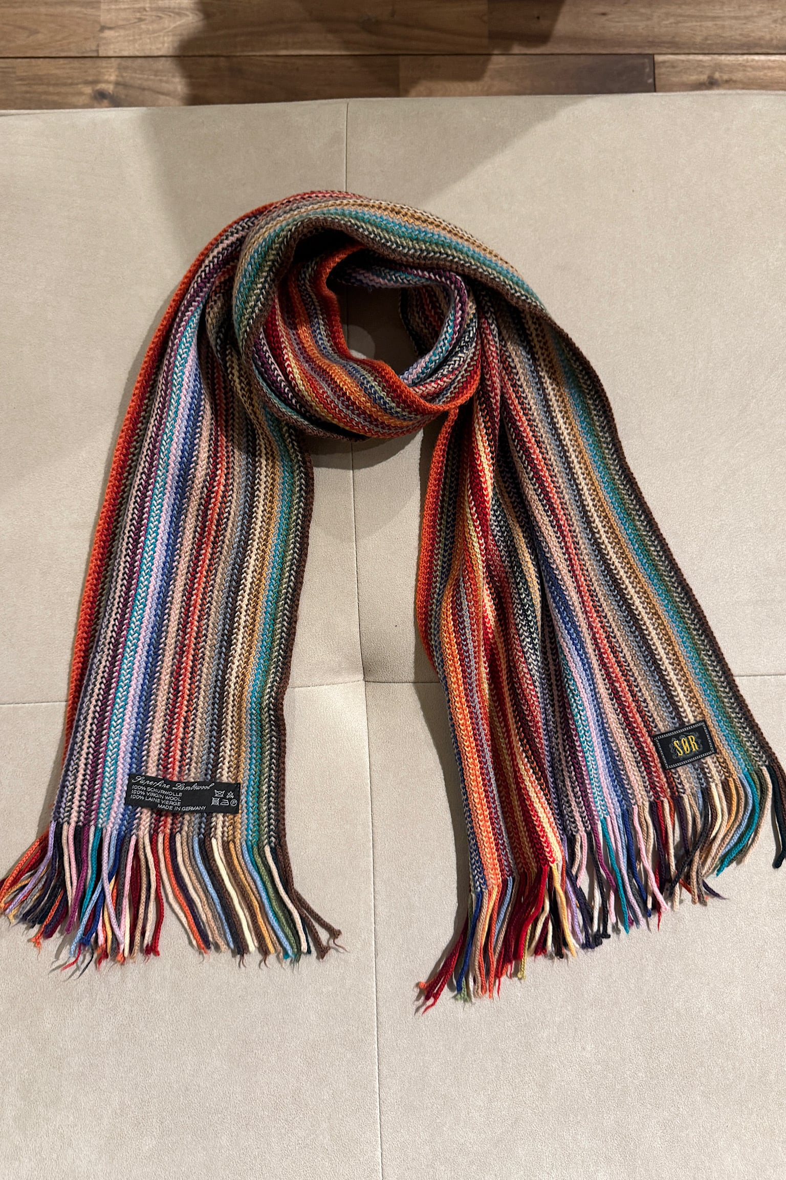 ヴァージンウールの高品質で温かみのある素材で、カラフルなデザインが特徴のマフラーです。 【size】25cm×150cm 【素材】virgin wool 【原産国】Germany