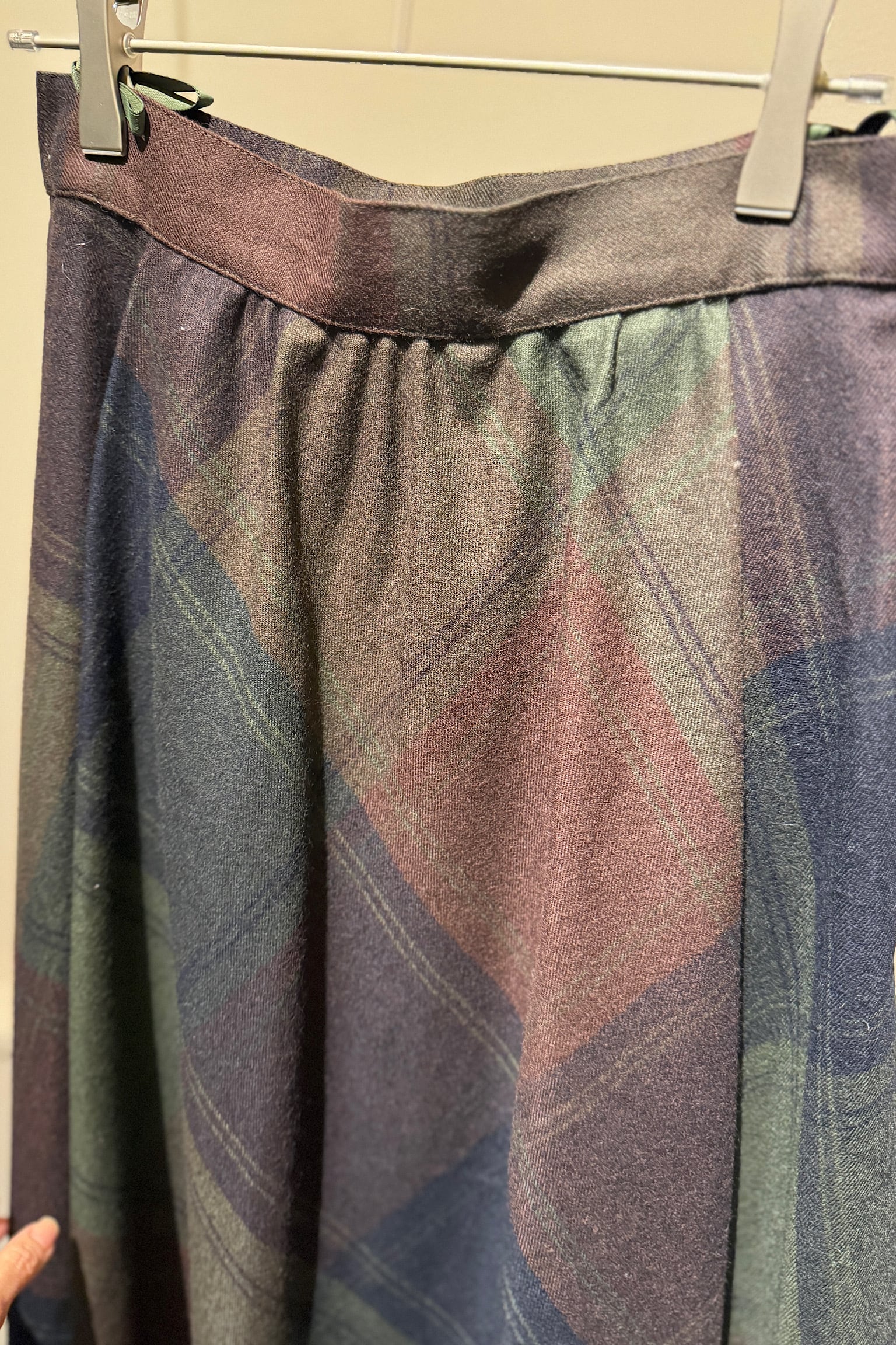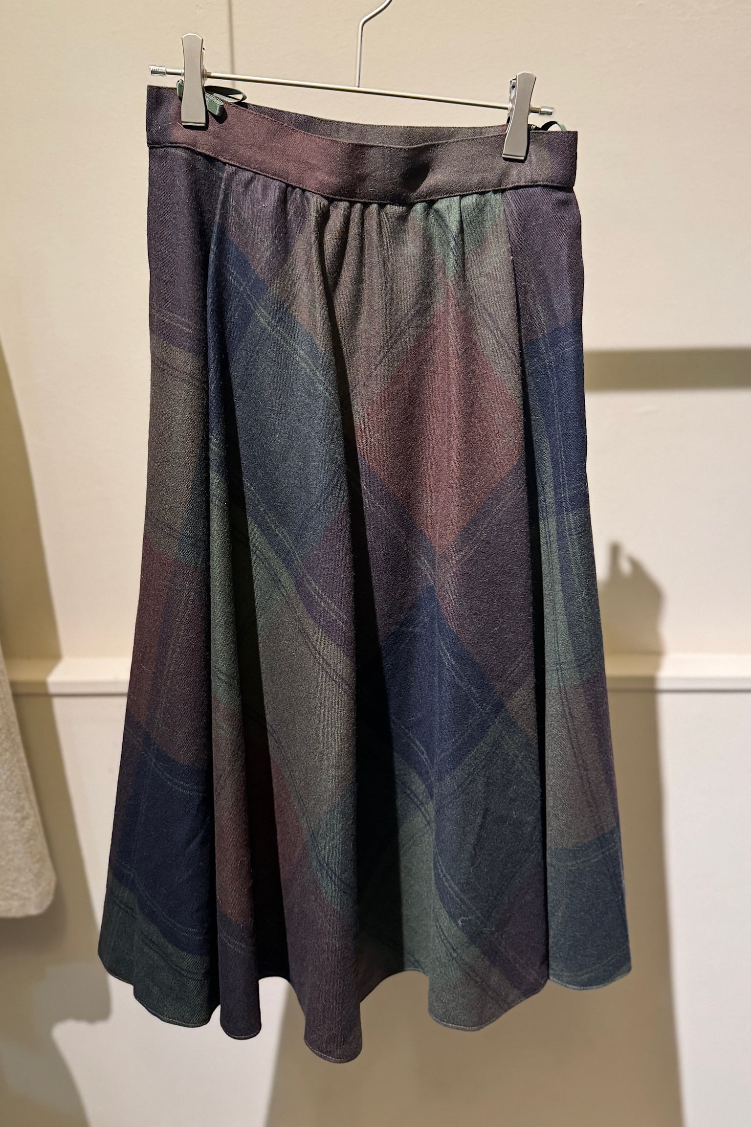 西ドイツ製の80年代ヴィンテージ、ウールチェックスカートが入荷しました。柔らかなウール素材は肌触り良く、秋冬のコーディネートにぴったりです。落ち着いたチェック柄が特徴で、大人っぽさを演出しつつも温かみを感じさせます。