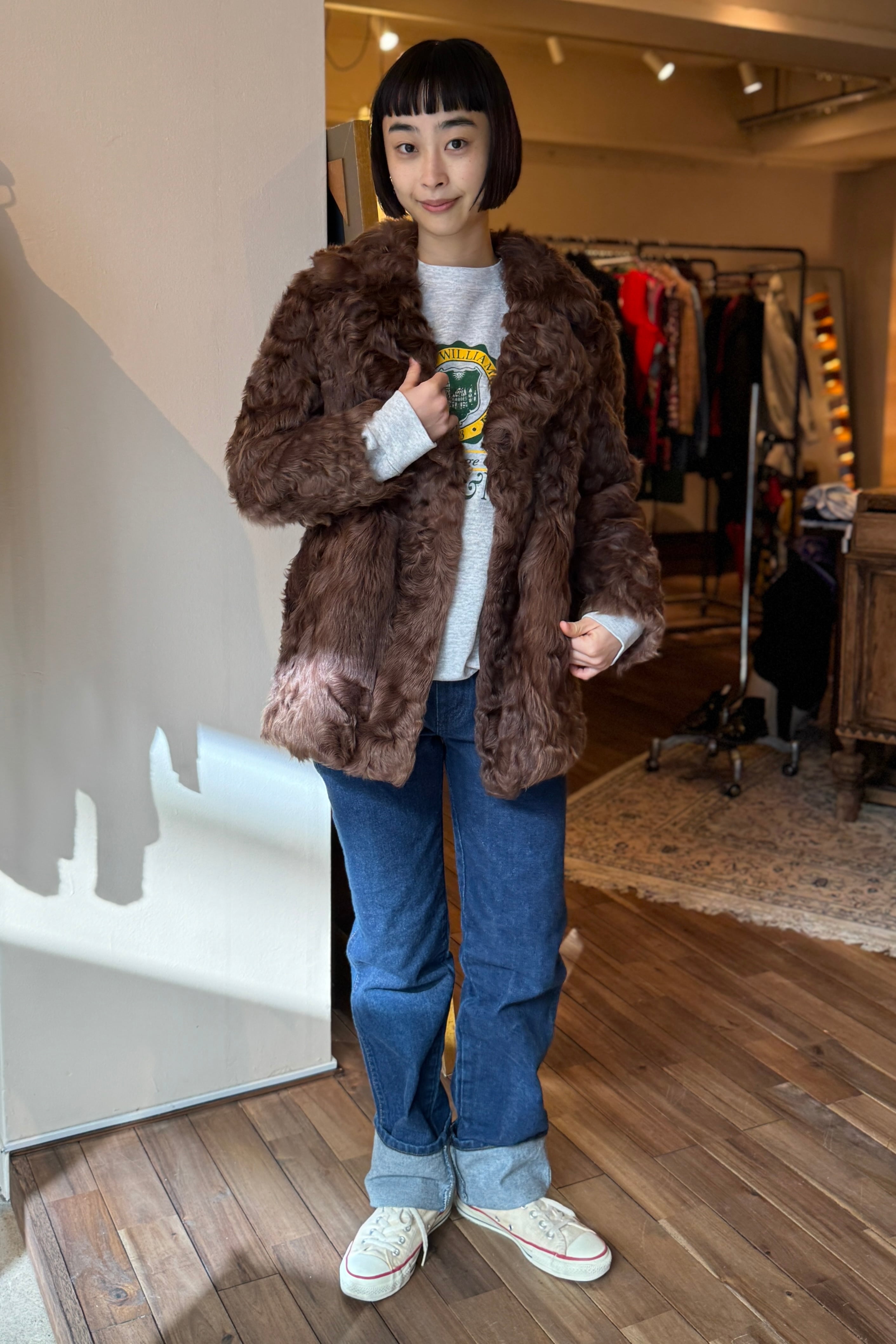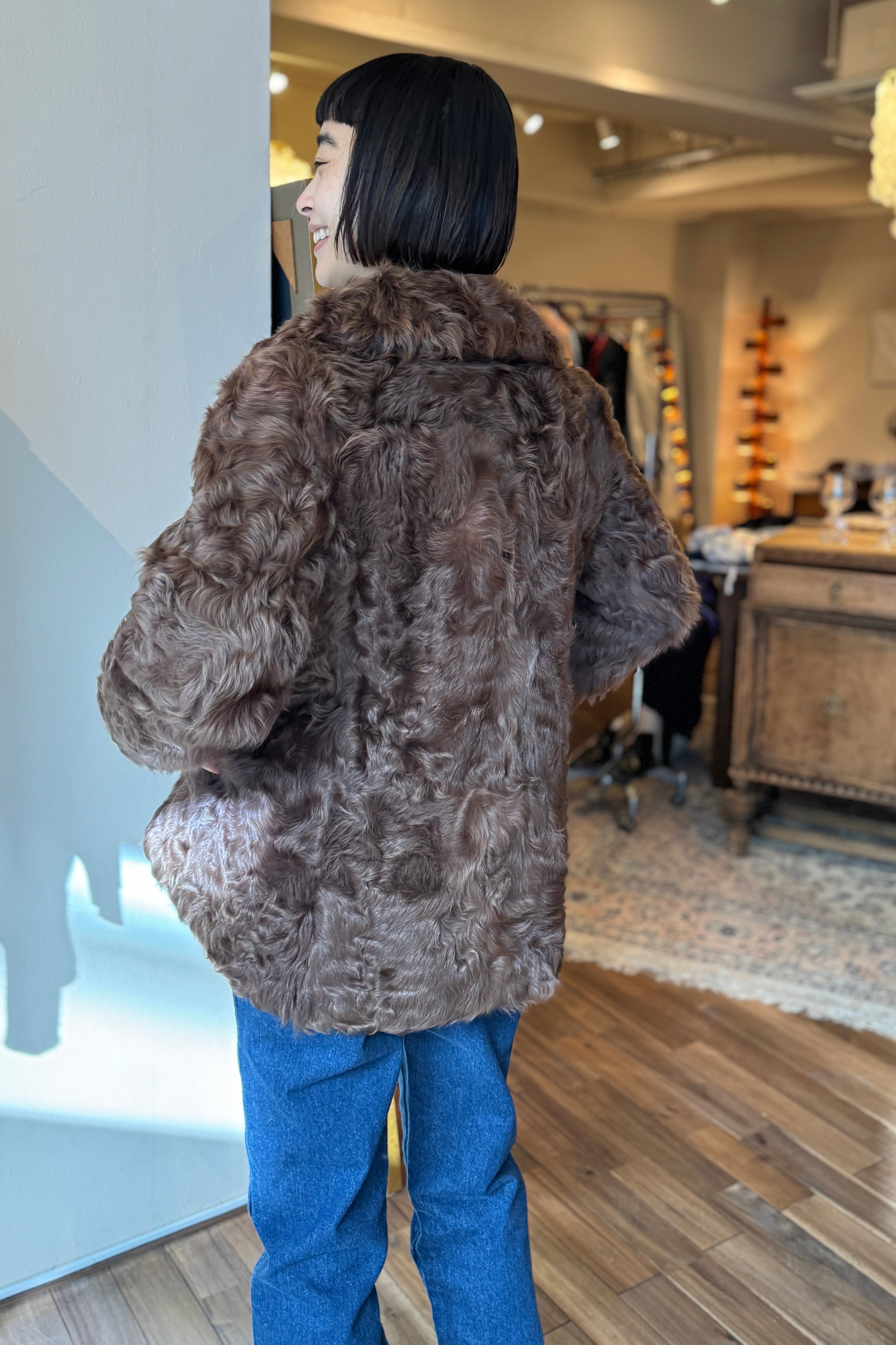 ラムファー ブラウンコートは、暖かみのあるブラウンカラーと独特のラムファー素材が魅力です。