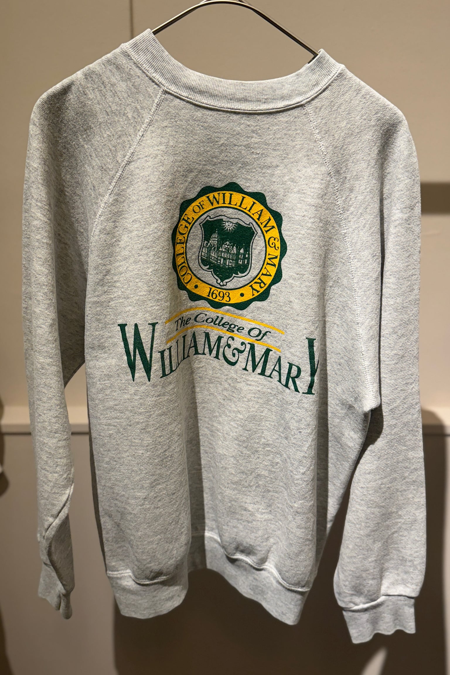 COLLEGE OF WILLIAM&MARYのグレースウェットは、90年代のヴィンテージスタイルを感じる逸品です。