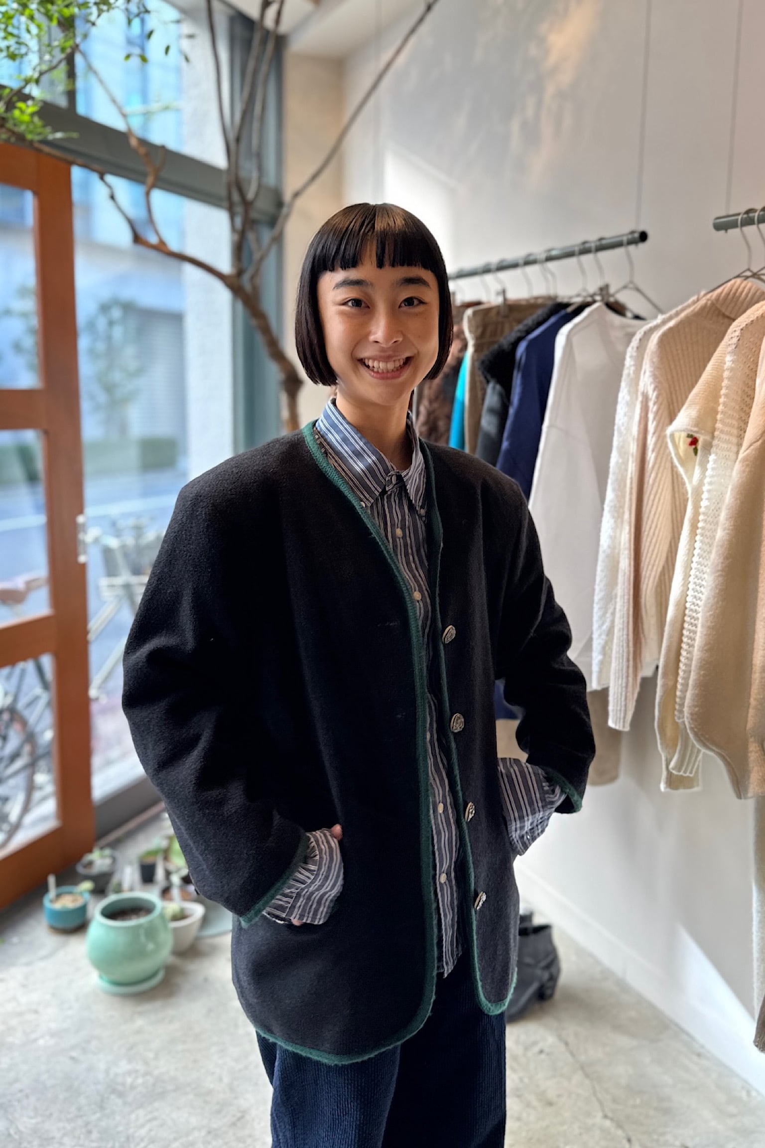 深みのあるダークグレーのカラーリングとクラシックなデザインは、シンプルなカットソーやシャツにサッと羽織るだけで、スタイルを格上げしてくれます。