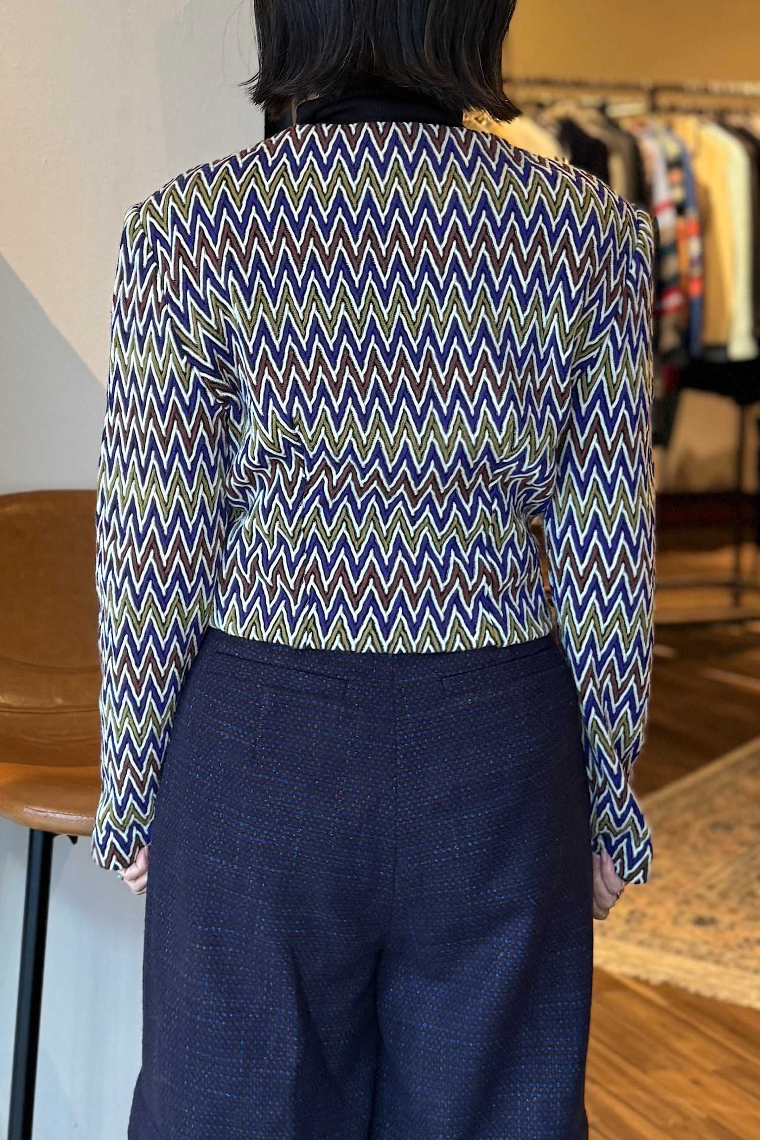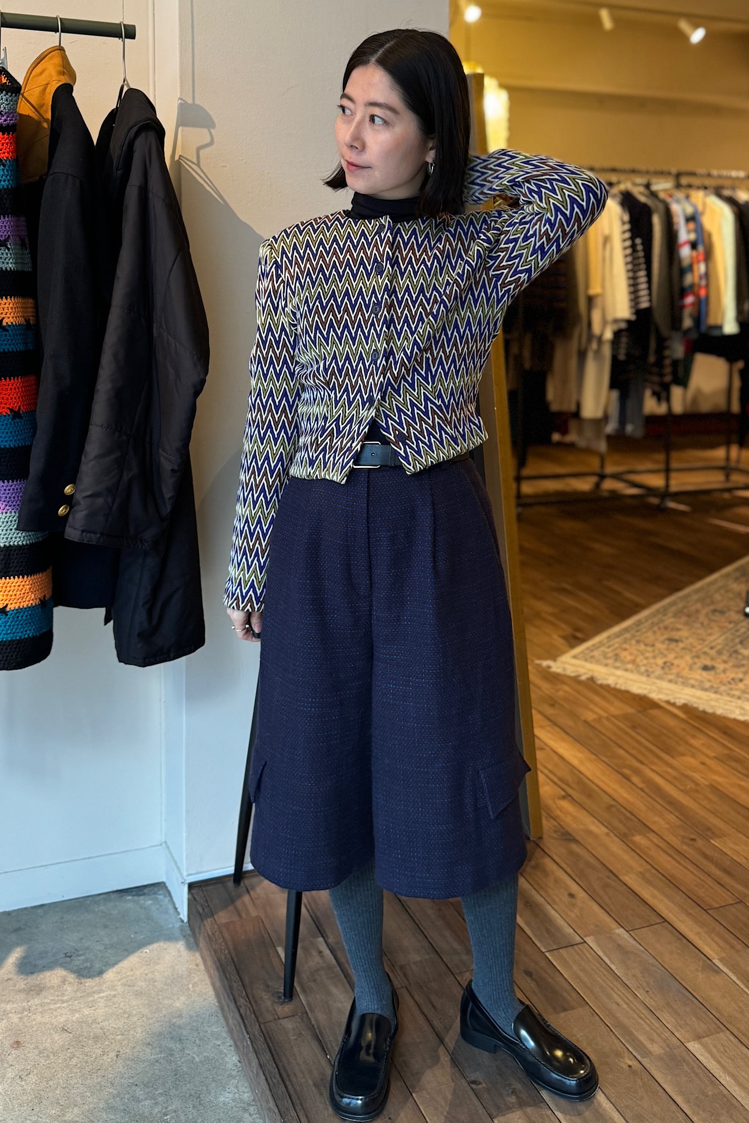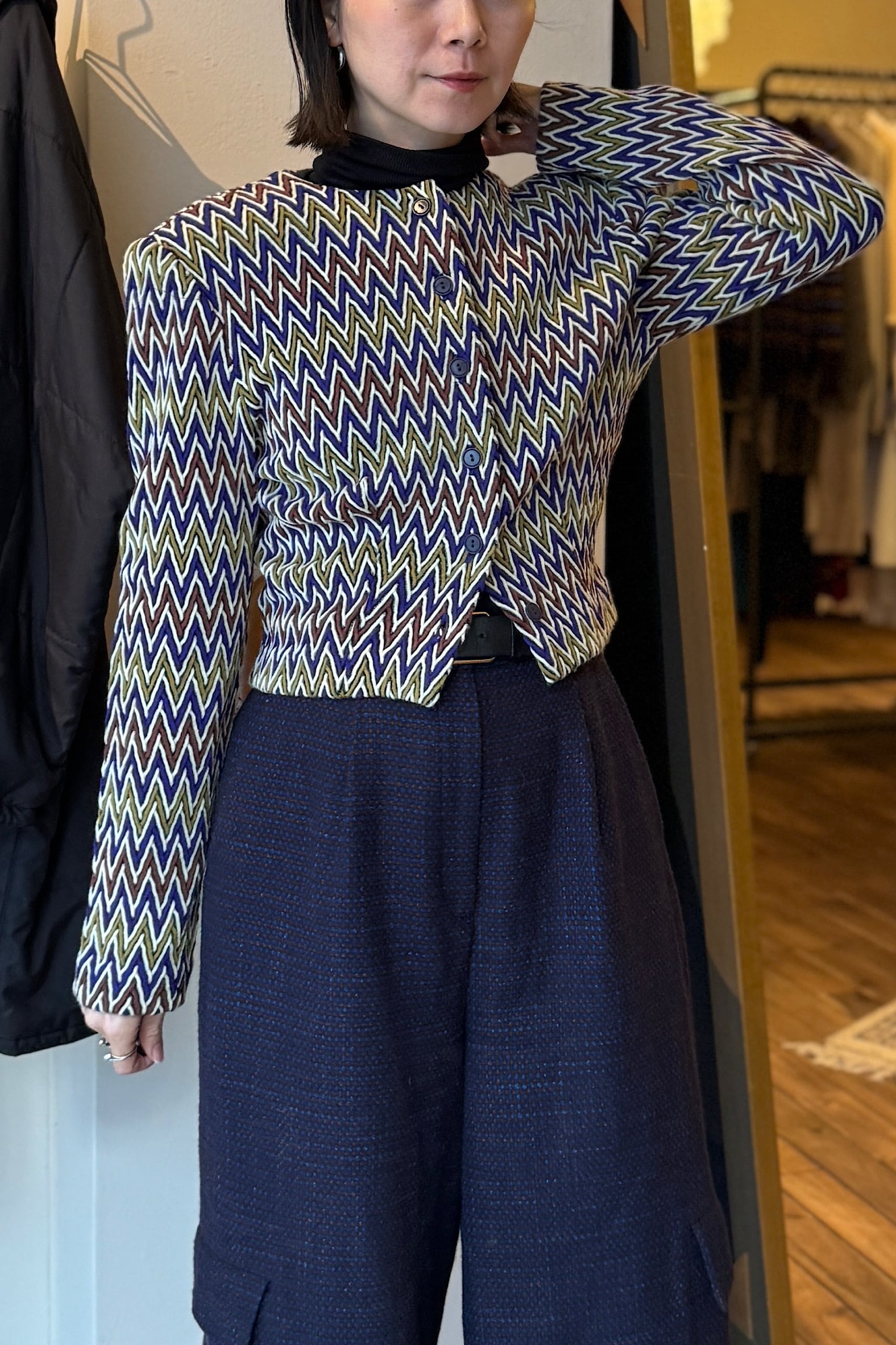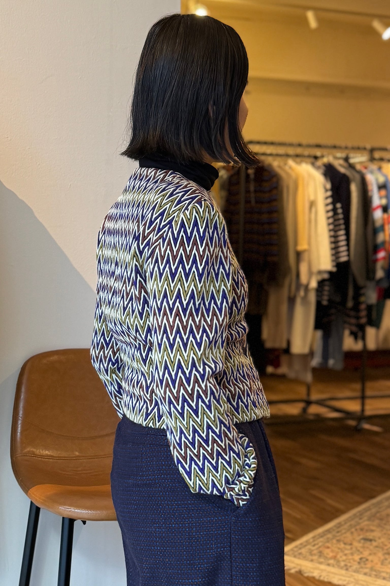 デニムやチノパンとの相性が良く、カジュアルから少しフォーマルなシーンまで幅広く活躍します。また、中にタートルネックやシャツを合わせることで、季節感溢れるコーディネートが可能です。MISSONIならではの芸術的なデザインで、自分らしいファッションを楽しんでみてはいかがでしょうか。