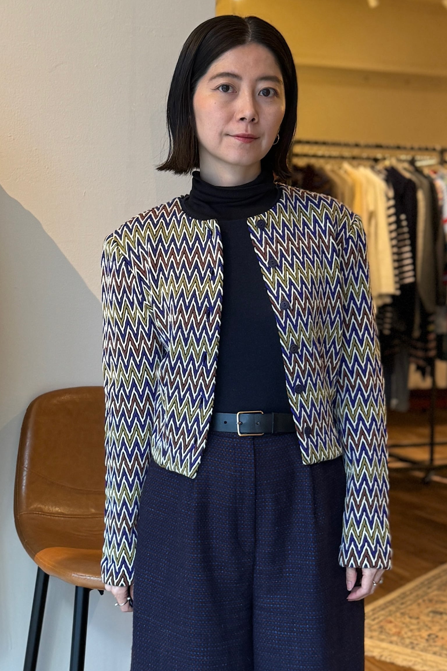 鮮やかな色彩と独特のパターンが魅力的なMISSONIのカラフルウールジャケットは、秋冬シーズンにぴったりのアイテムです。柔らかなウール素材が体を包み込み、温かさをキープしながらも軽やかな着心地を実現しています。このジャケットは、一点ごとに異なる風合いが楽しめるため、他にはない個性的なスタイルを演出することができます。