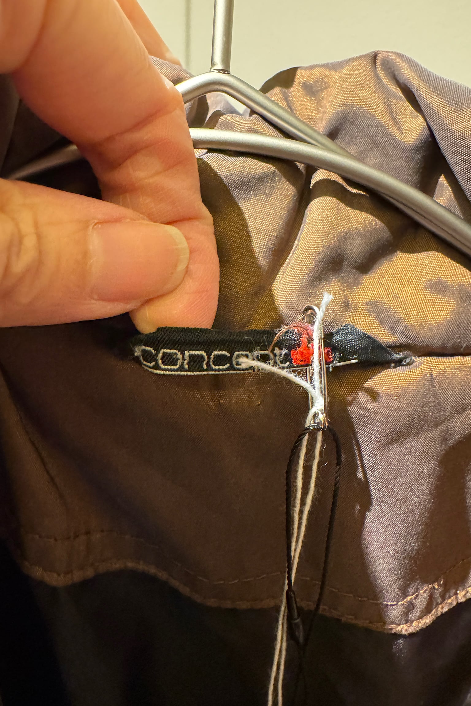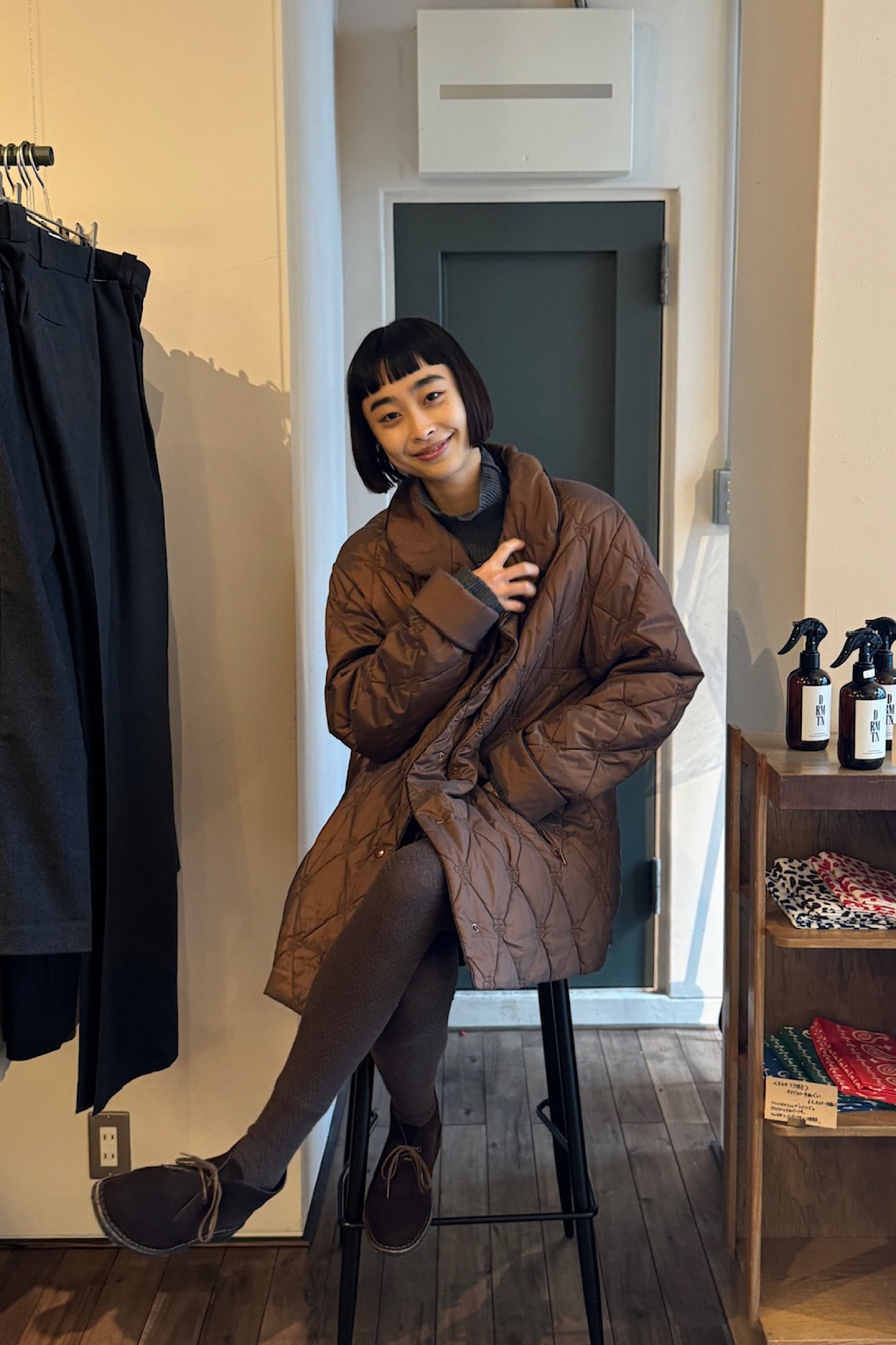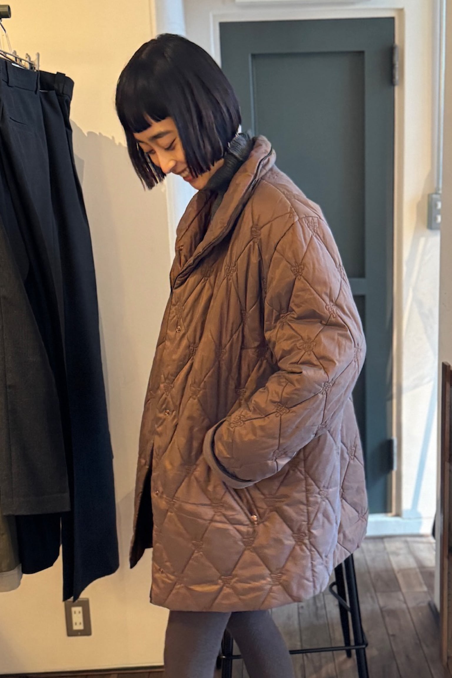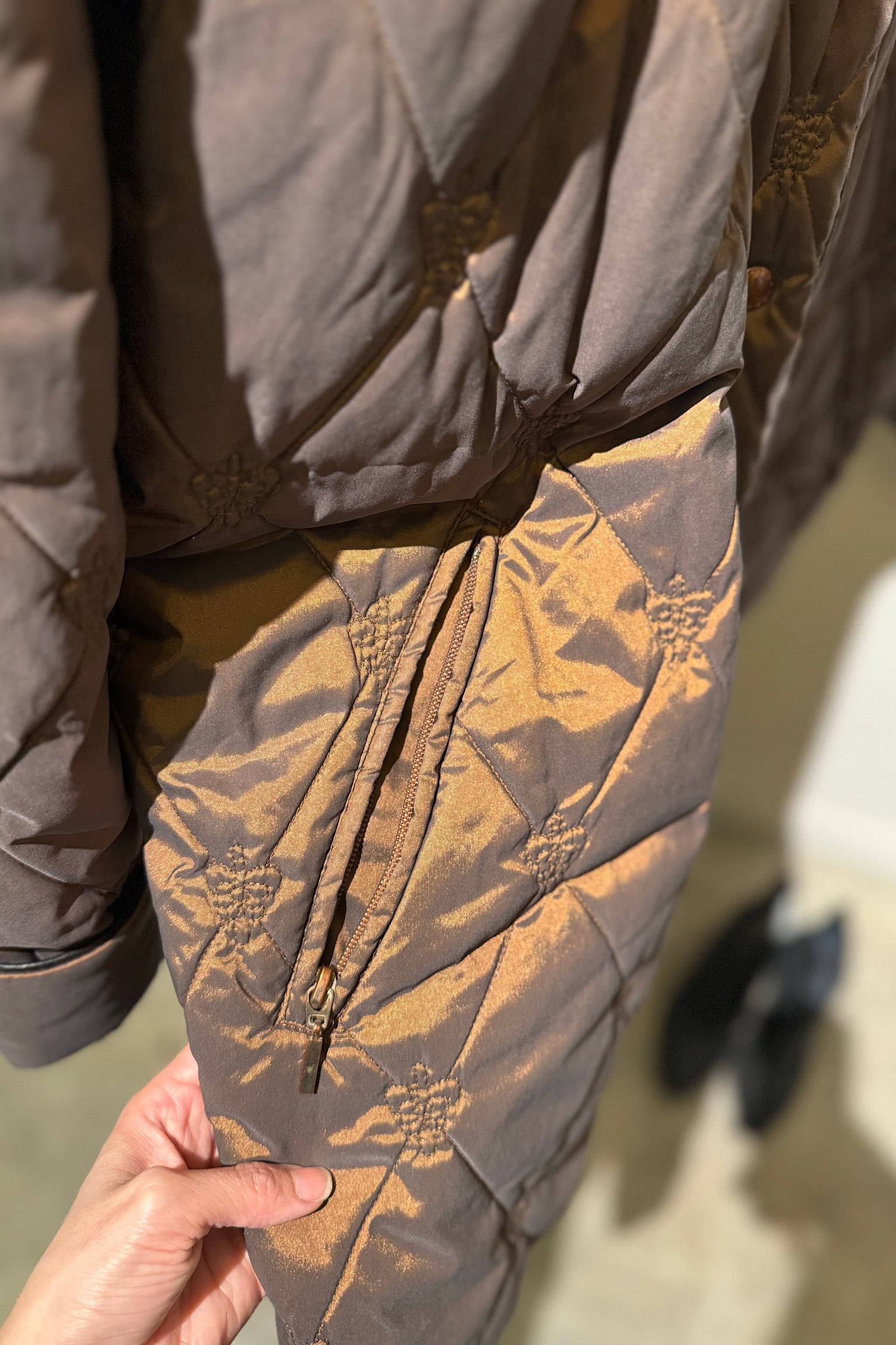 落ち着いたブラウン色のCONCEPT UK ブラウンキルティングコート。