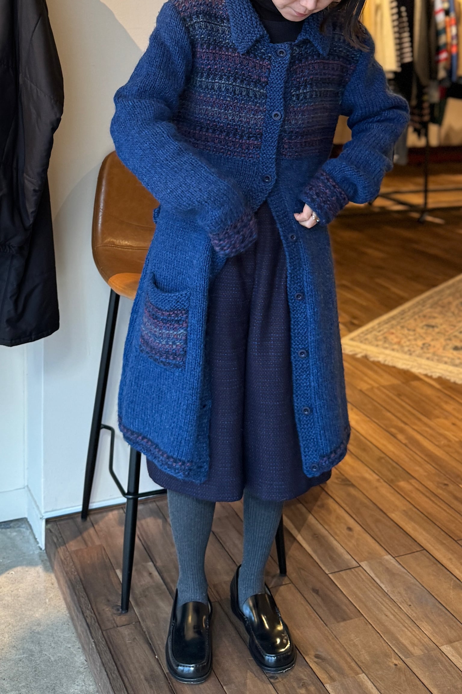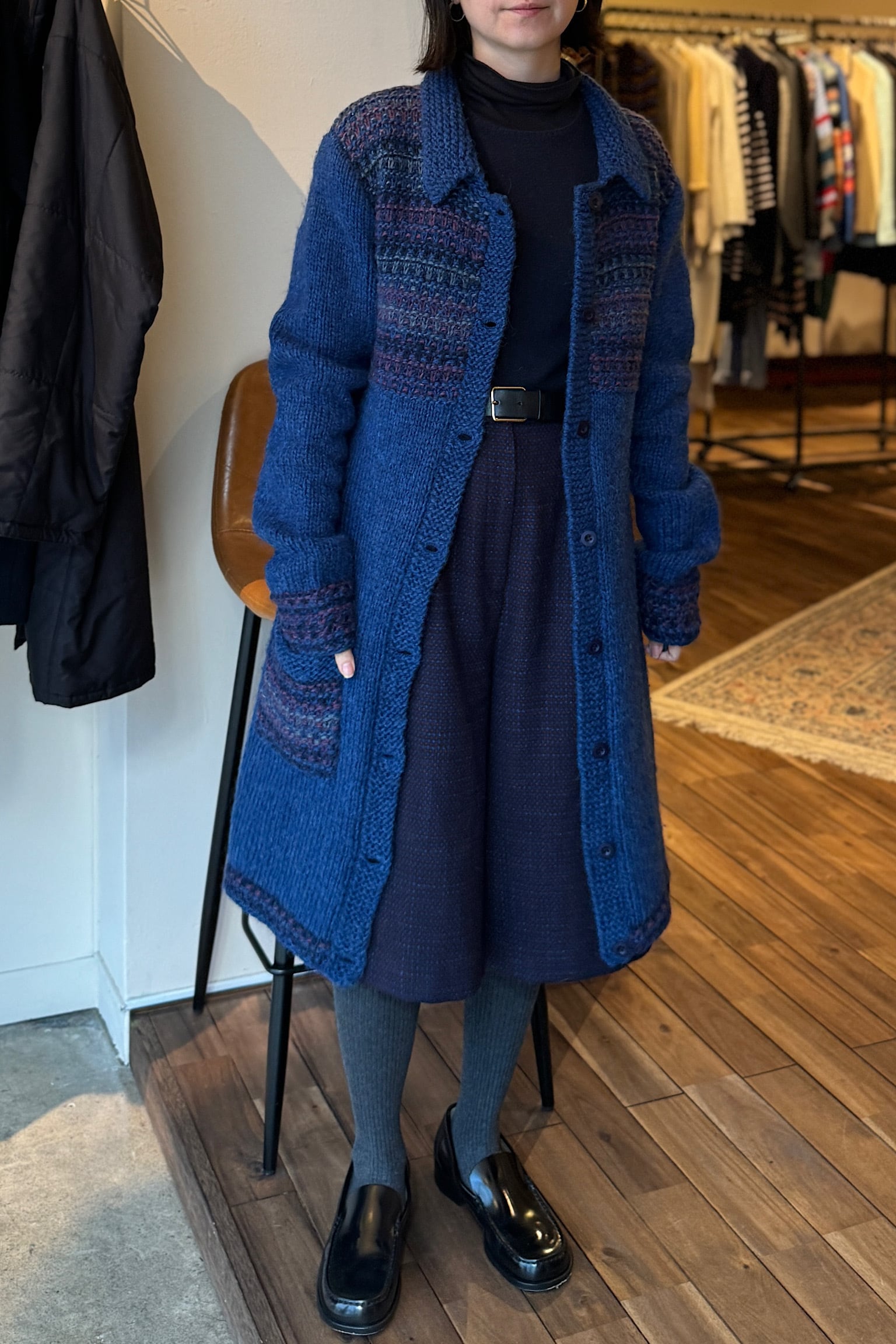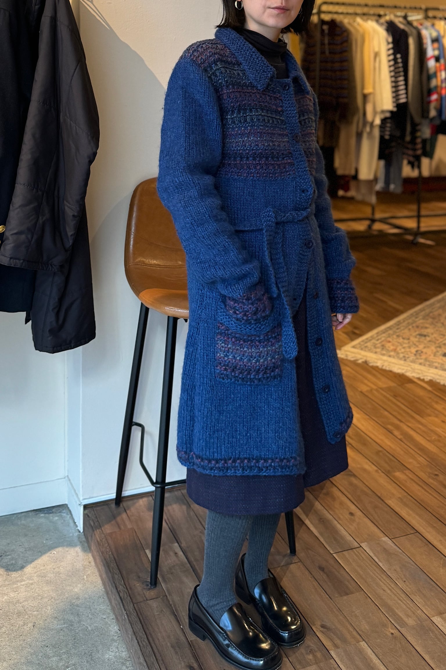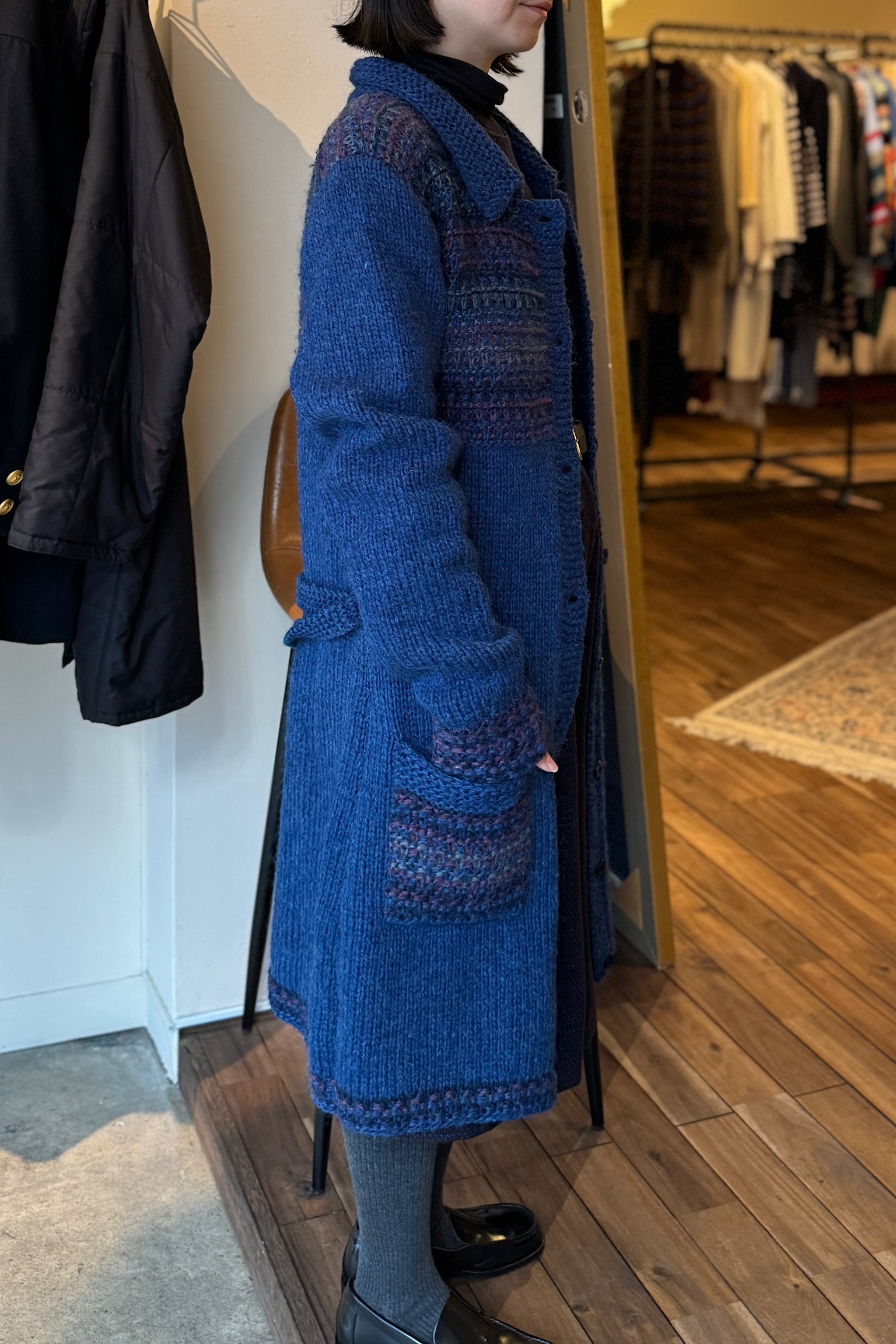 ウールネイビーハンドメイドニットコート