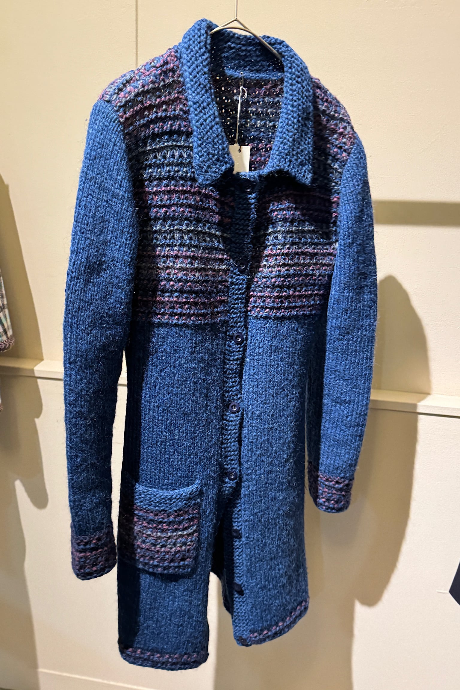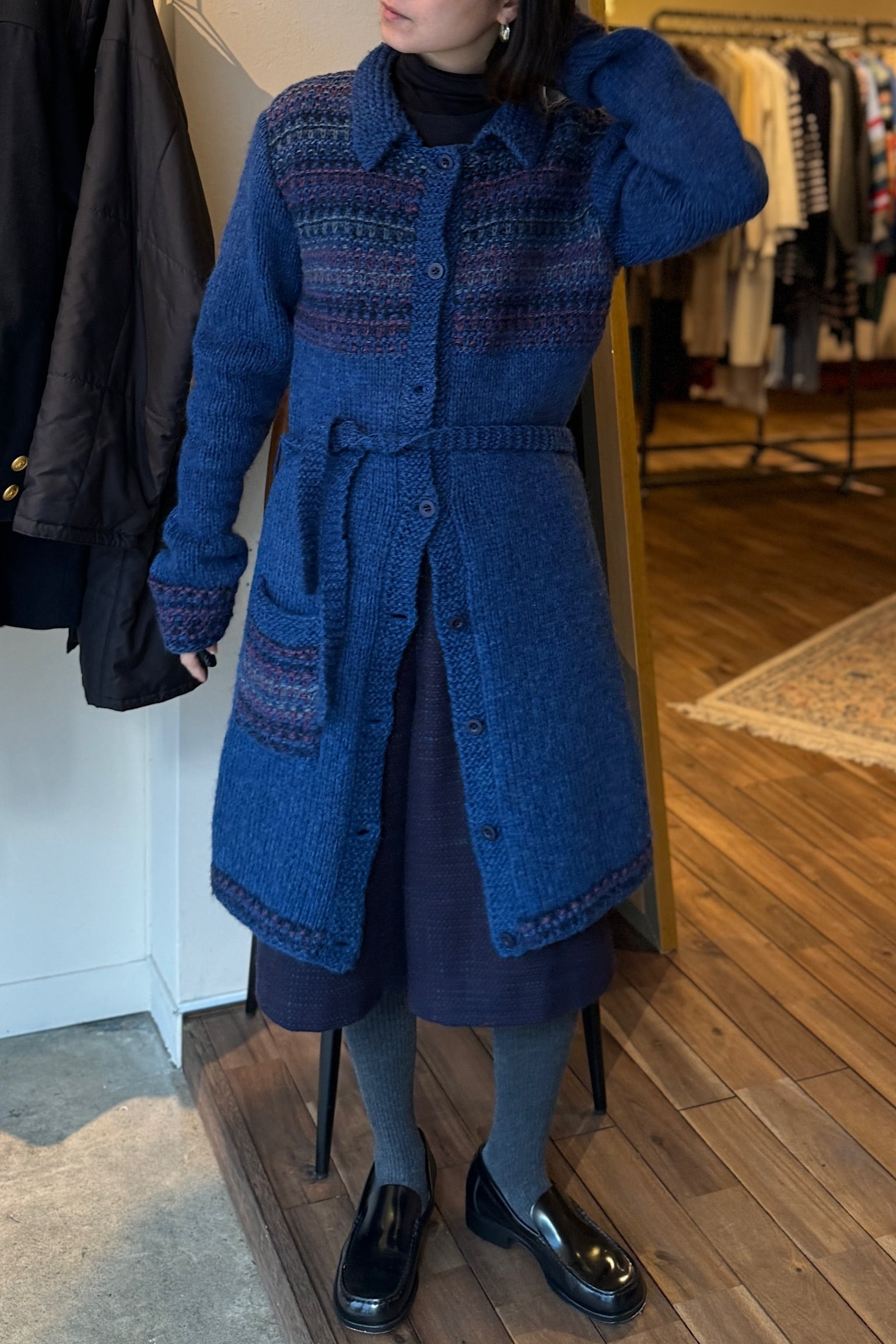 ヨーロッパより到着した肌触りの良いウールを使用したハンドメイドニットコート。