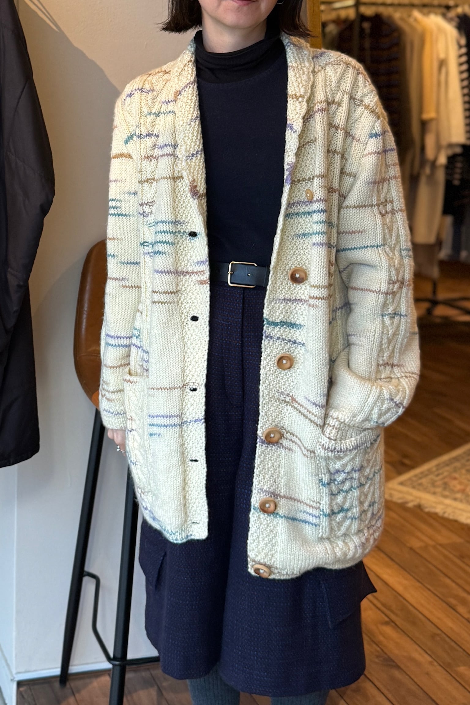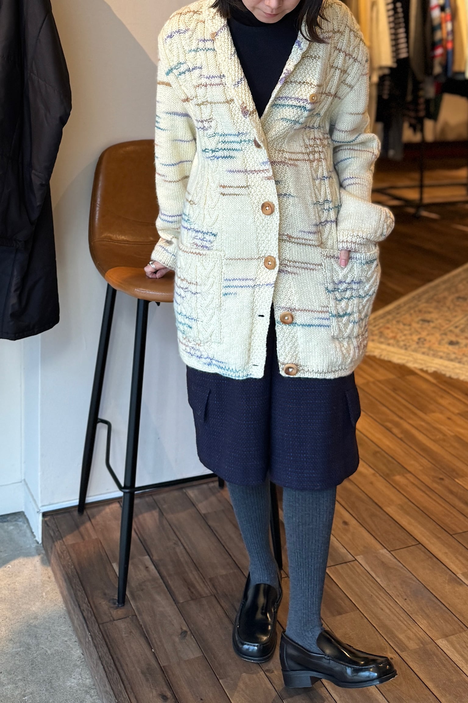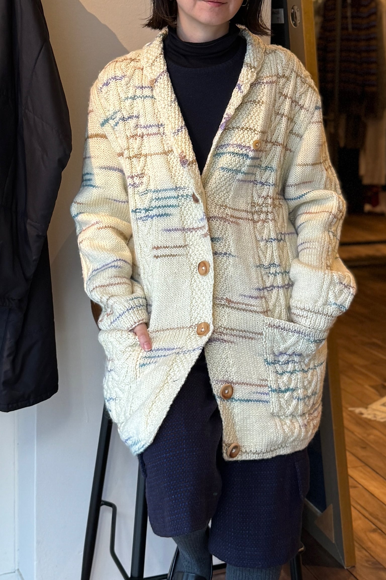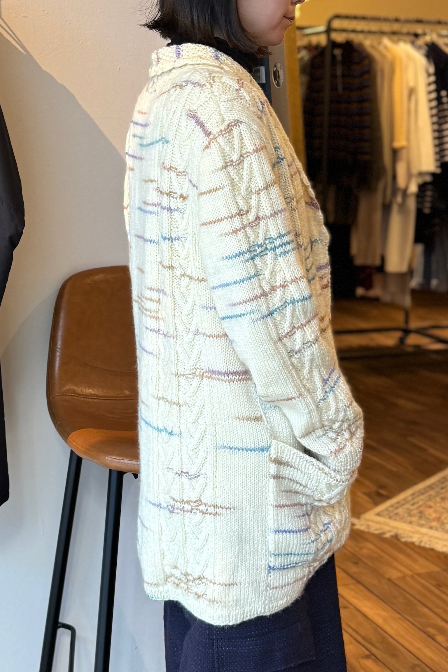 ヨーロッパより到着したオフホワイトウールニットジャケット。