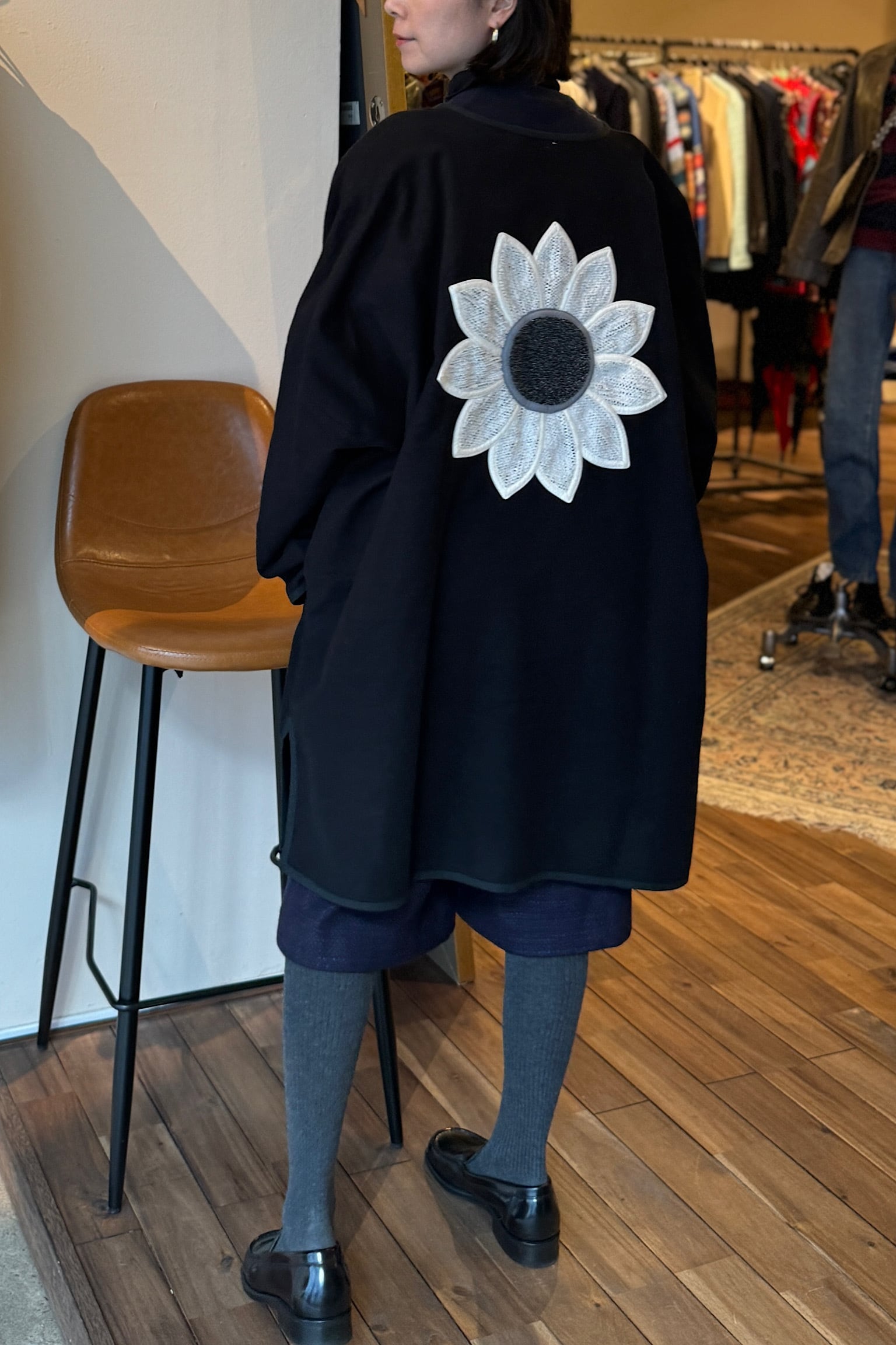 UNCA FASHIONのフラワーアップリケジャケット。