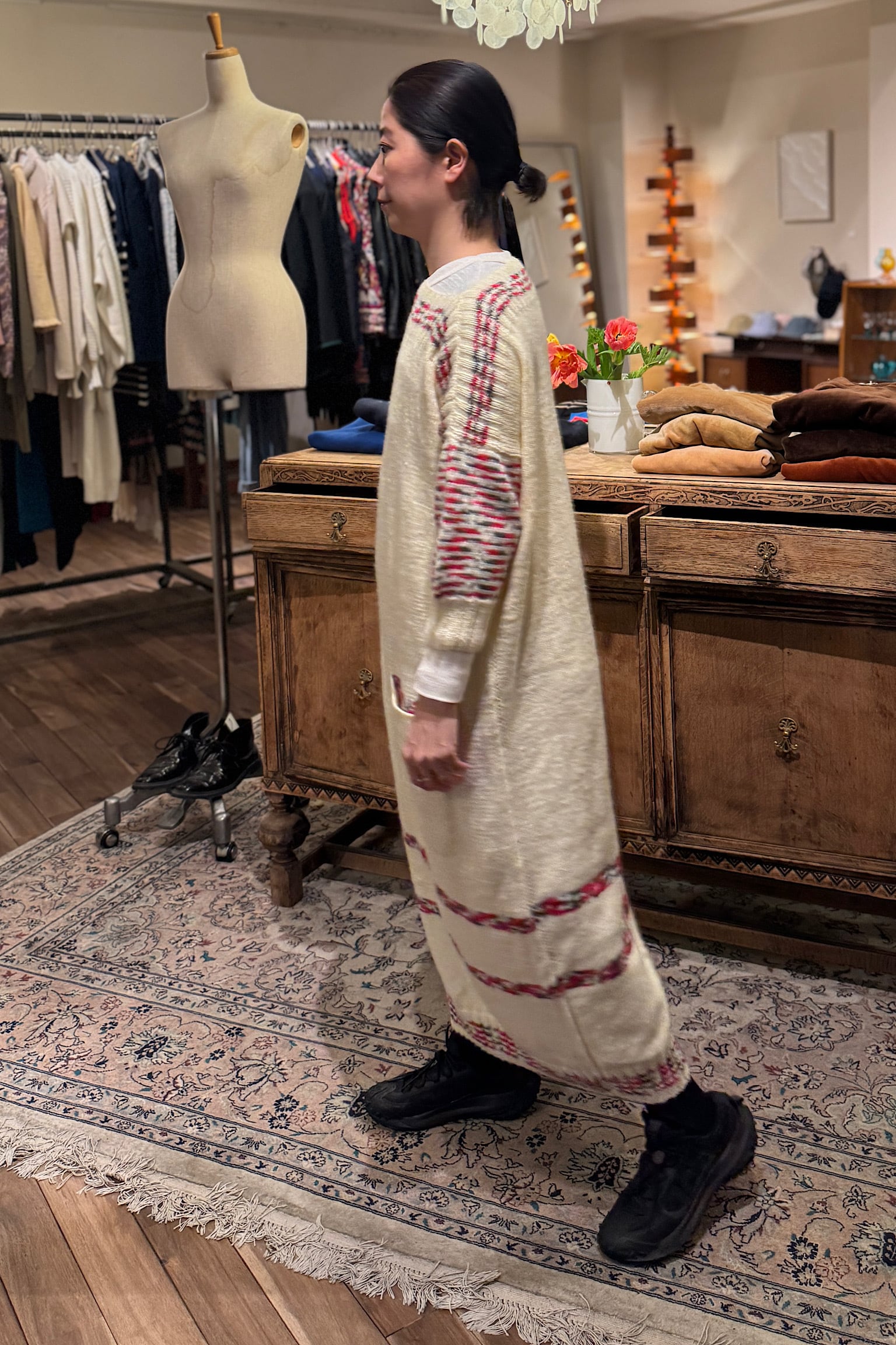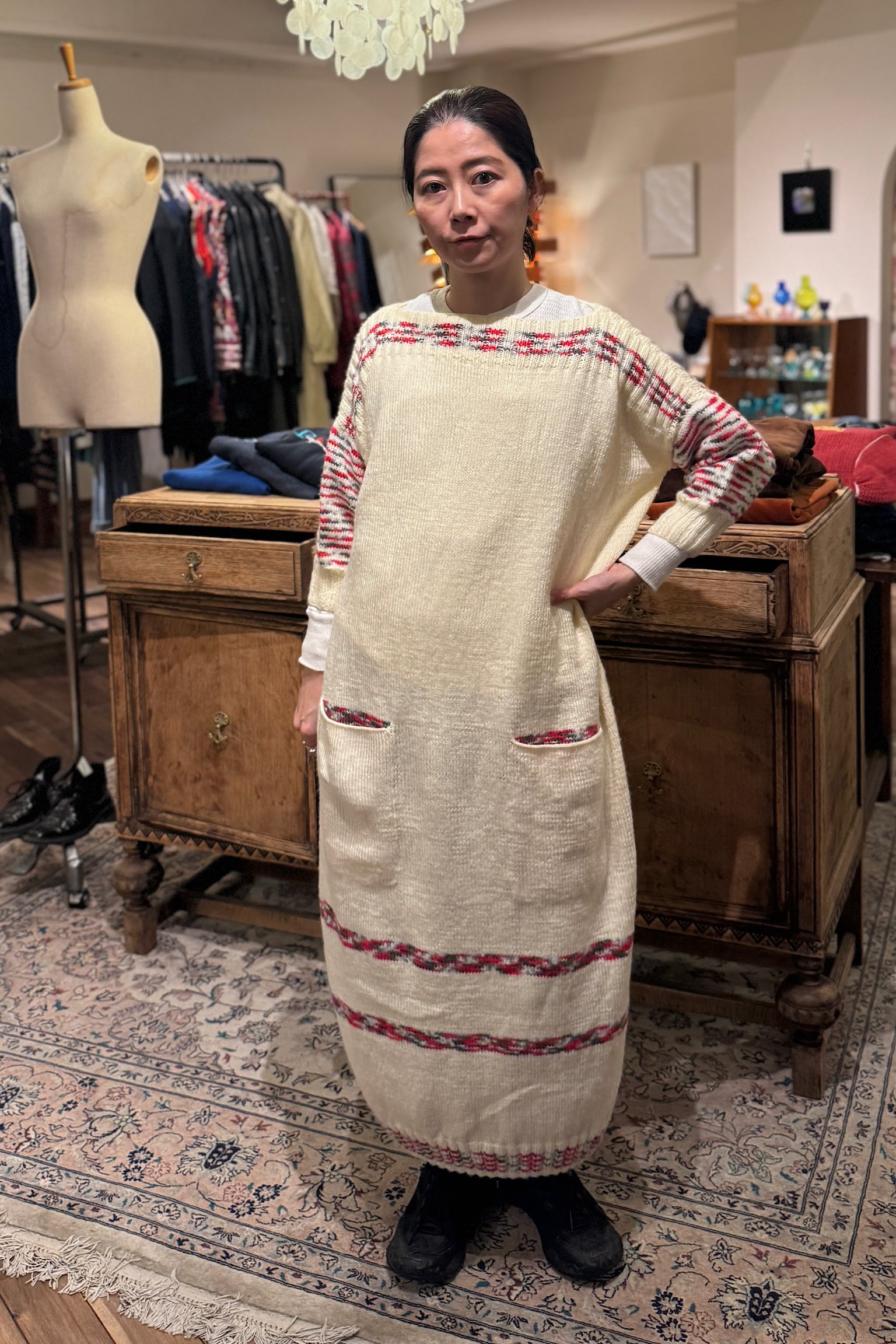オフショルダーハンドメイドニットドレス
