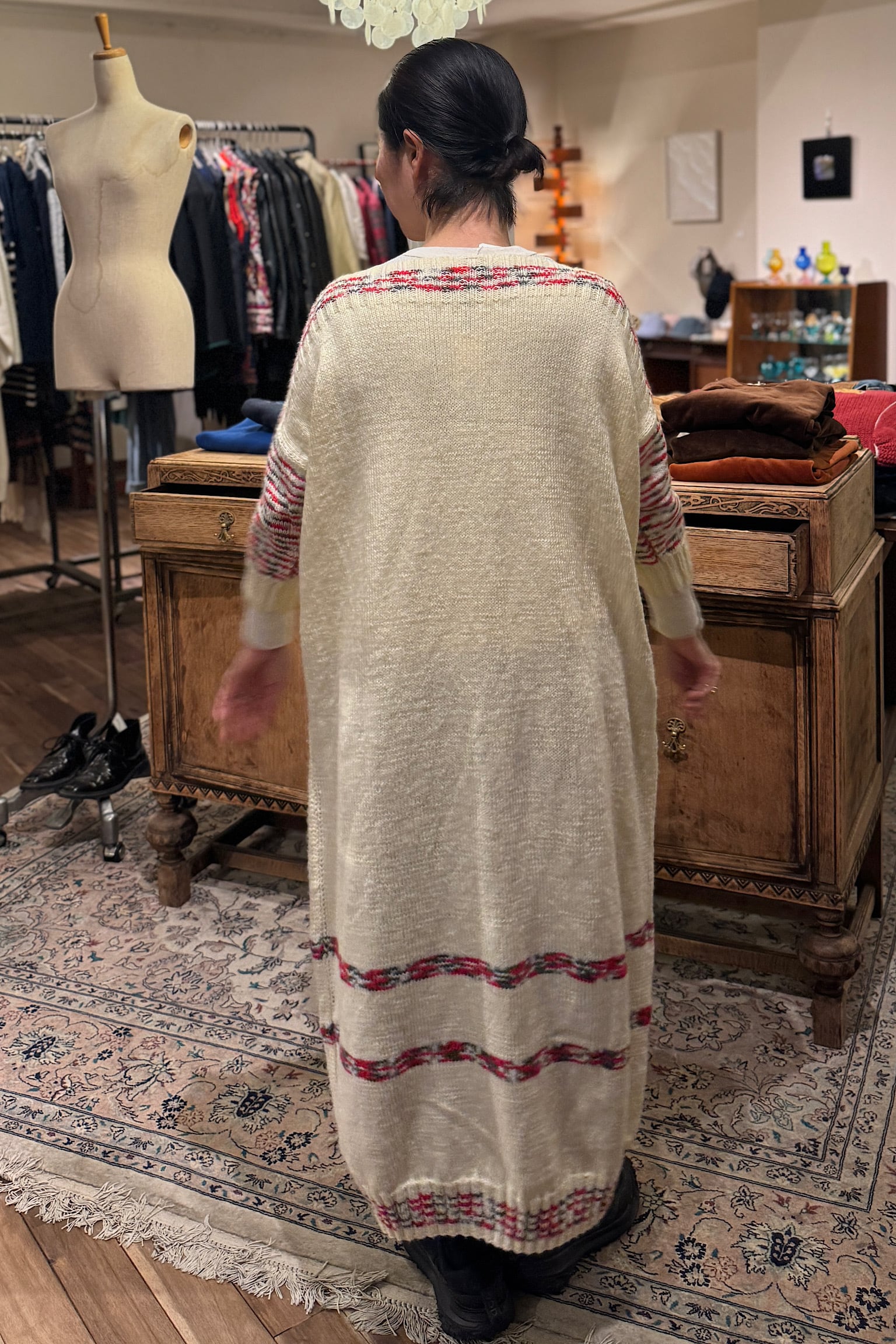 【採寸】肩幅:58cm / 胸囲:124cm / 着丈:115cm / 袖丈:27cm