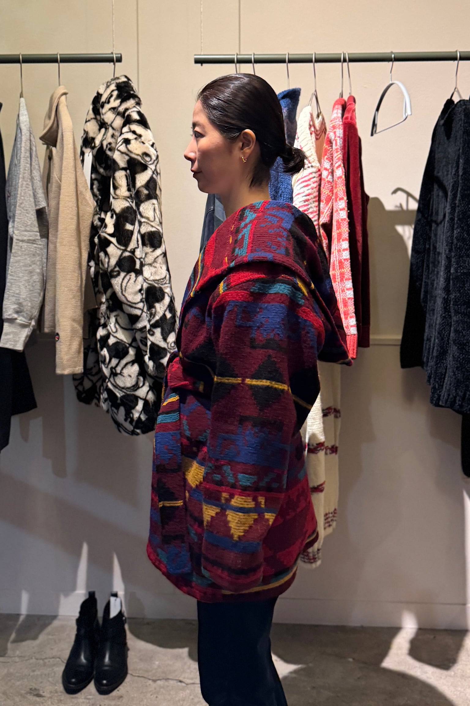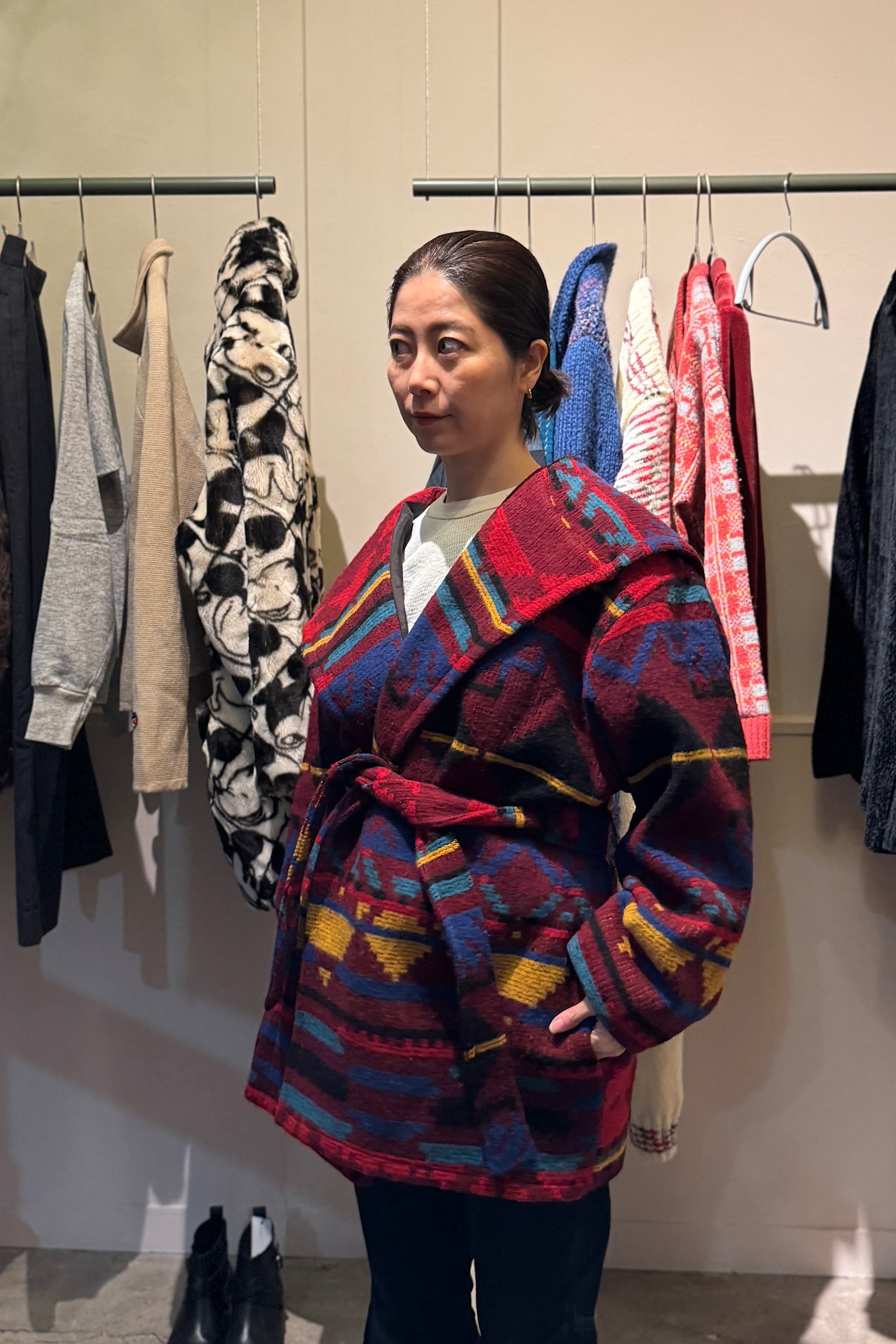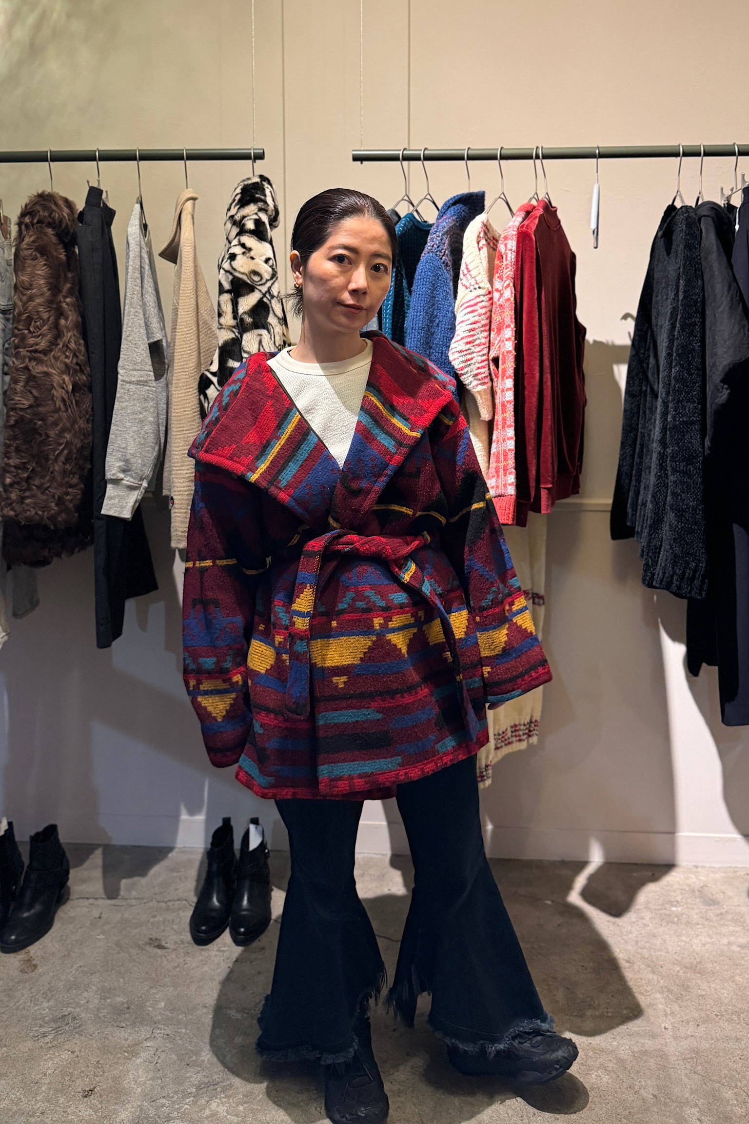 ガウンのようにサラッと着れるのがポイント。ネイティブ柄でワンポイントになります。