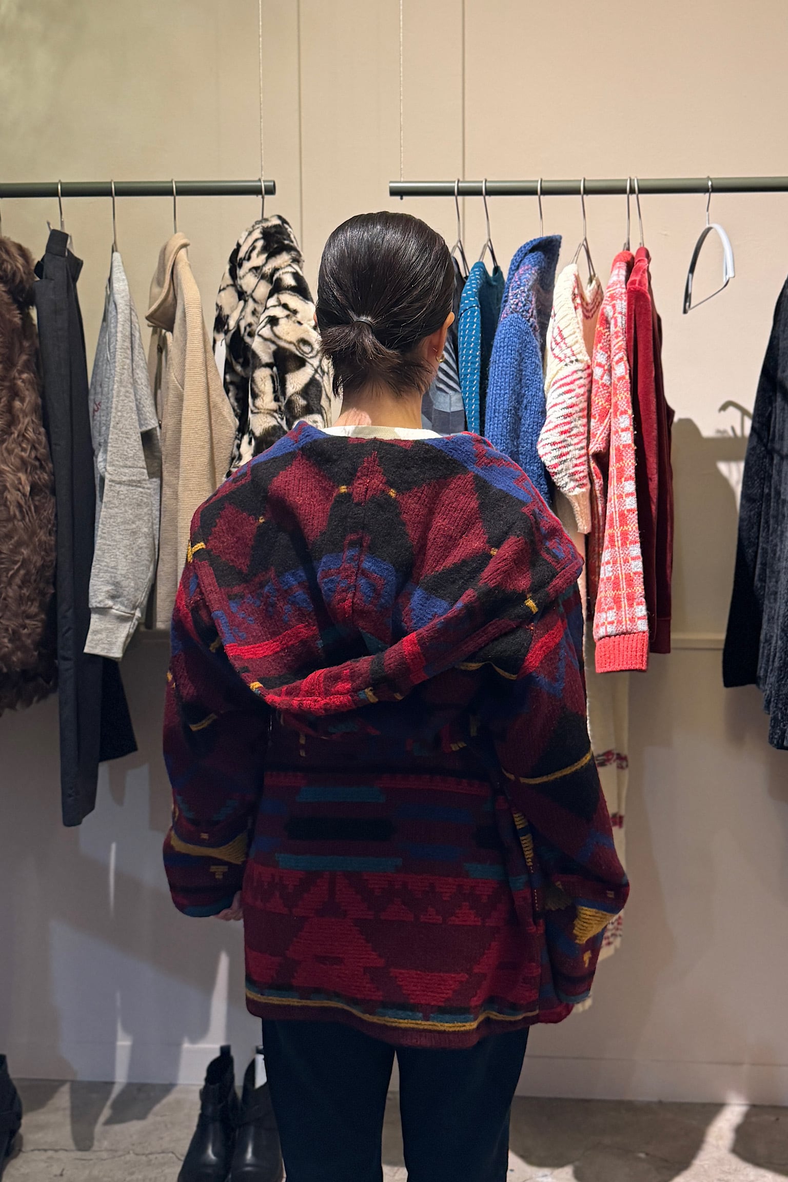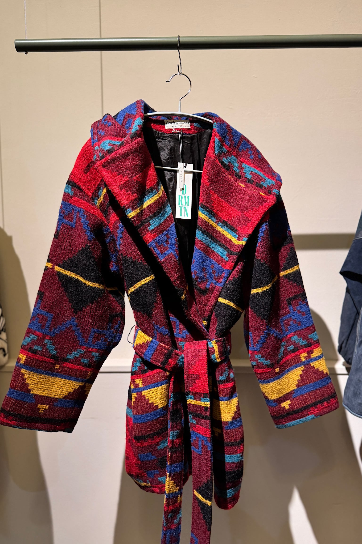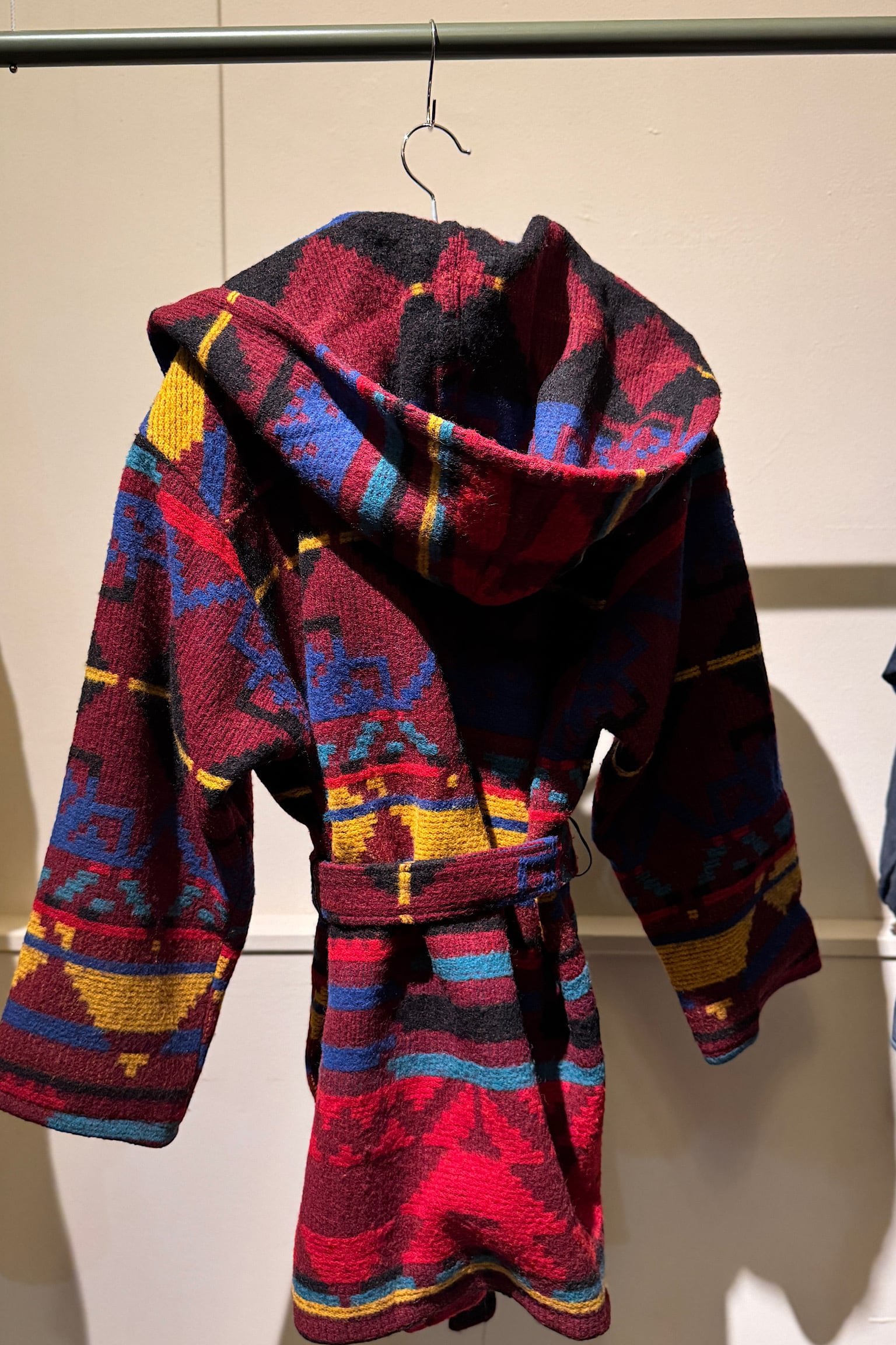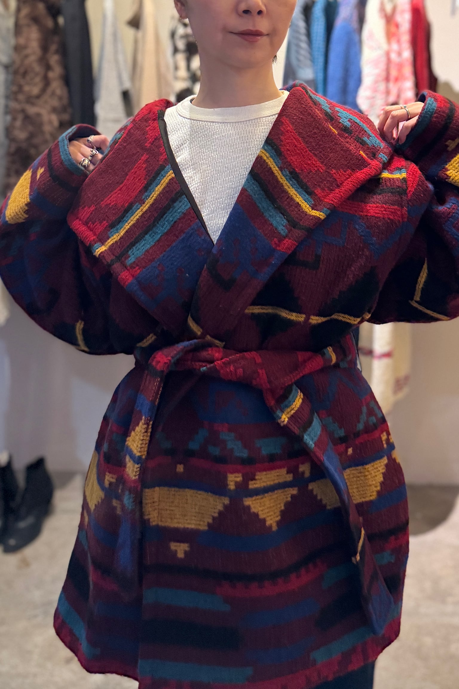 ガウンのようにサラッと着れるのがポイント。ネイティブ柄でワンポイントになります。