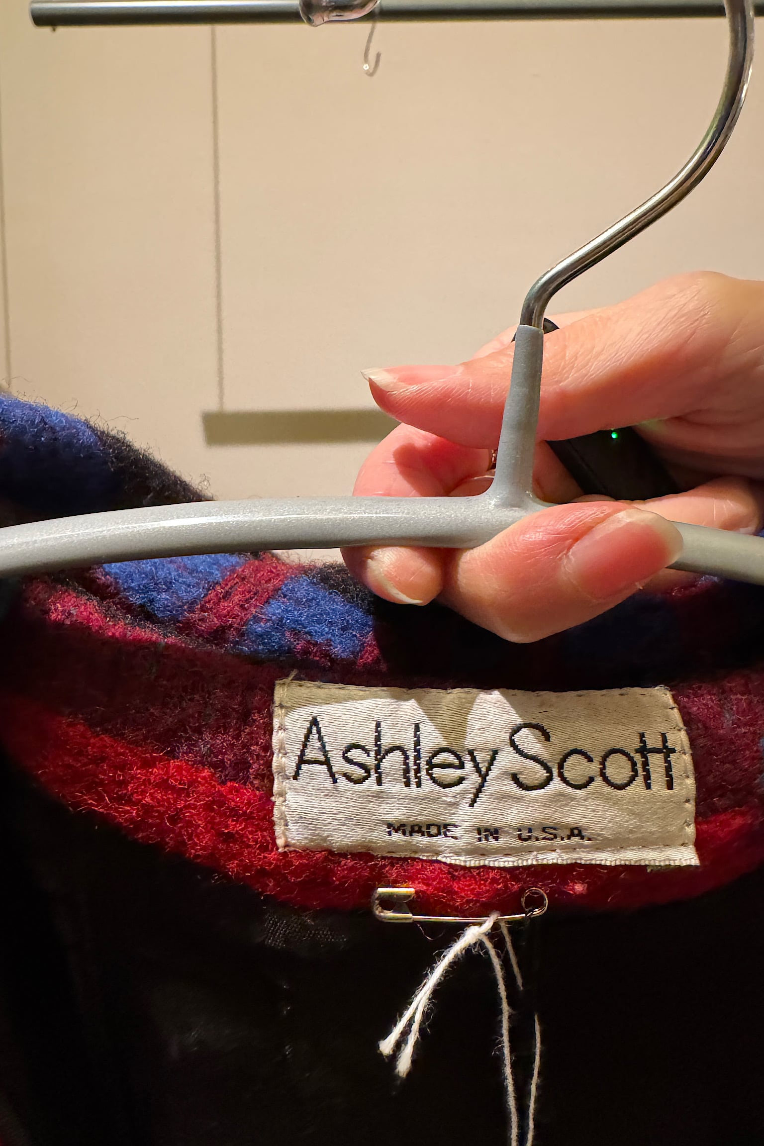 Ashley Scottのカラフルウールガウンコート。滑らかなウール素材が温かさと快適さを提供し、カラフルなデザインが存在感を引き立てます。