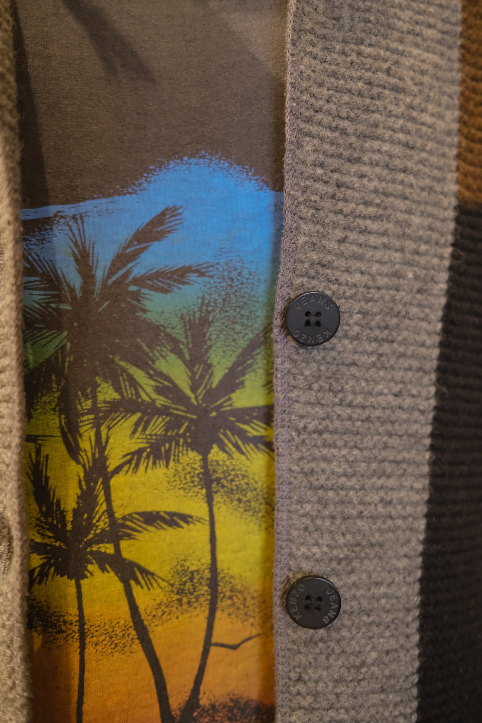 KENZO JEANSのニットジャケットは、独特の風合いが魅力的な一着です。